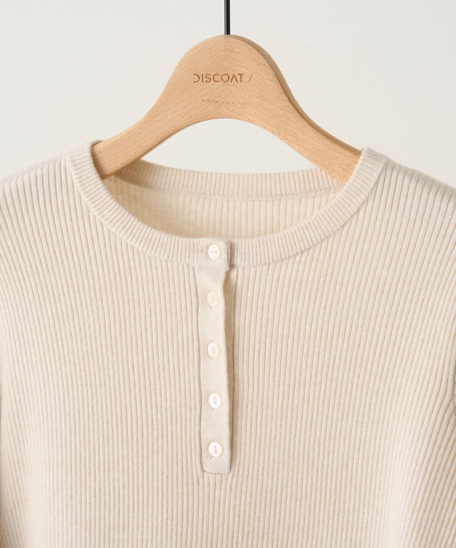 今年トレンドのヘンリーネックを取り入れた旬な一枚です。