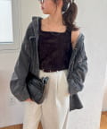 スクエアネックのタンクトップと、フロントボタン付きのカーディガンがセットになったアンサンブルアイテム。