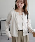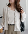 スクエアネックのタンクトップと、フロントボタン付きのカーディガンがセットになったアンサンブルアイテム。