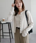 カーディガンは、全体に施されたボタンが程よいアクセントとなり、スタイリングの幅を広げてくれます。コンパクトな丈感で、ハイウエストボトムとも好相性◎
