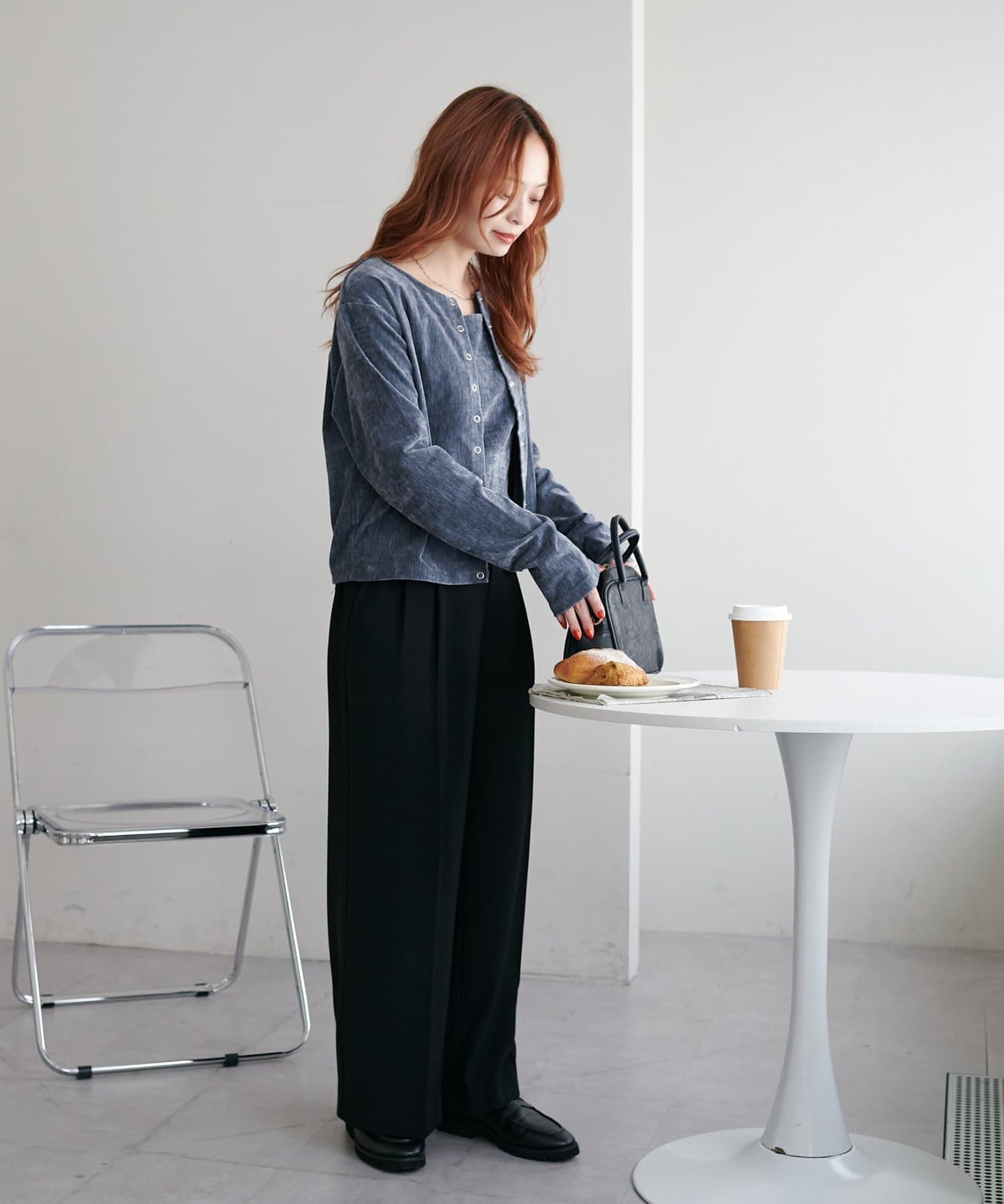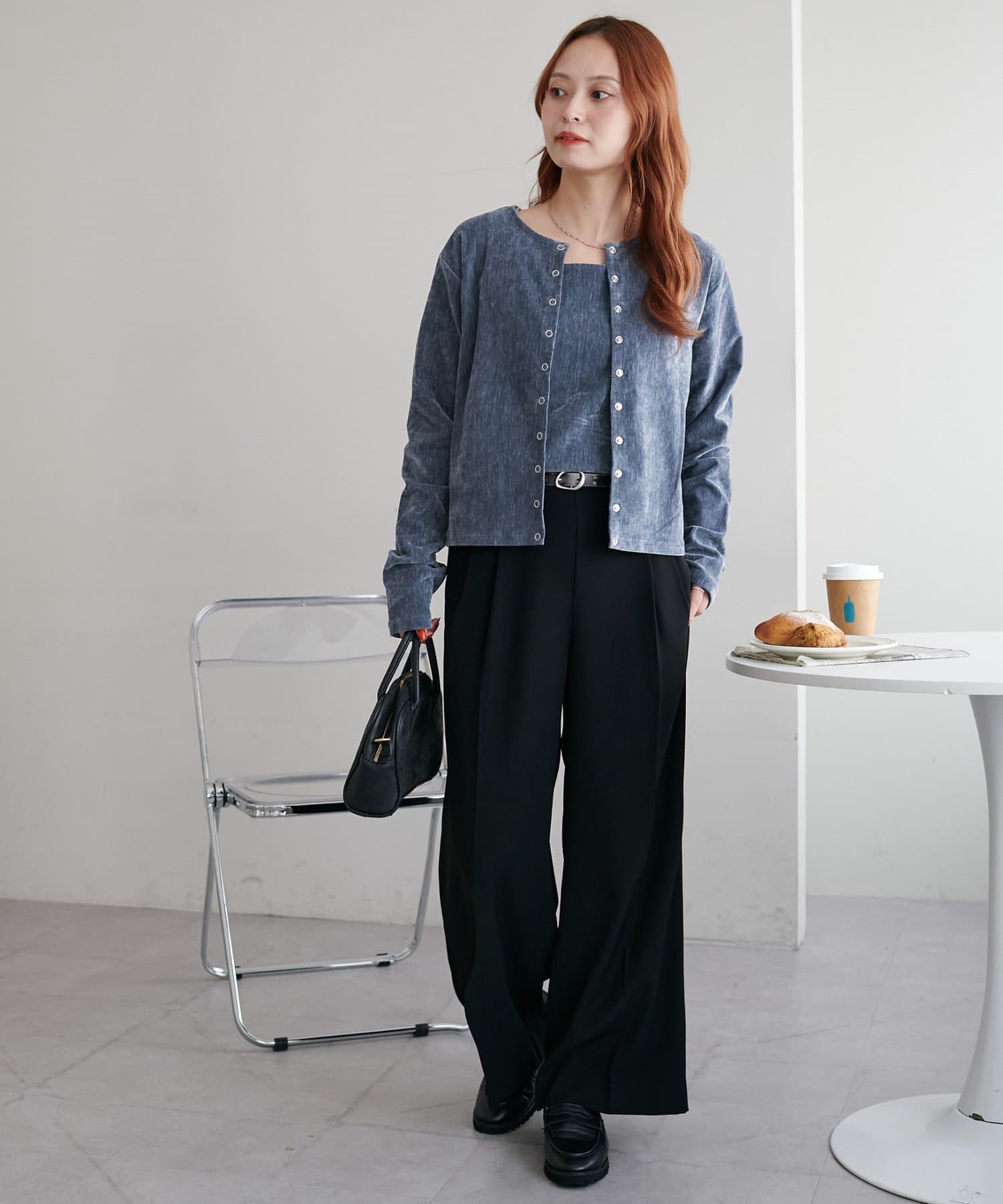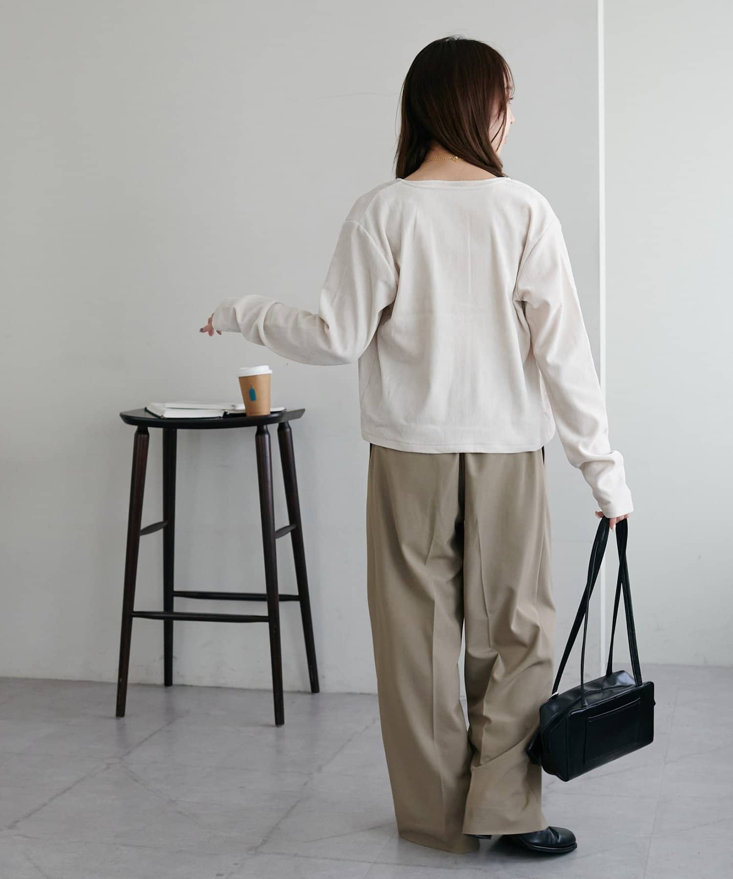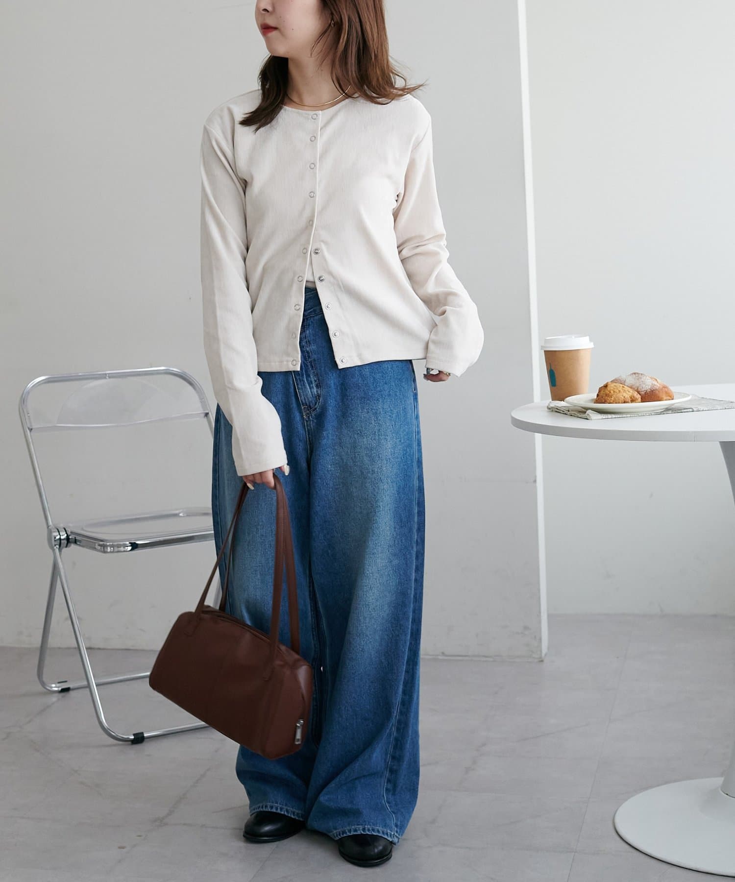 コンパクトな丈感なので、ワイドやハイウエストのボトムスと好相性◎