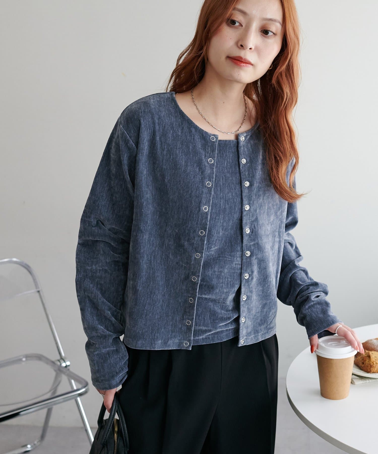 • DISCOAT(ディスコート) 【着方いろいろ/2点セット♪】杢ベロアアンサンブル
