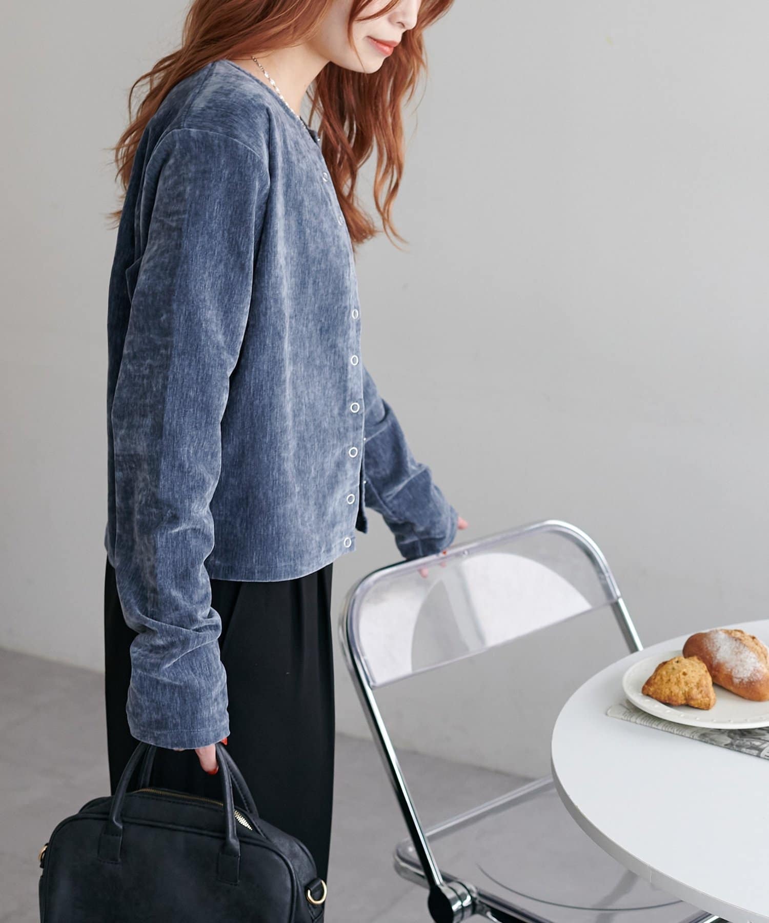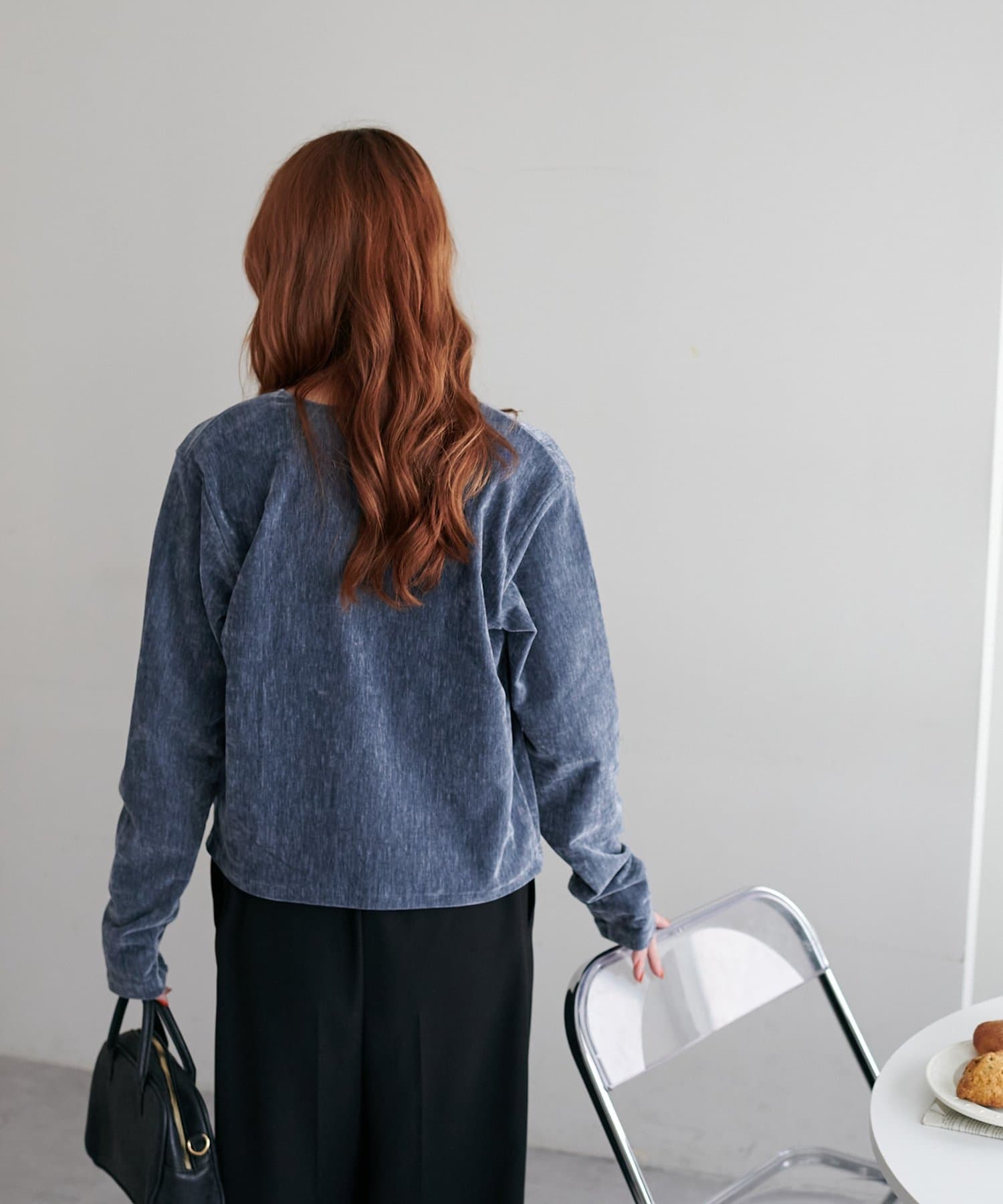 ベロア特有の光沢感が高見えするアイテムです