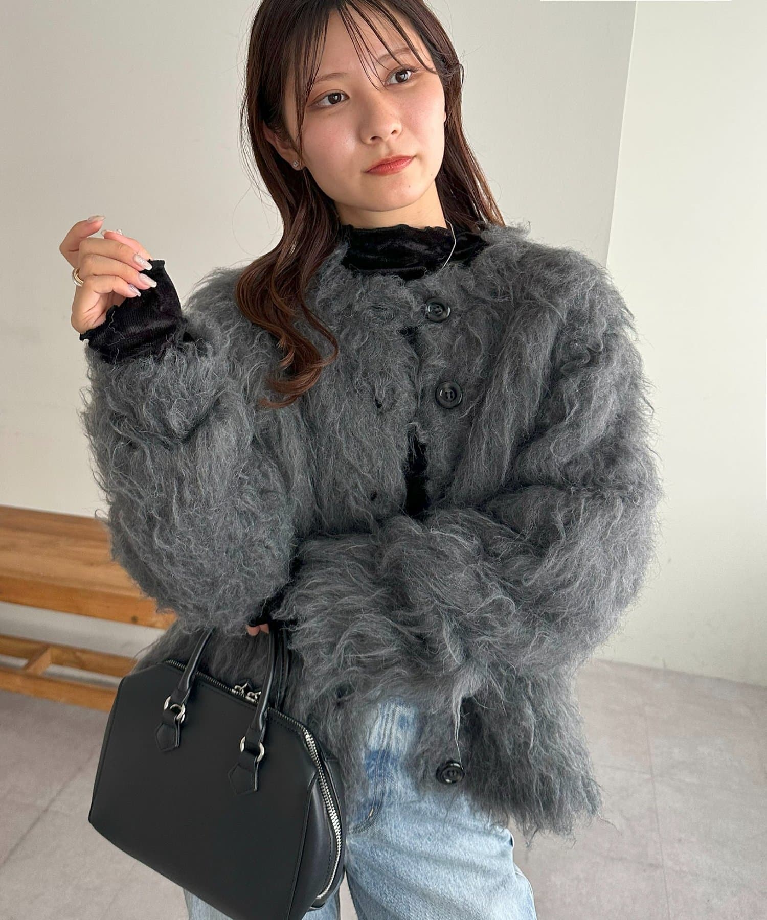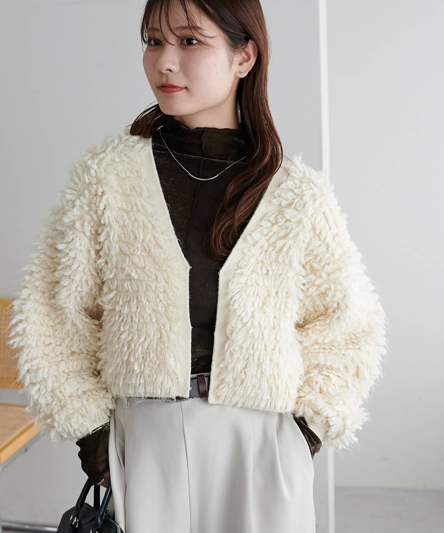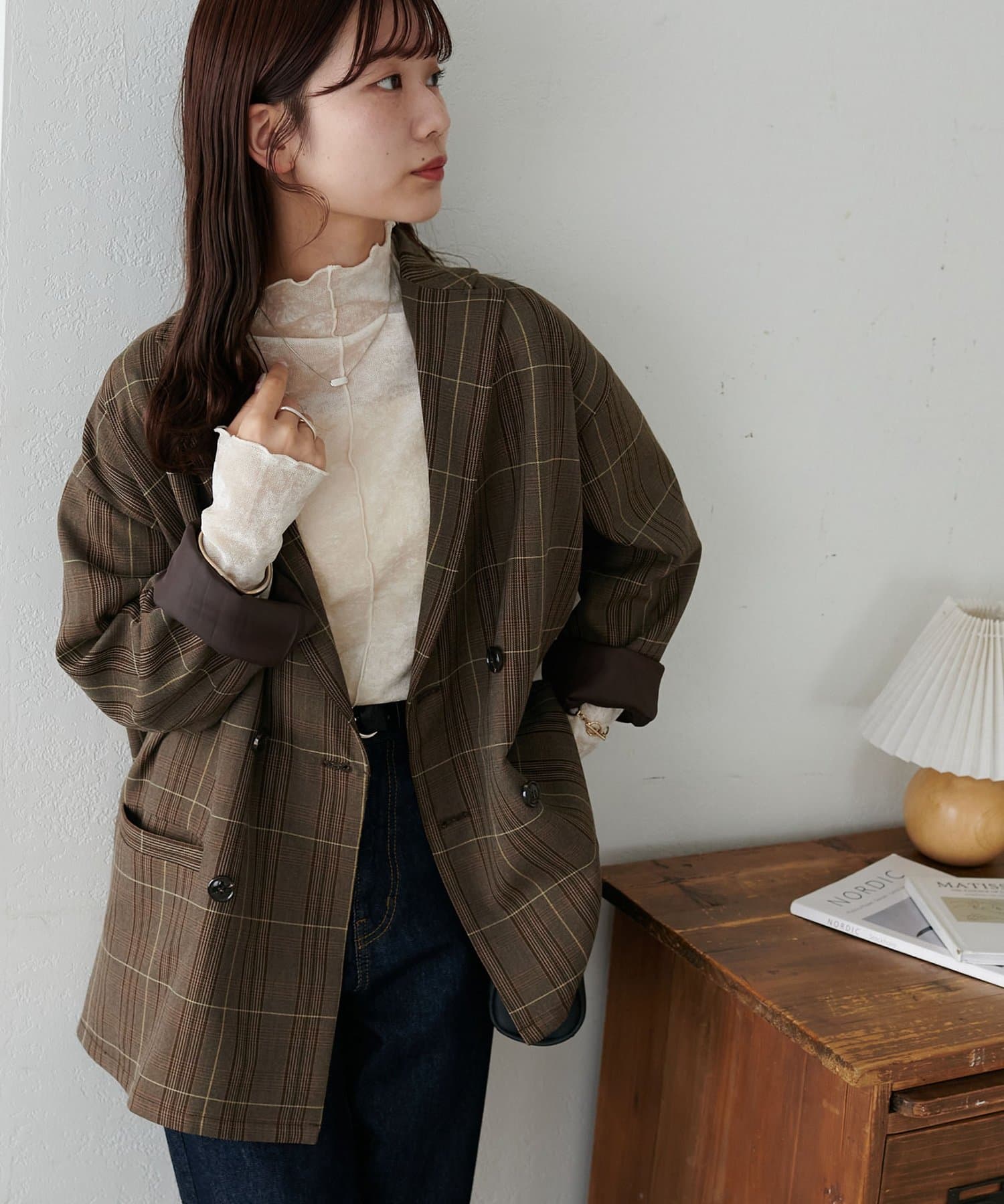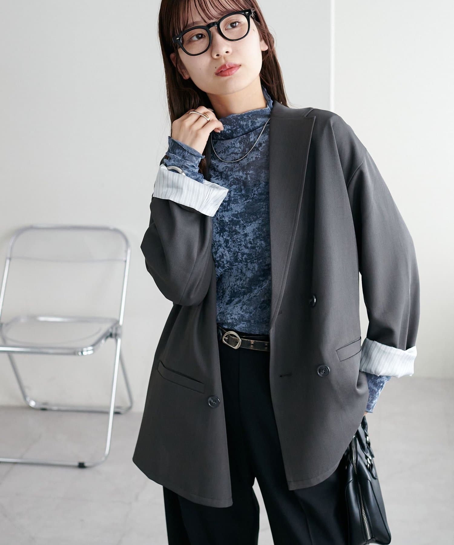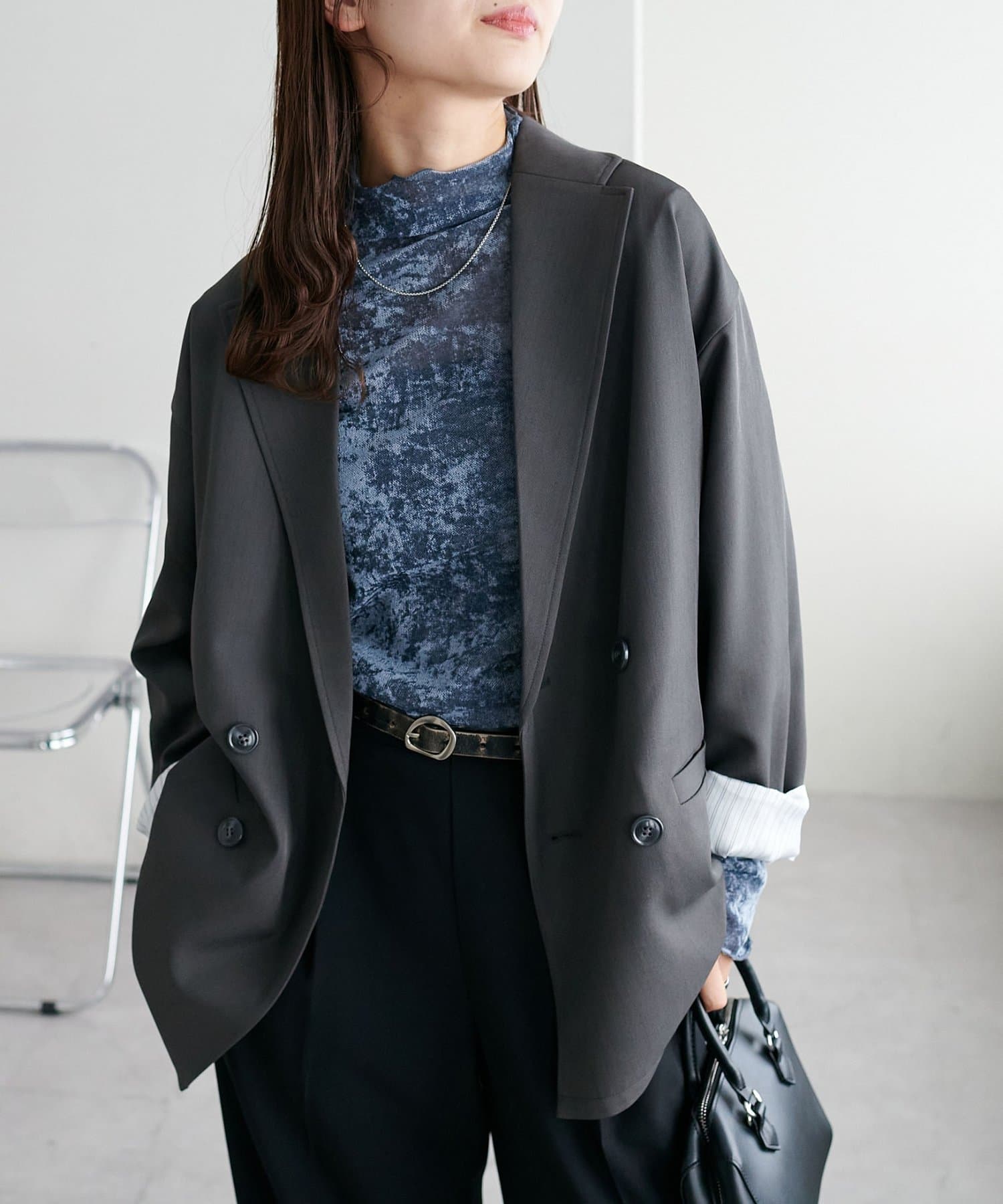 ほんのり抜け感のあるシアー素材に、メロウ仕上げのハイネックと袖口が女性らしいアクセントに。