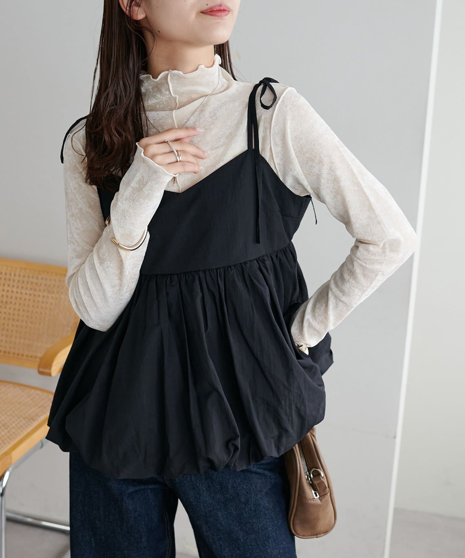 シアー素材軽やかに、レイヤード映えするハイネックトップス