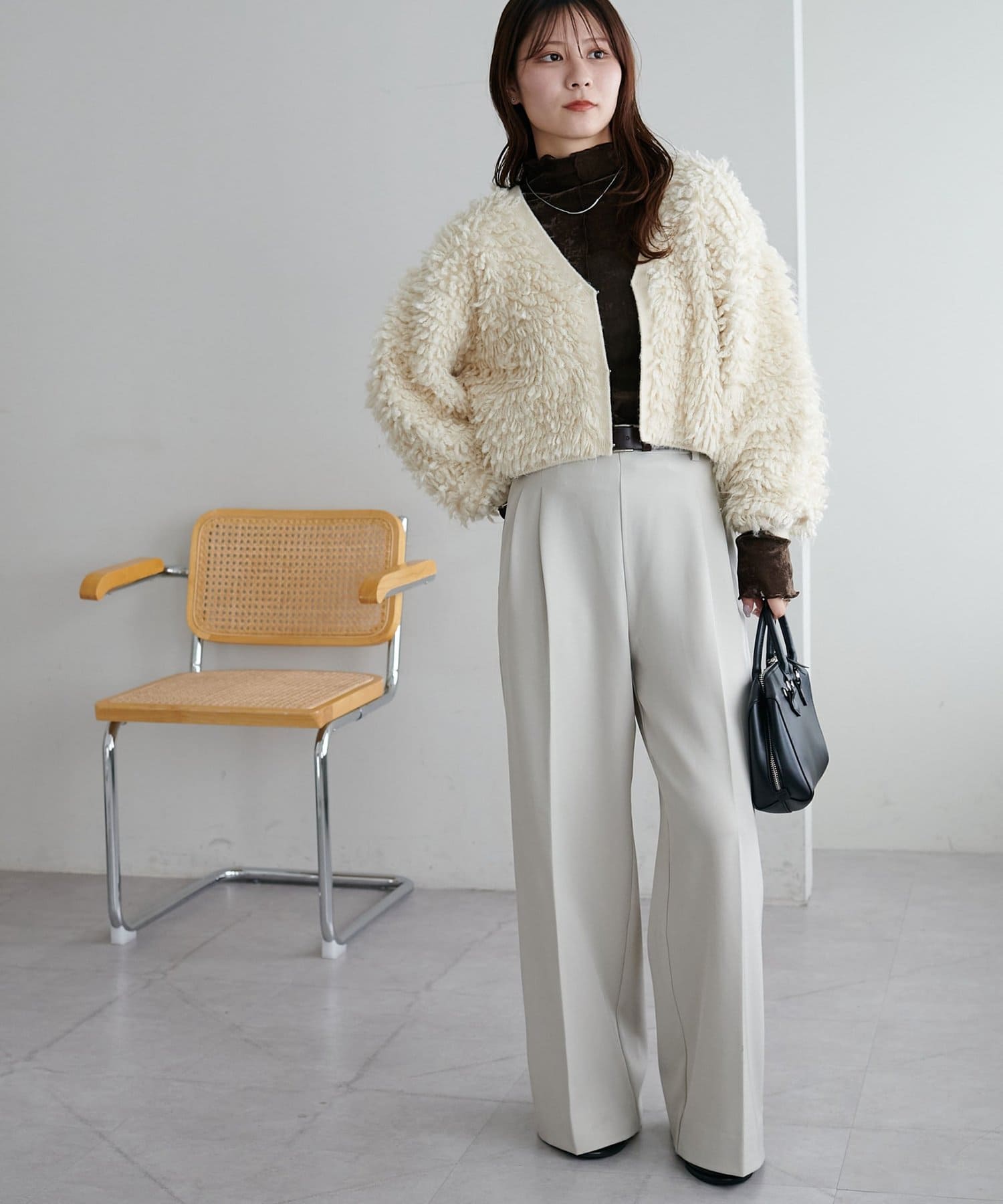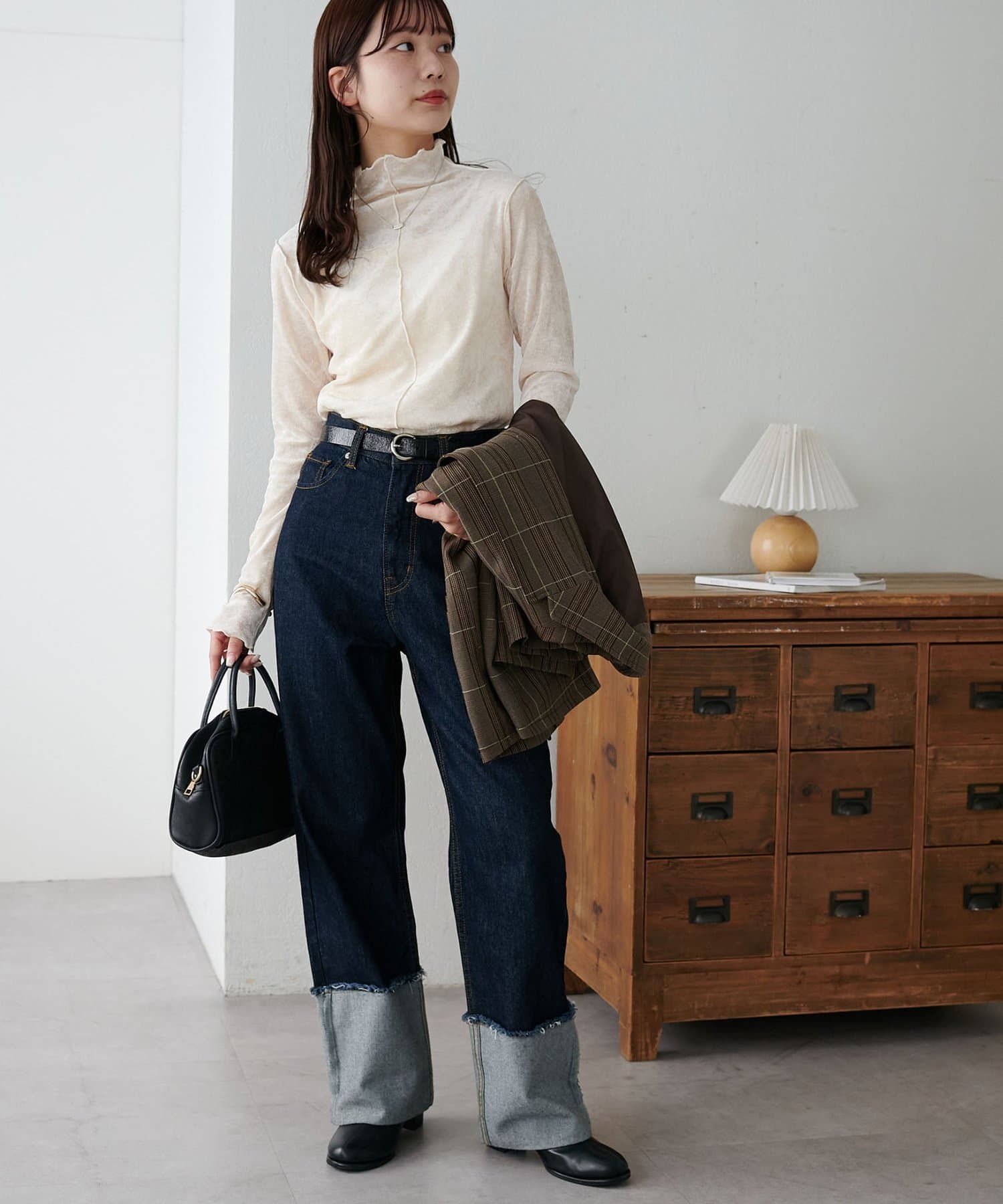 ・163cmスタッフ:ハイネック部分が柔らかく、首元の締め付けが苦手な方にも安心。着回しが効くので色違いで揃えたくなるアイテムです♪