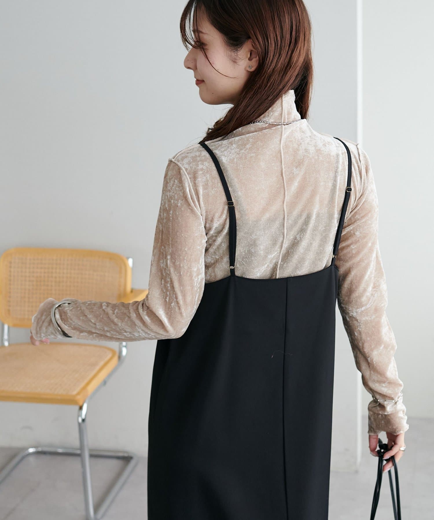 ・158cmスタッフ:程よくフィット感があり、レイヤードしても快適な着心地です。抜け感は強すぎず、インナーキャミを合わせれば、1枚でも着られます♪