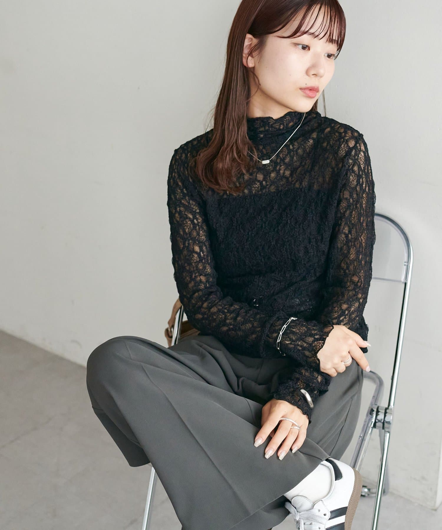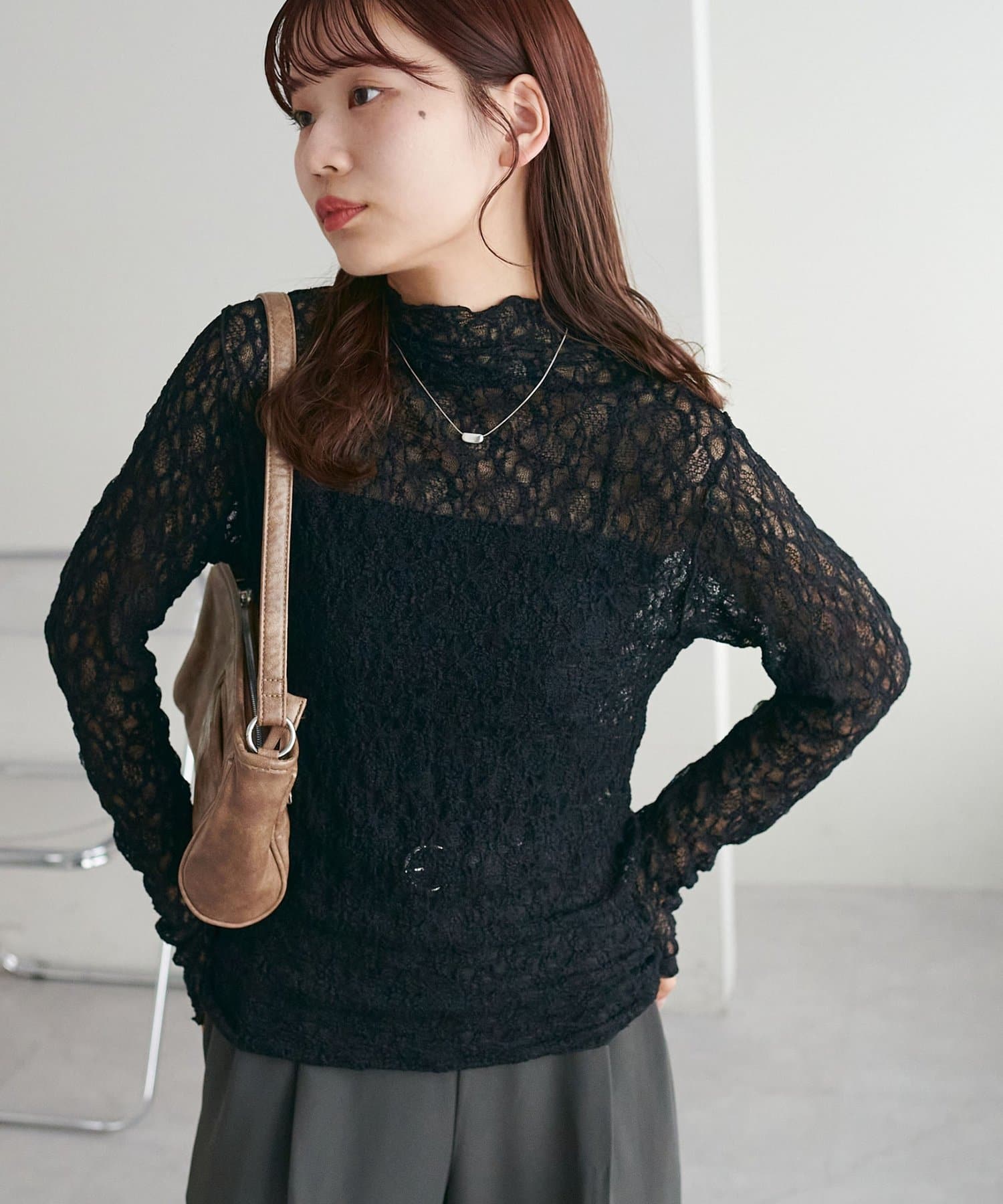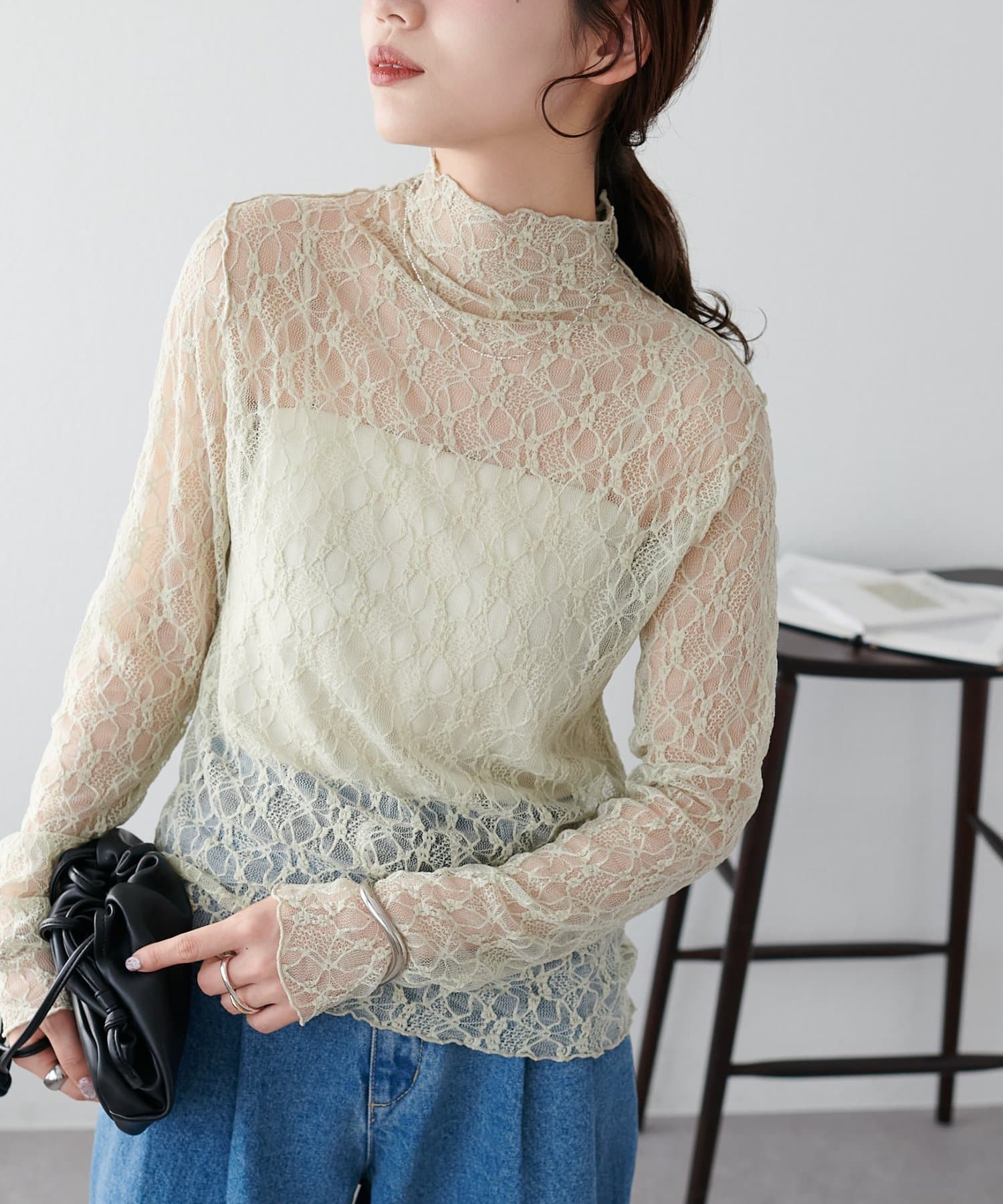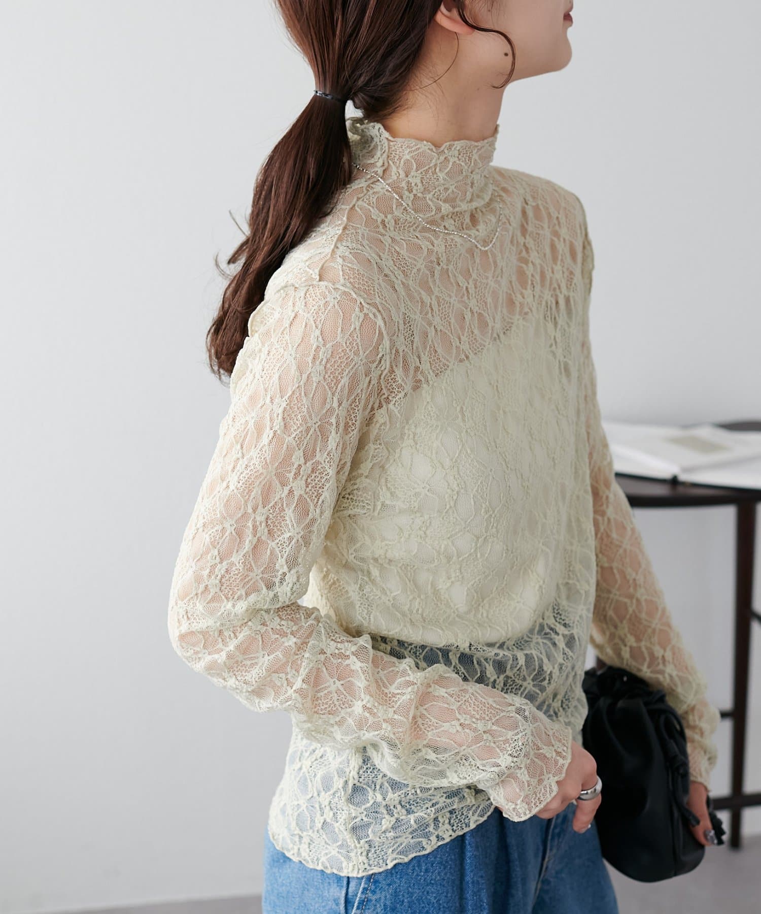 【新色追加/WEB限定】ストレッチレースボトルネックプルオーバー