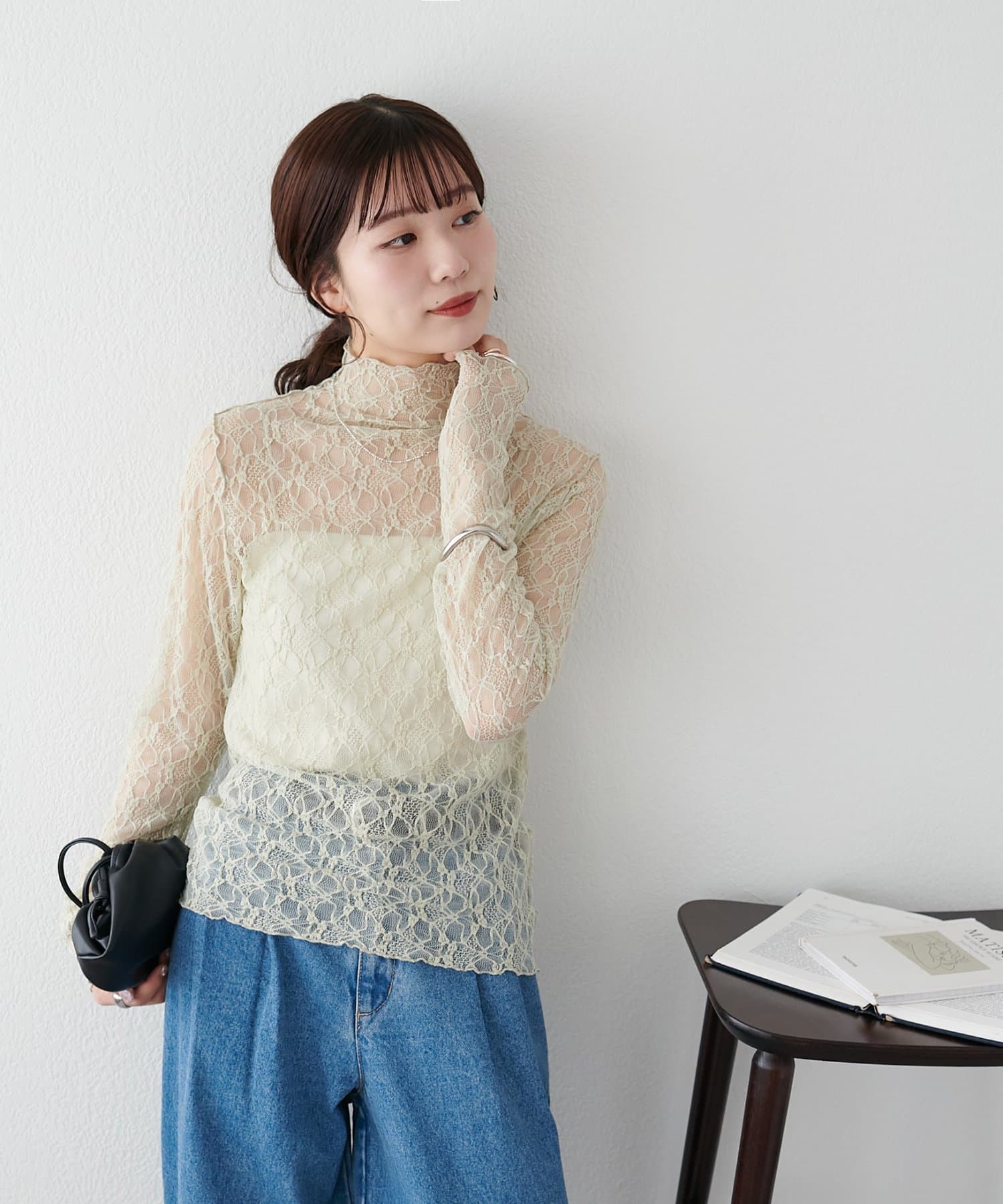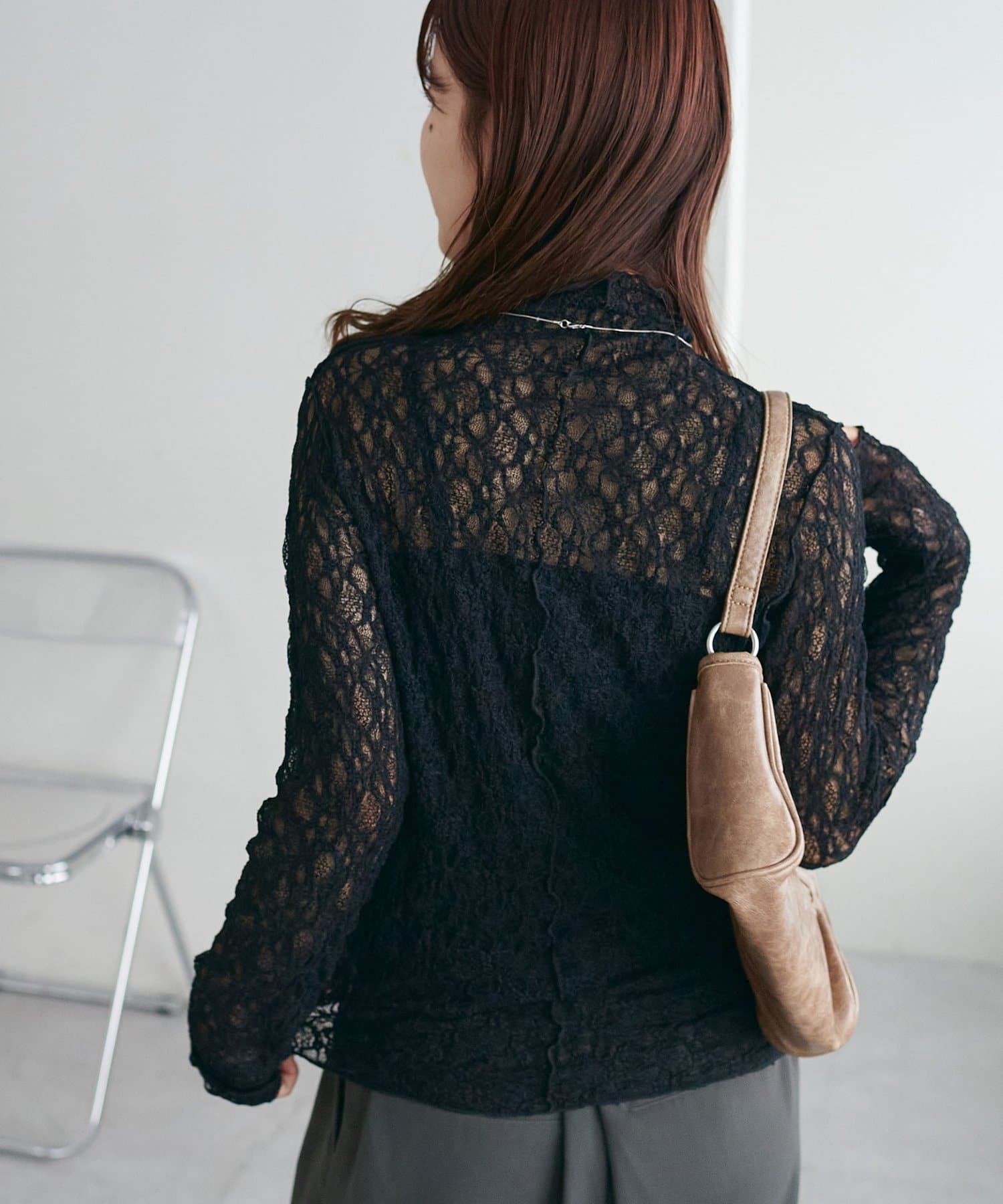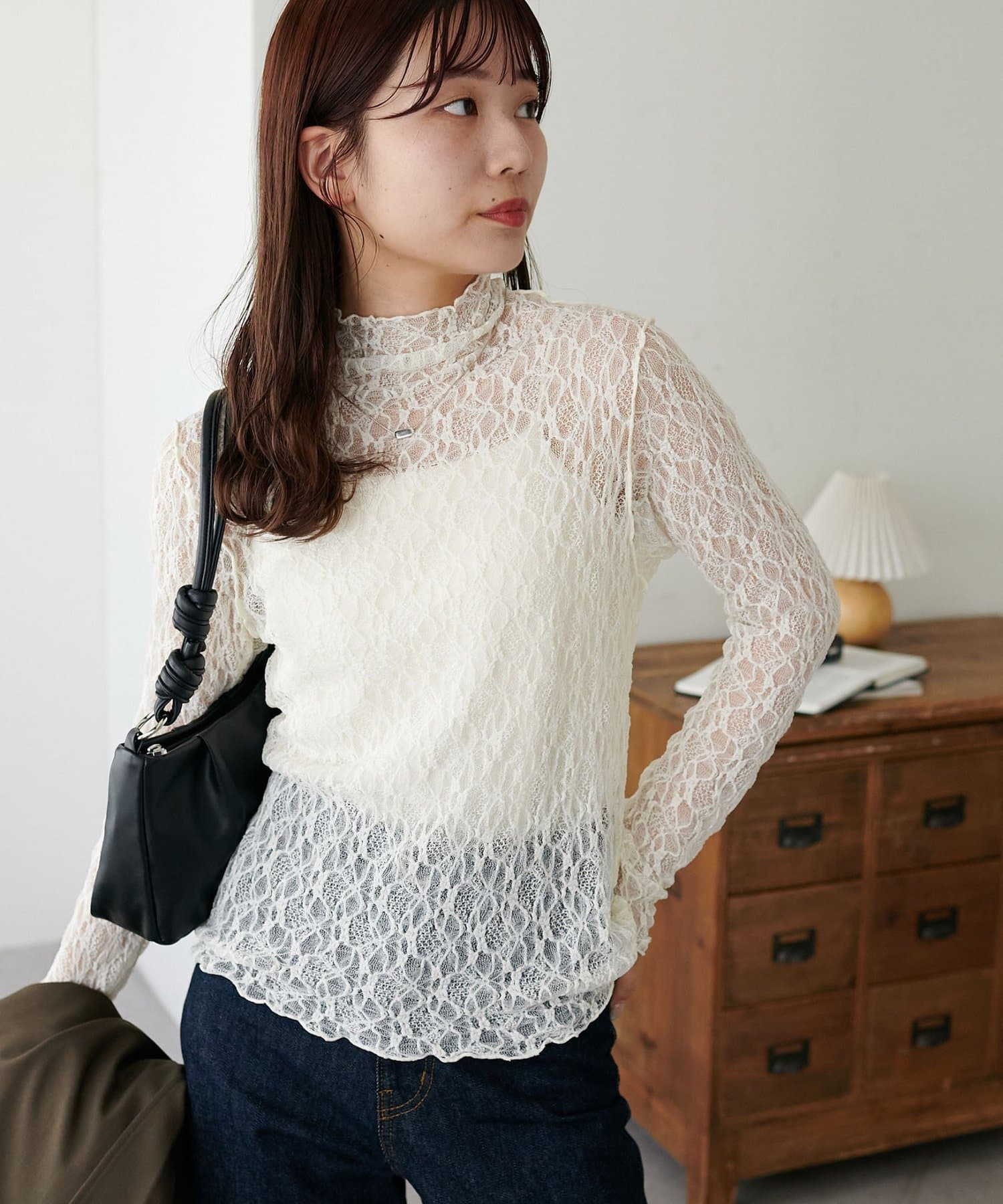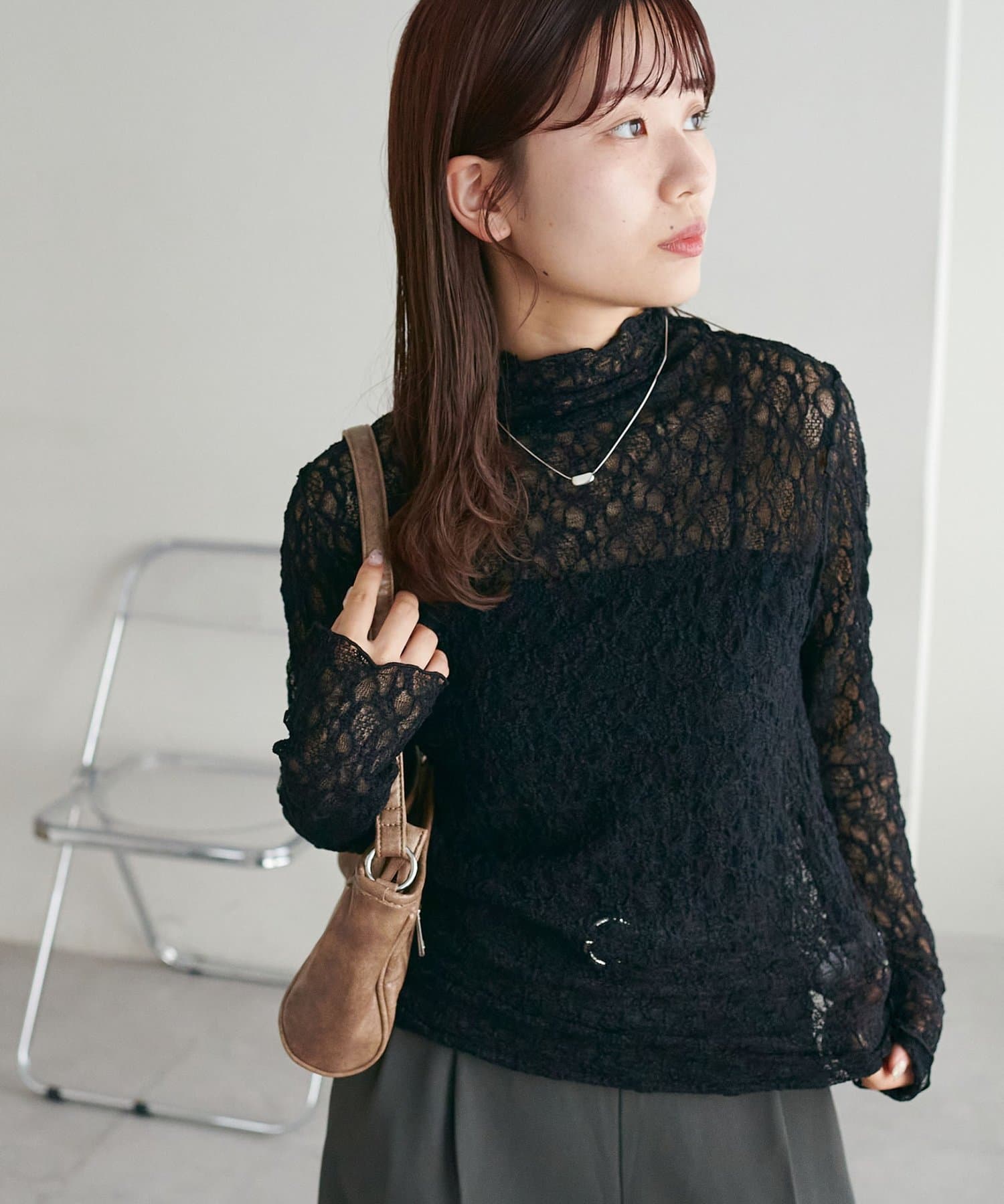 【新色追加/WEB限定】ストレッチレースボトルネックプルオーバー