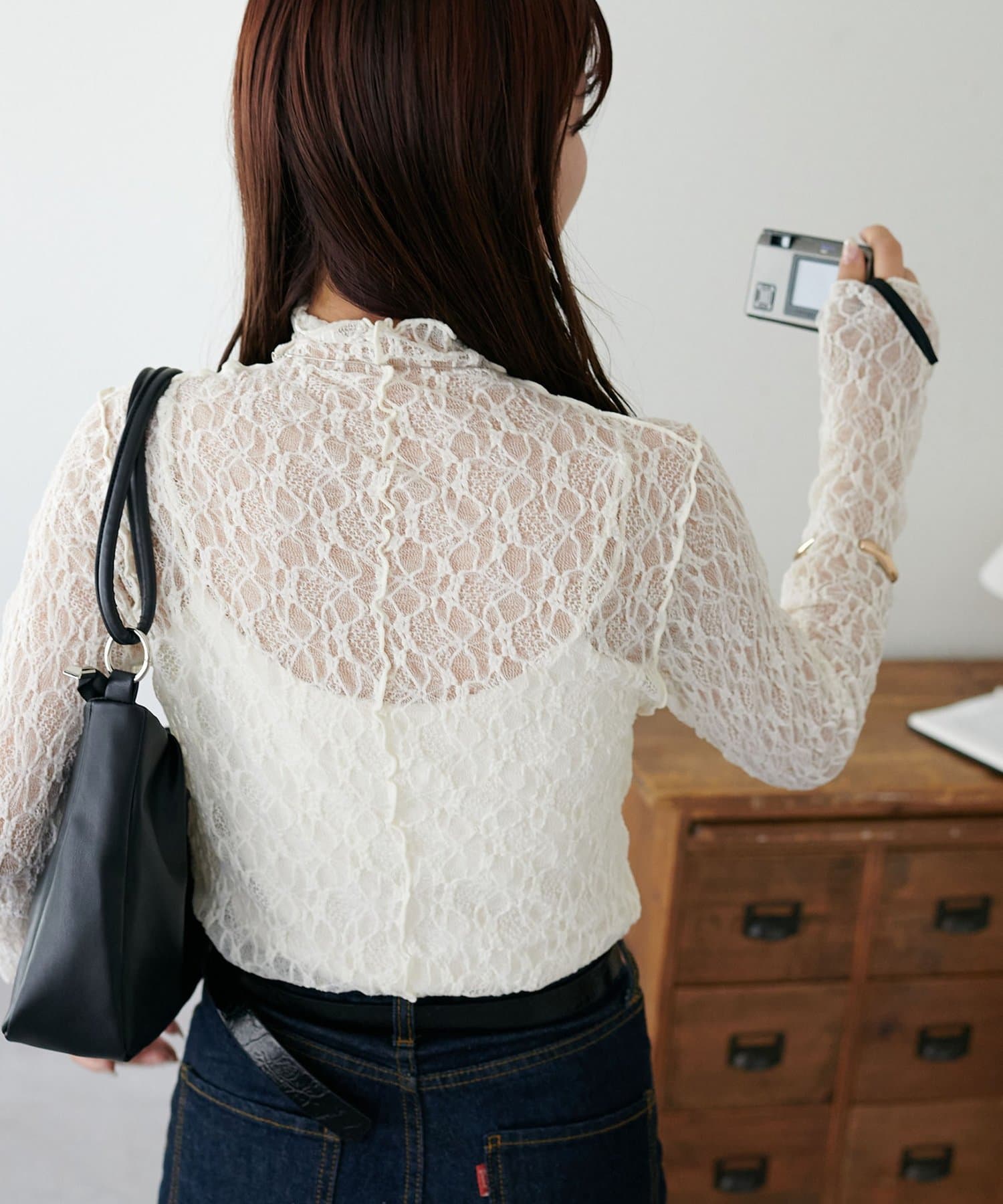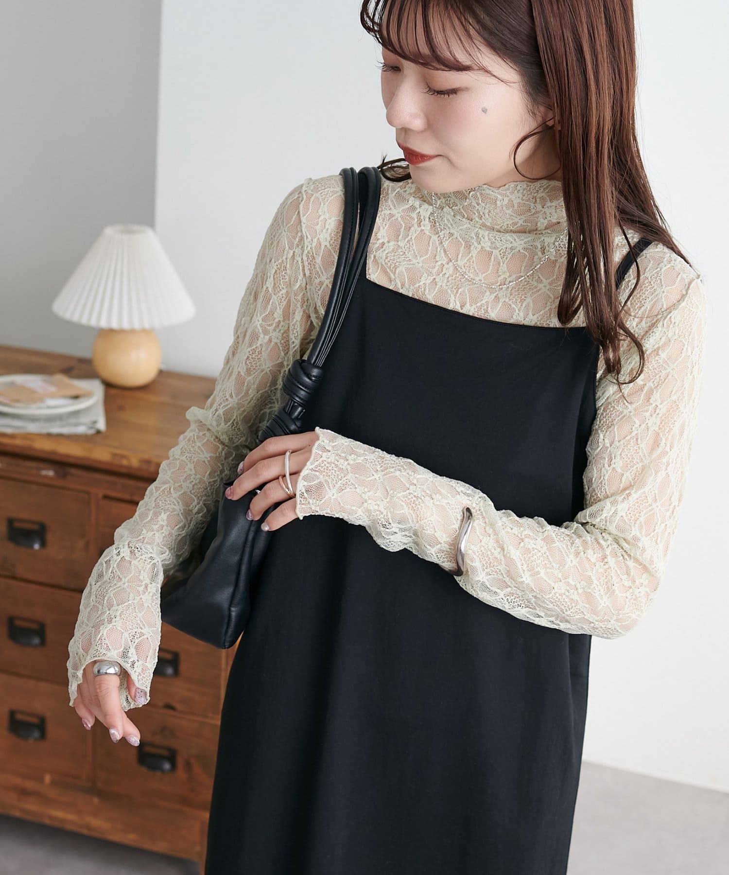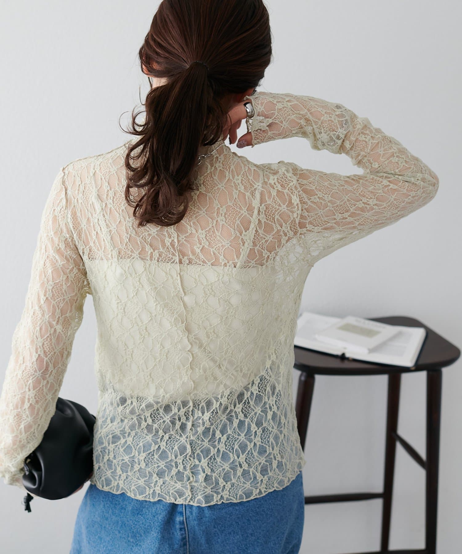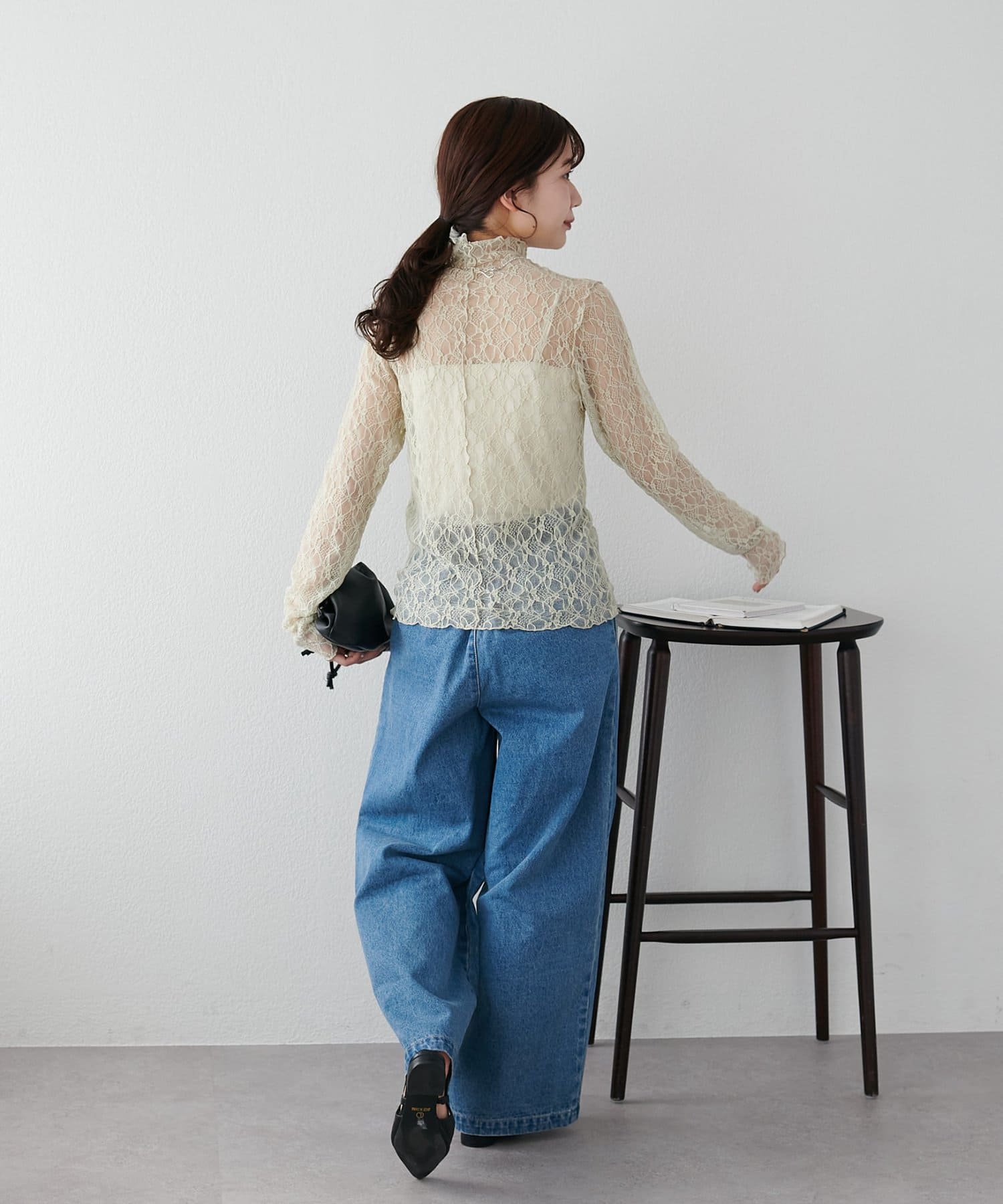 【新色追加/WEB限定】ストレッチレースボトルネックプルオーバー