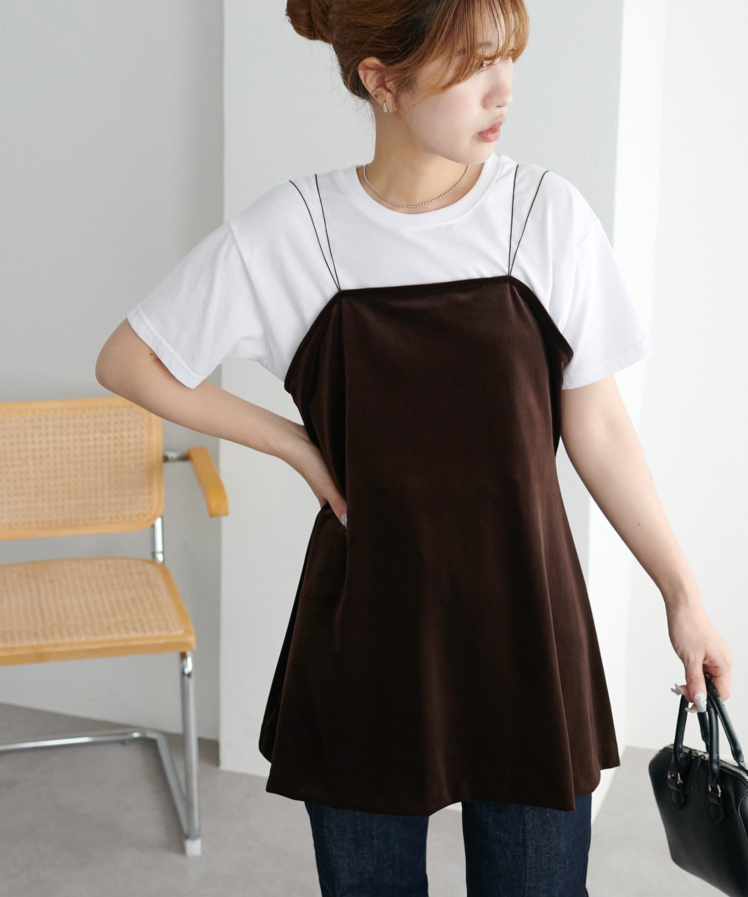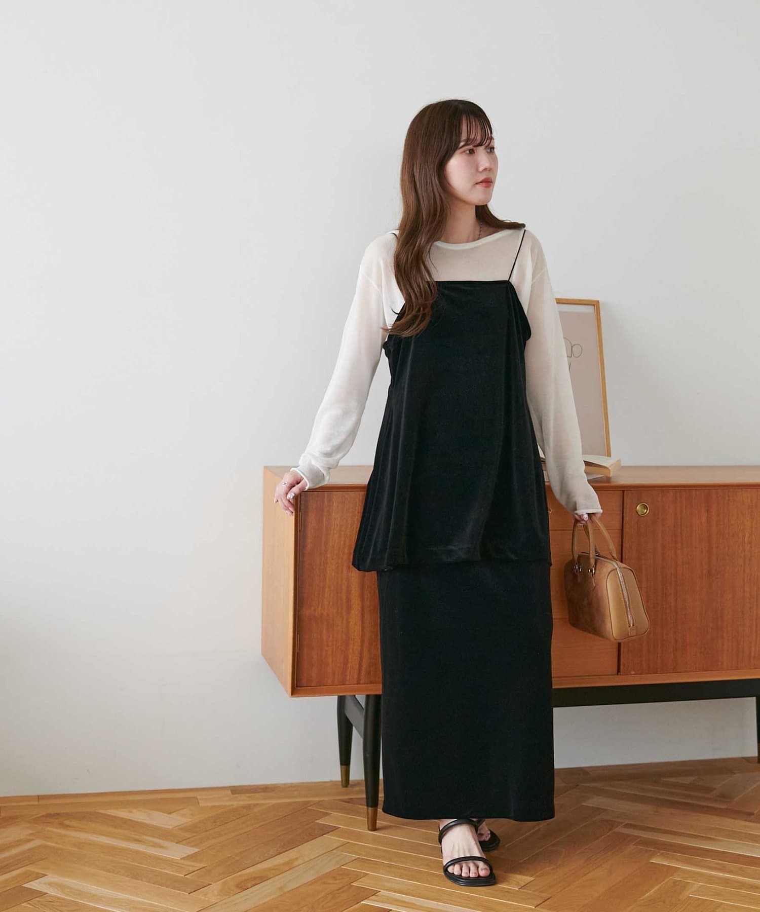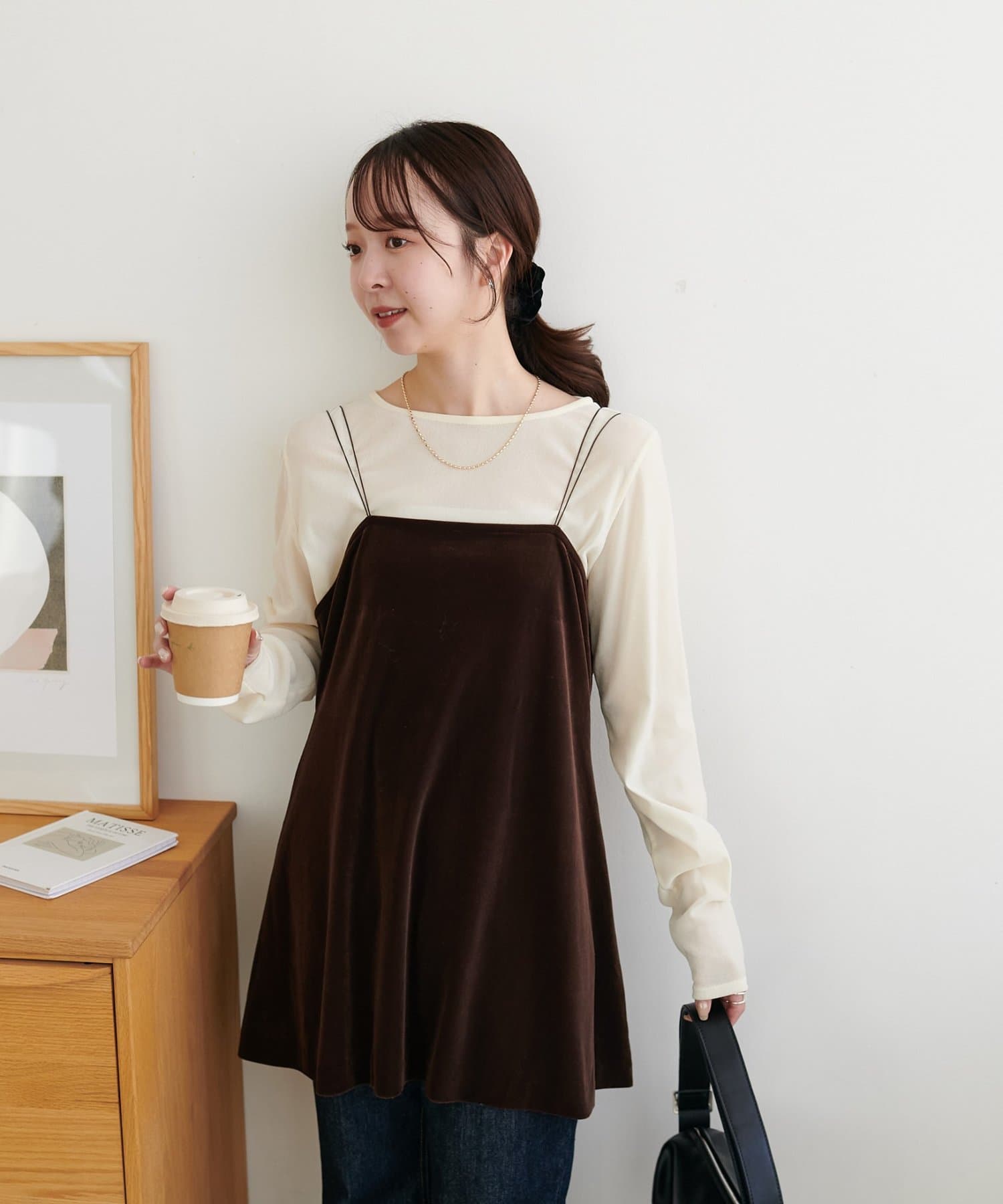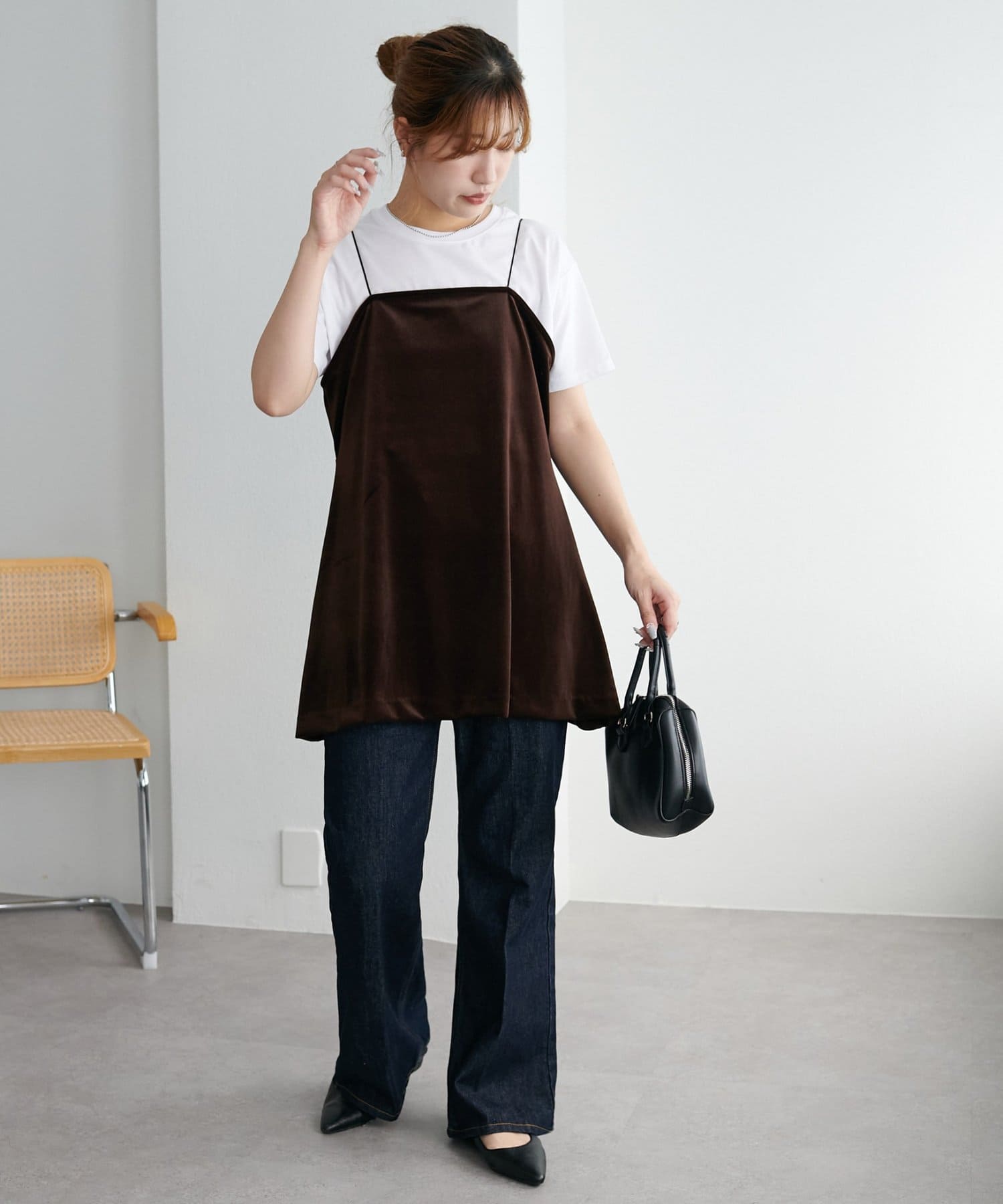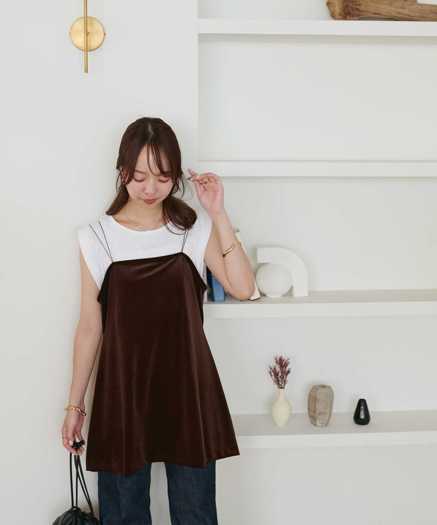 柔らかな光沢感が魅力のベロアキャミチュニック!