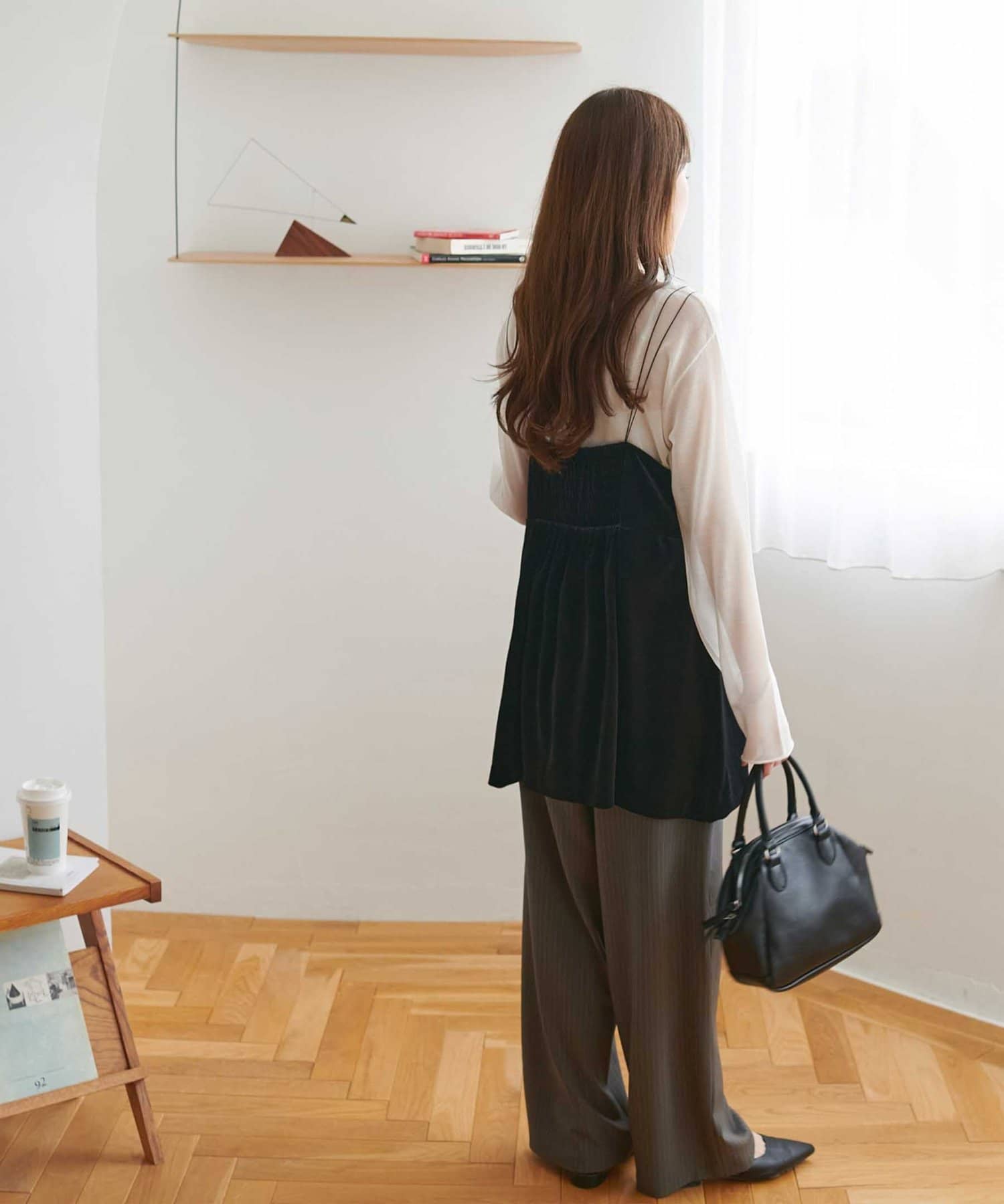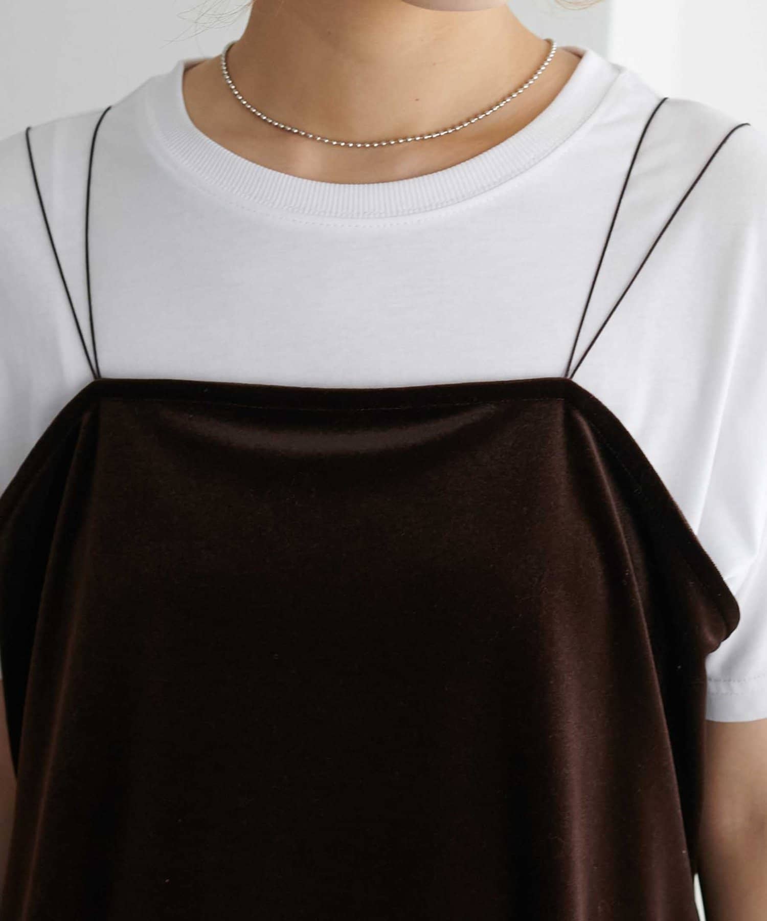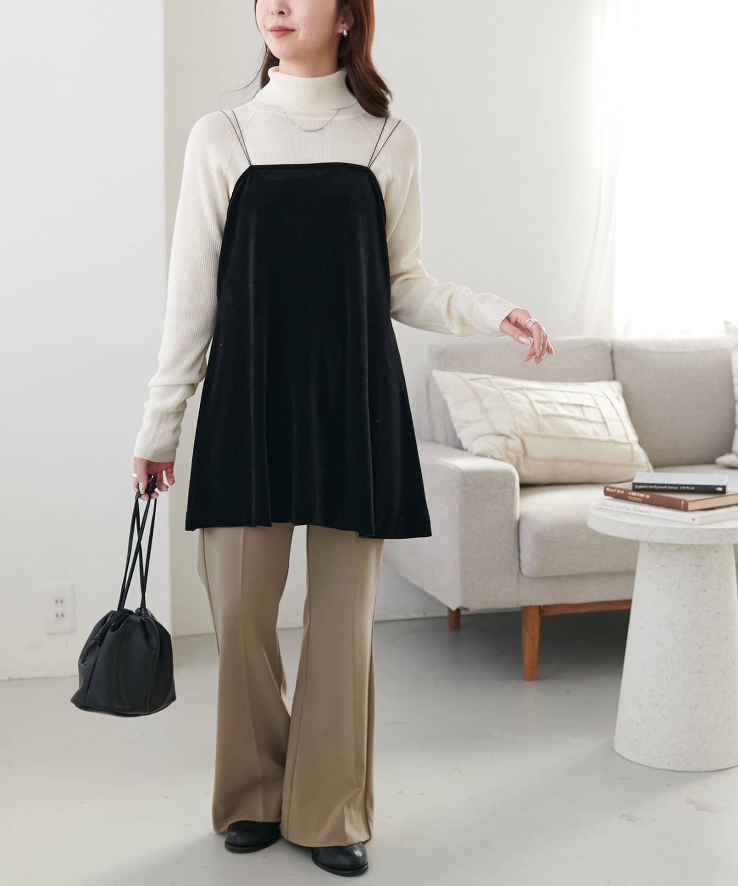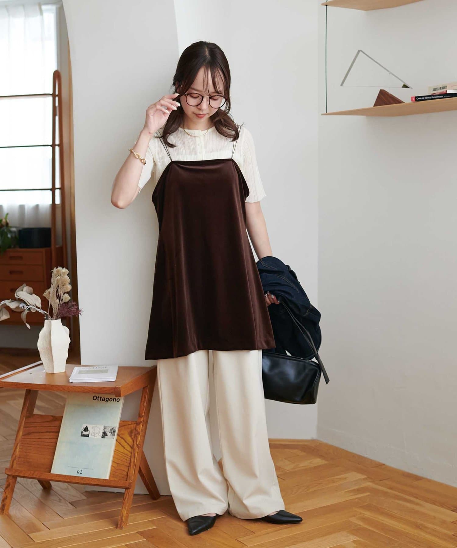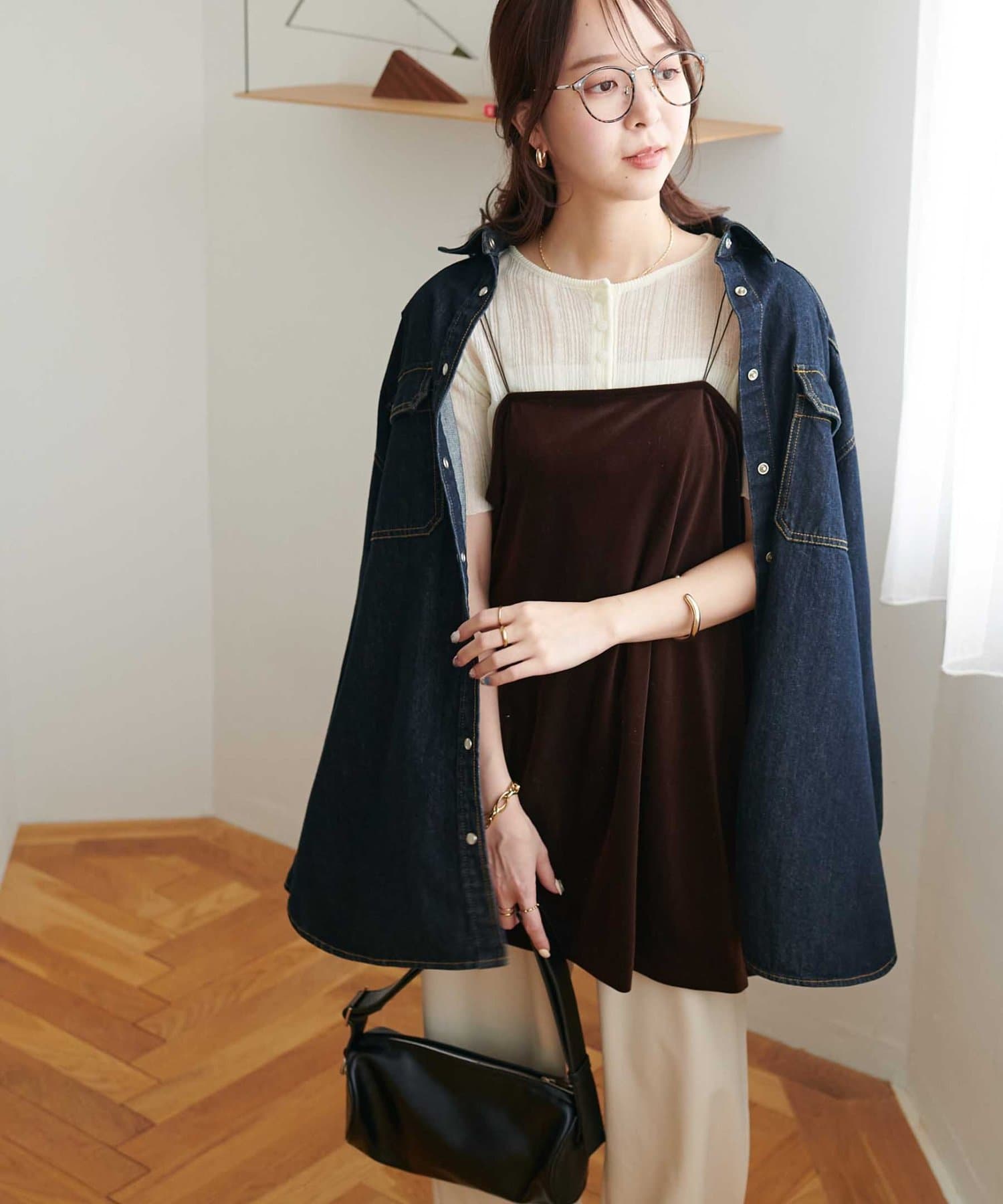 シンプルながらもほどよい光沢感のあるベロア素材が上品な印象をプラスしてくれるキャミチュニック!