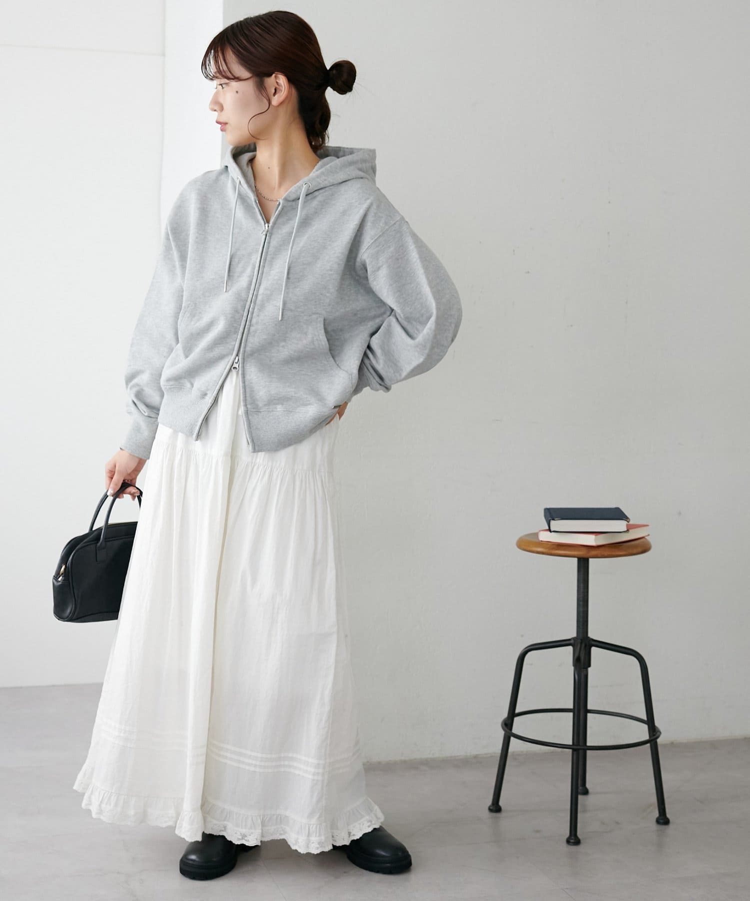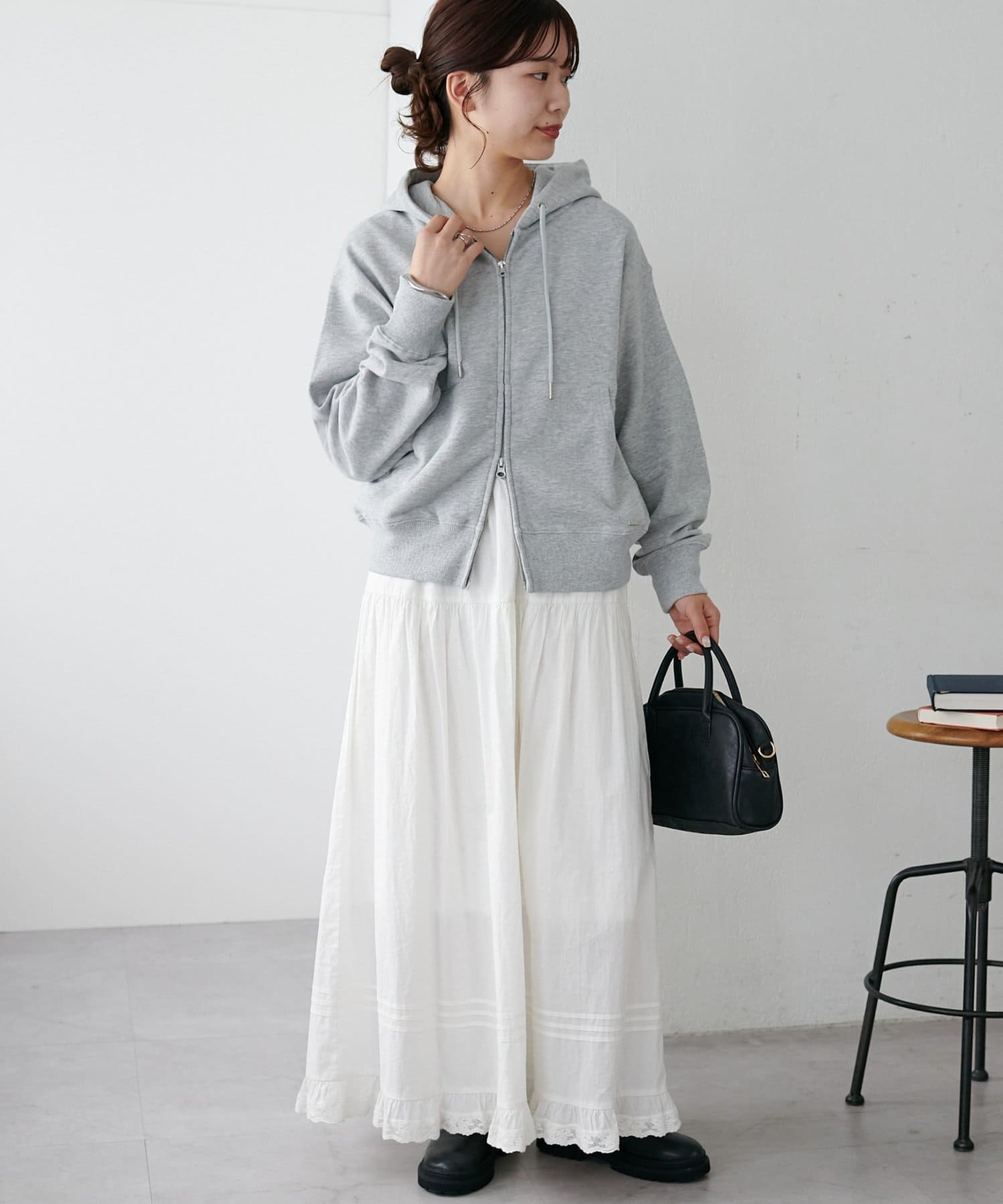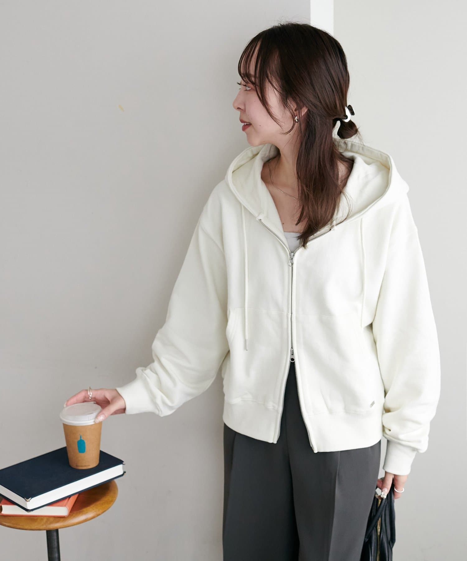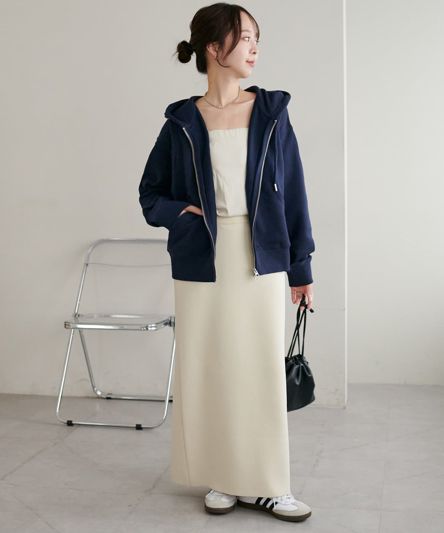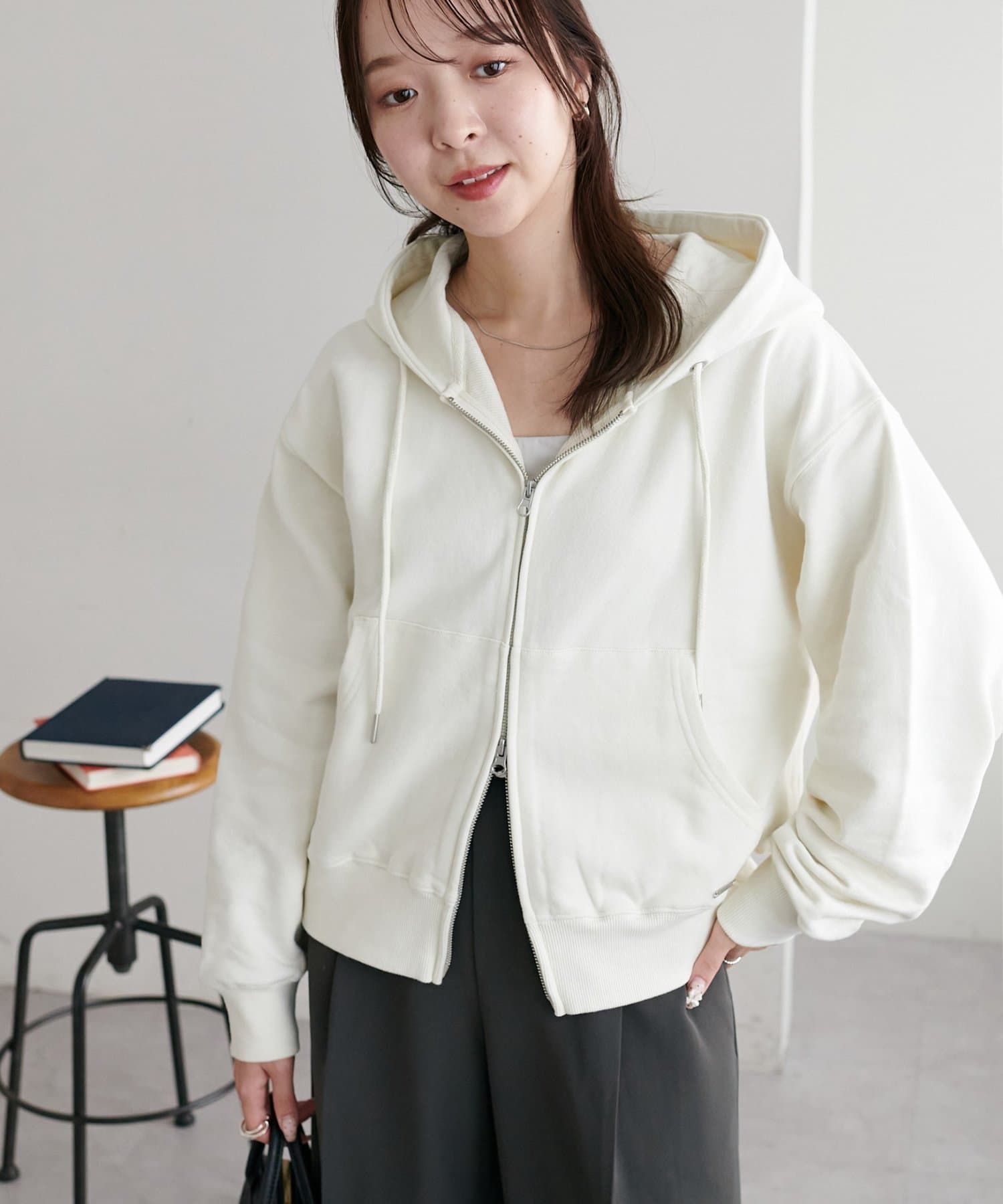 インスタでスタッフさんがジャケットと合わせをしているのがとても可愛くて、普段パーカーはあまり着ないのですが一目惚れで購入してしまいました。