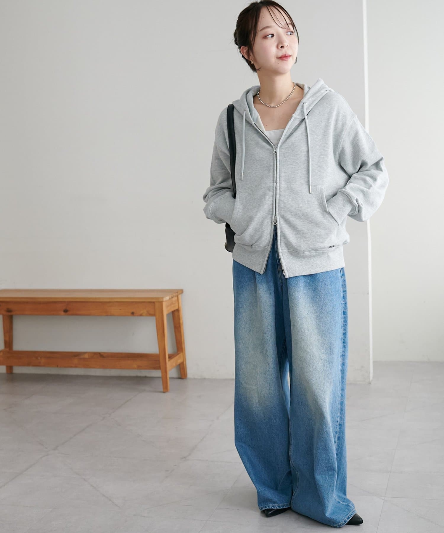 Wジップ仕様なので、ボトムスはストレートなシルエットからボリューム感のあるシルエットまで相性抜群!