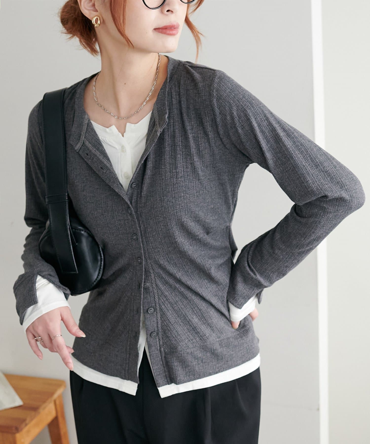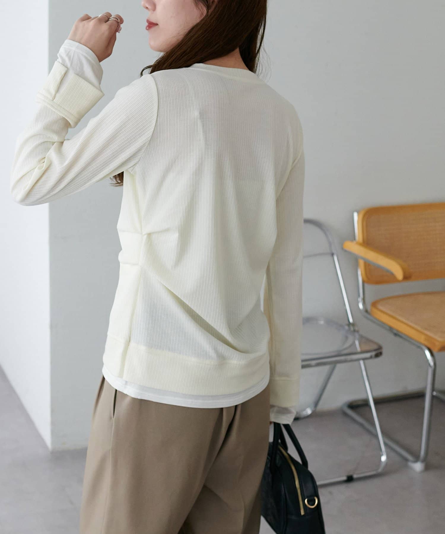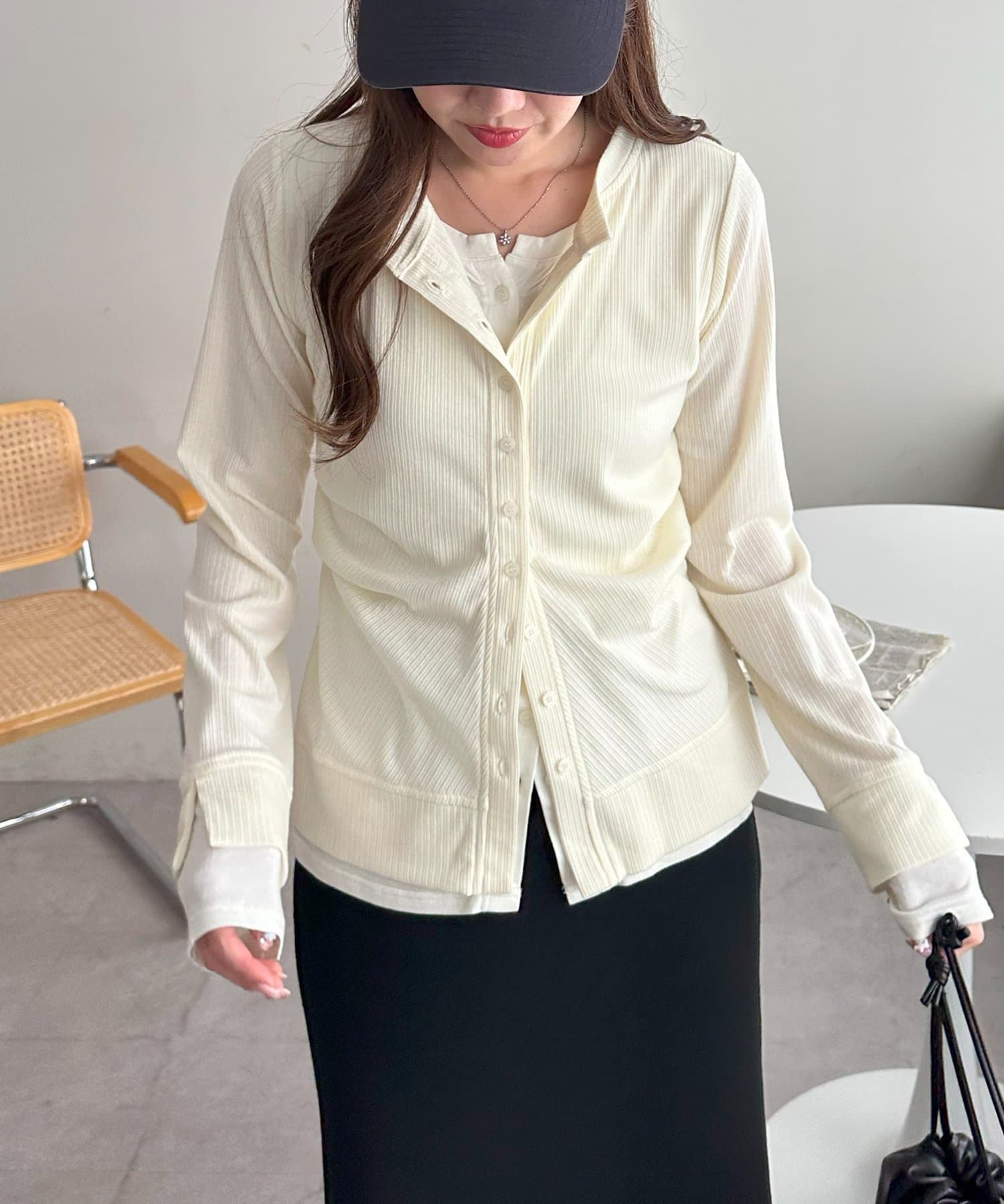 レイヤードと聞くと重ね着して重たくも見えてしまうイメージですが、気にならないので低身長の方にもおすすめです◎