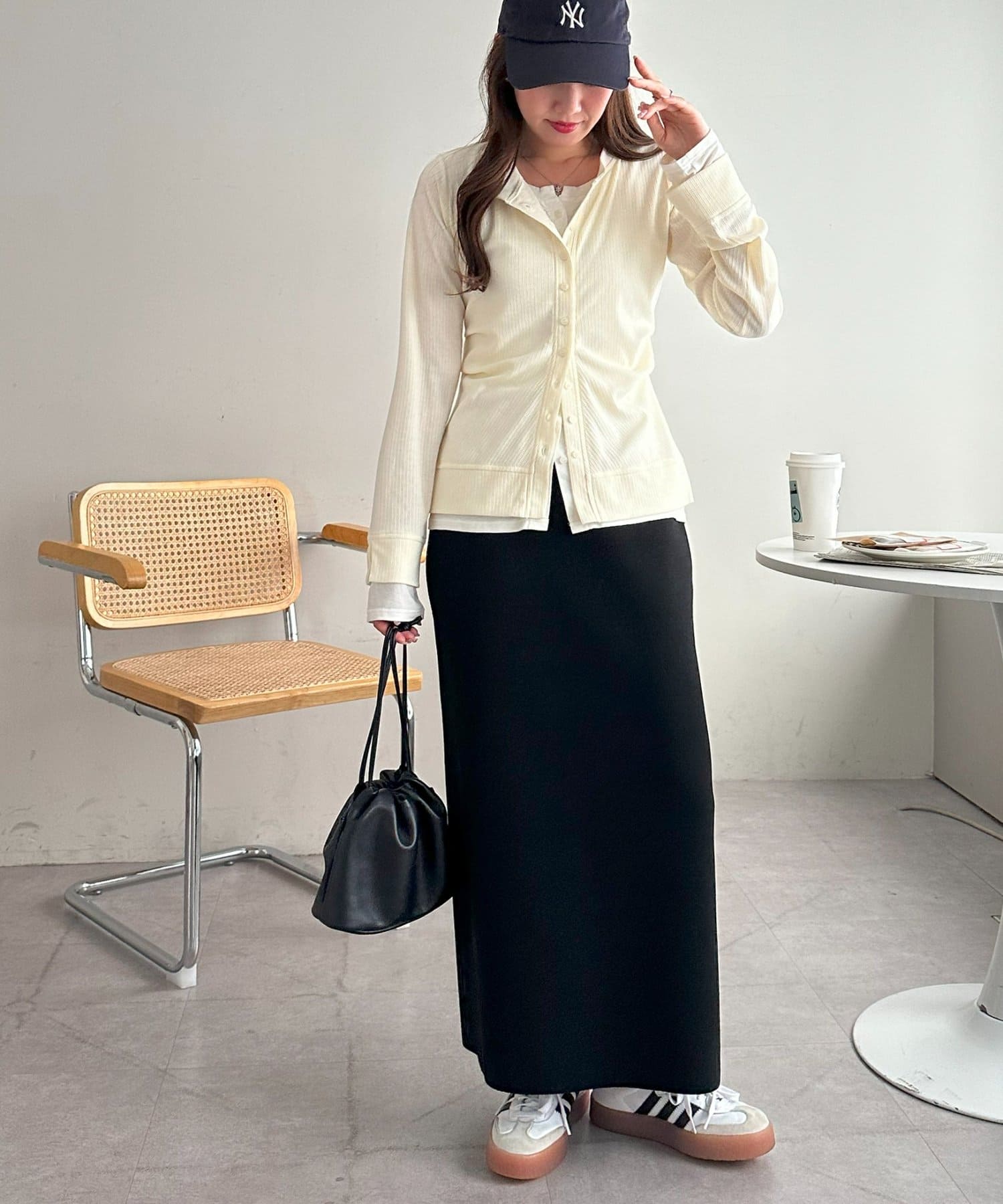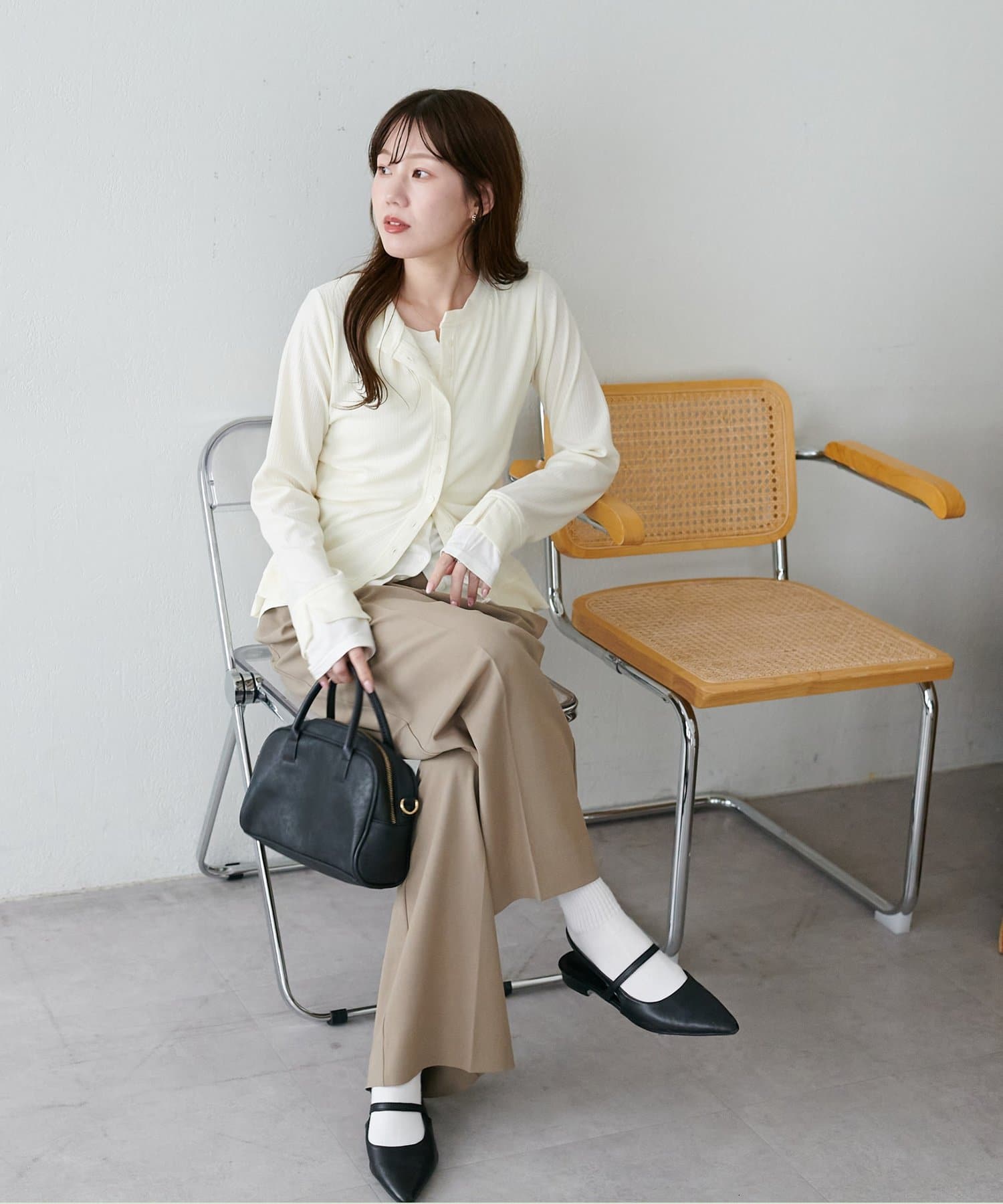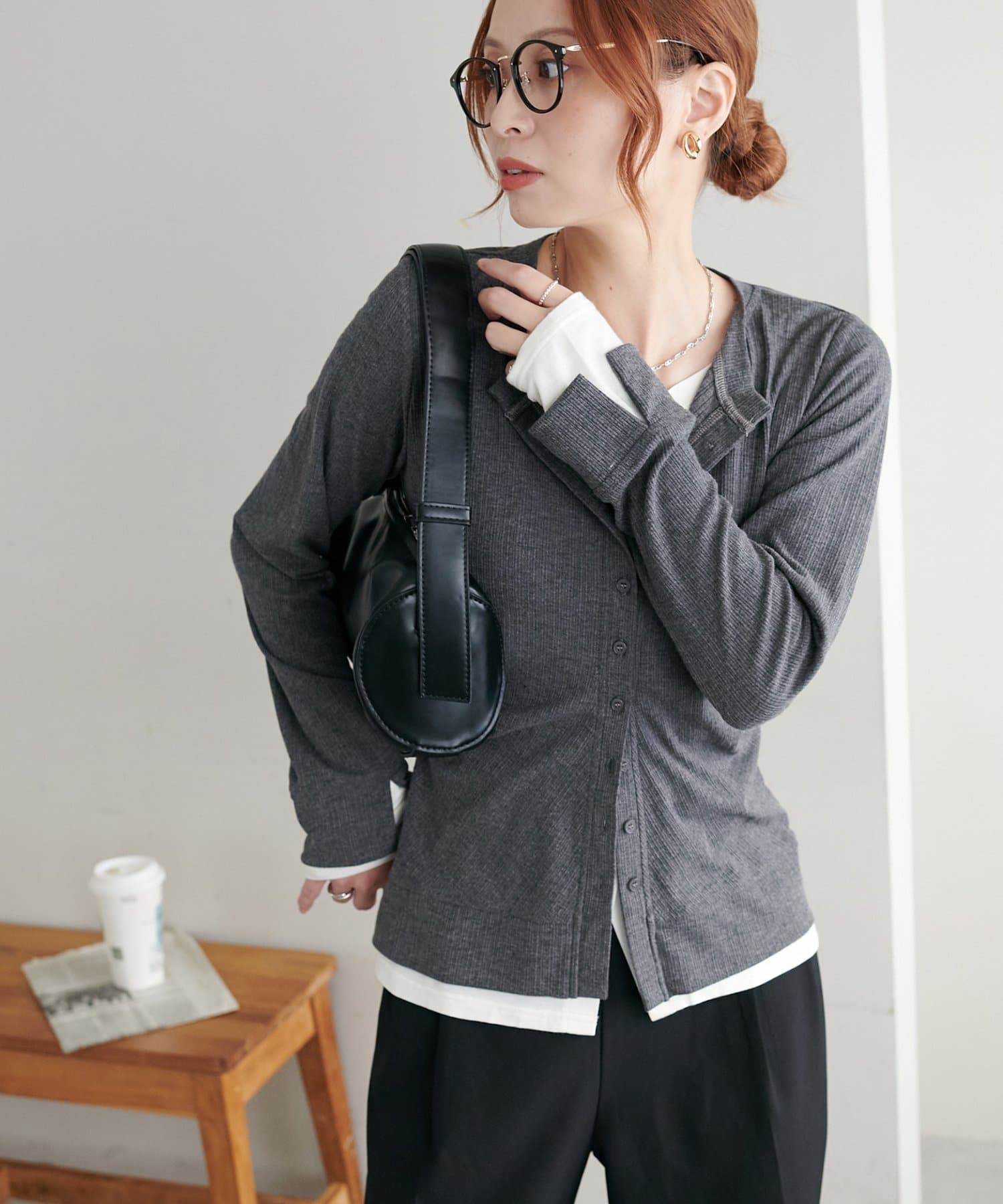 レイヤードと聞くと重ね着して重たくも見えてしまうイメージですが、気にならないので低身長の方にもおすすめです◎