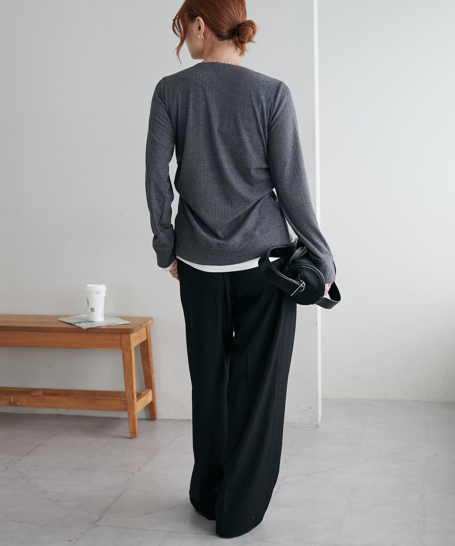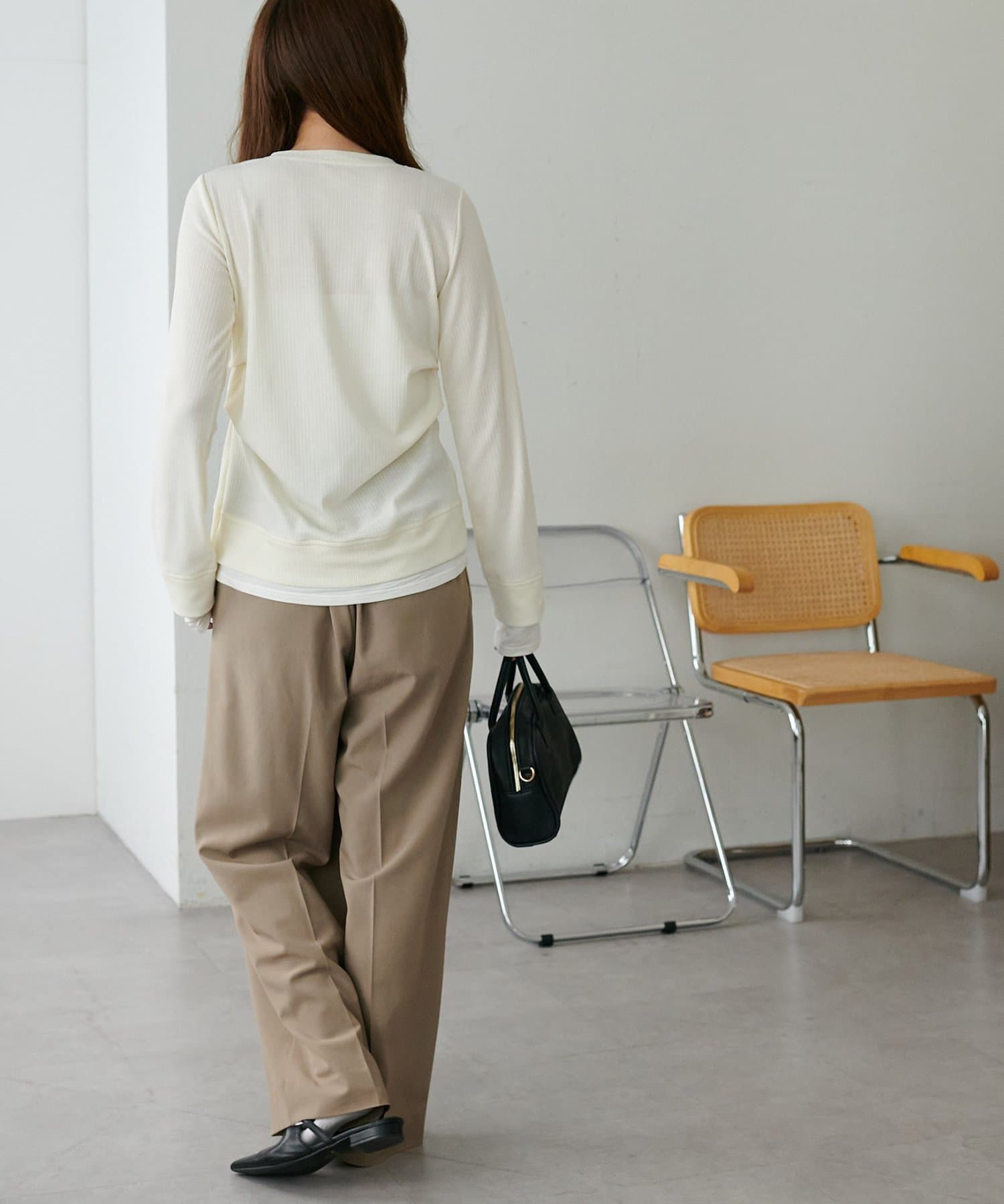 程よくボディラインに沿うシルエットなので、ボリュームのあるパンツやスカート合わせがおすすめ◎