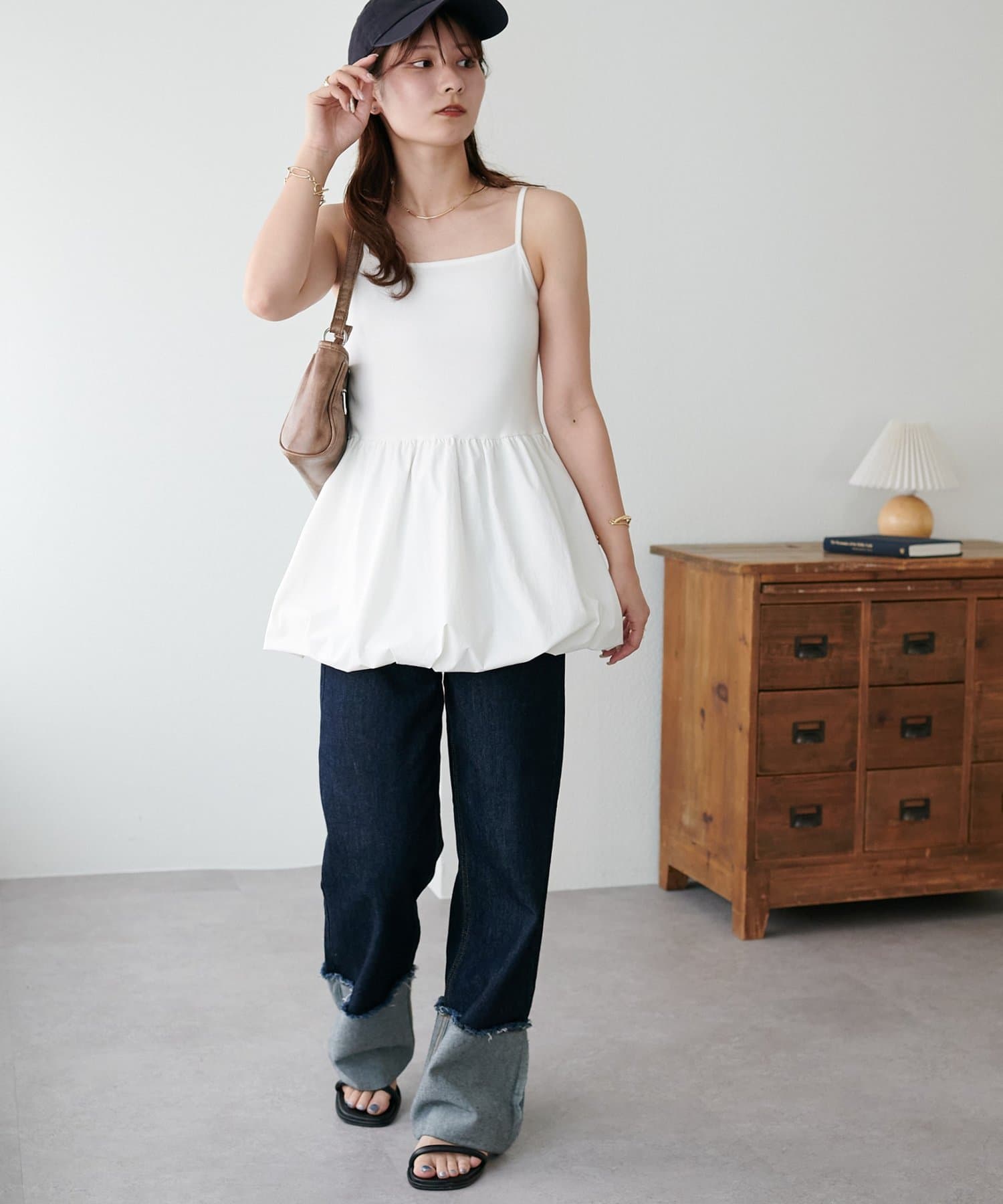 ウエストから立体的に広がるバルーンデザインがスタイルアップを叶えてくれるキャミチュニック!