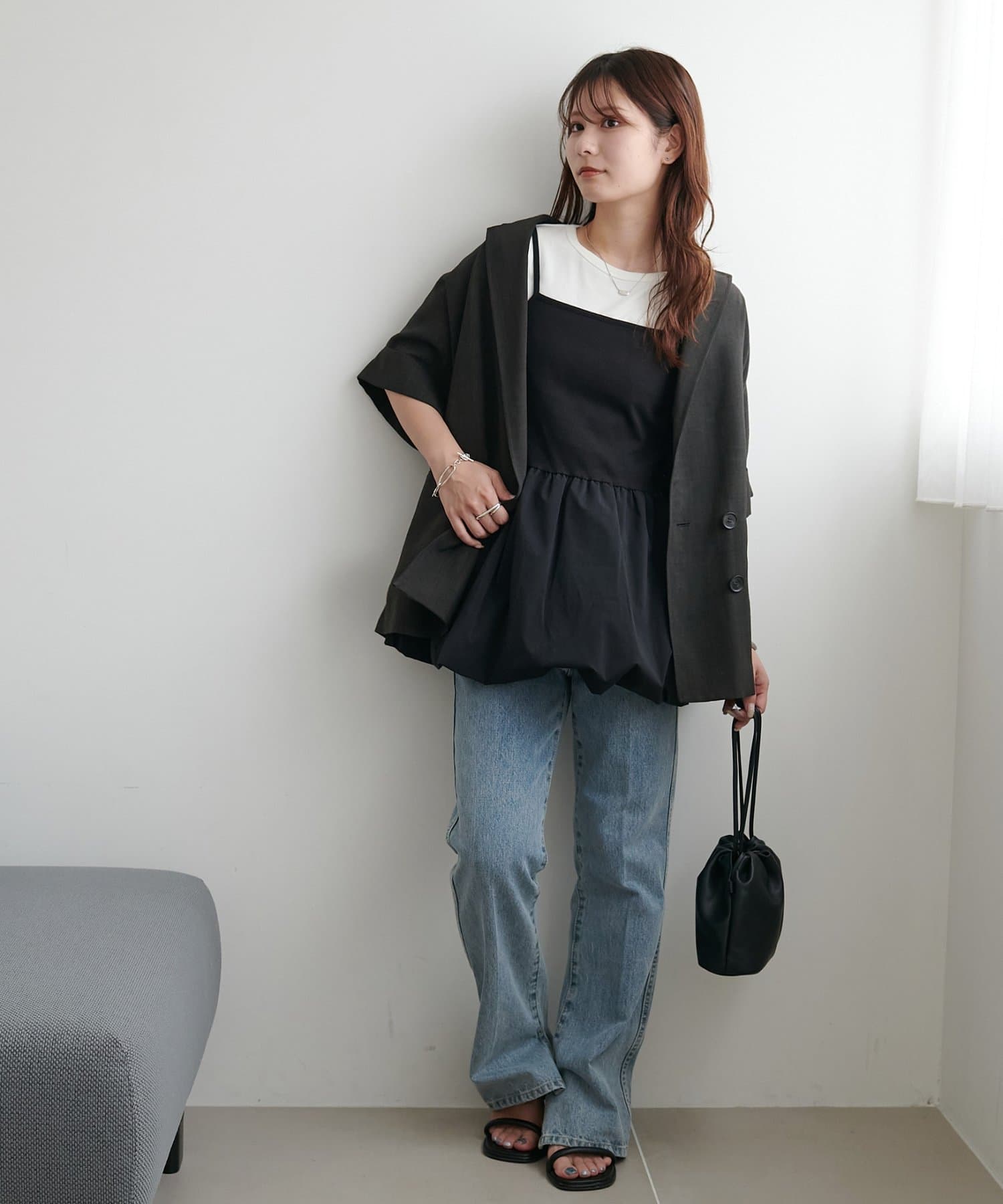インナーとして裾のバルーン部分がオシャレ感をアップしてくれます!