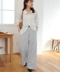 デニムやワイドパンツに合わせてカジュアルダウンすれば、こなれ感ある大人カジュアルスタイルに。