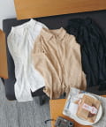 前開きデザインなので、羽織りとしても活躍し、タンクトップやキャミソールとのレイヤードも楽しめます♪