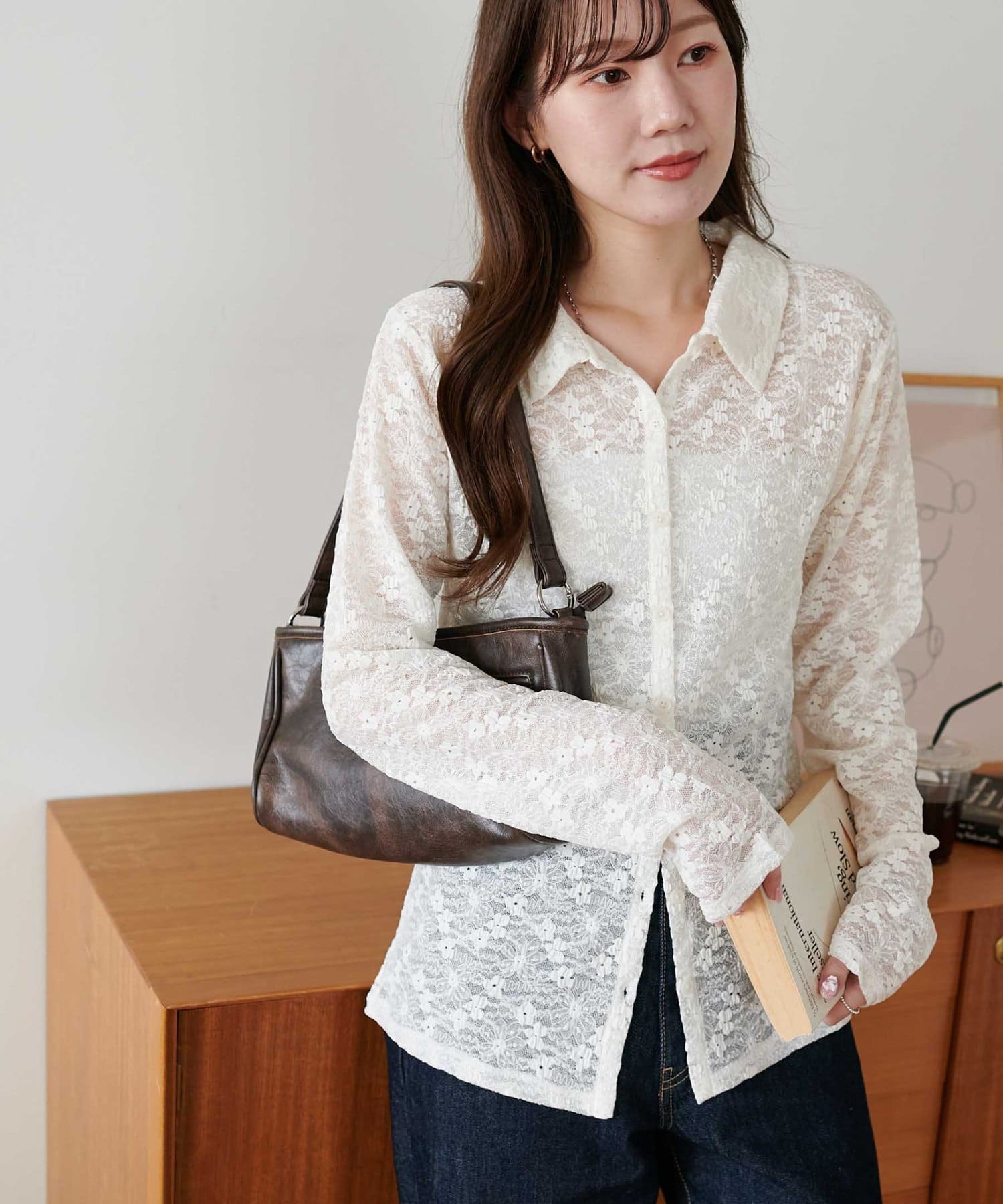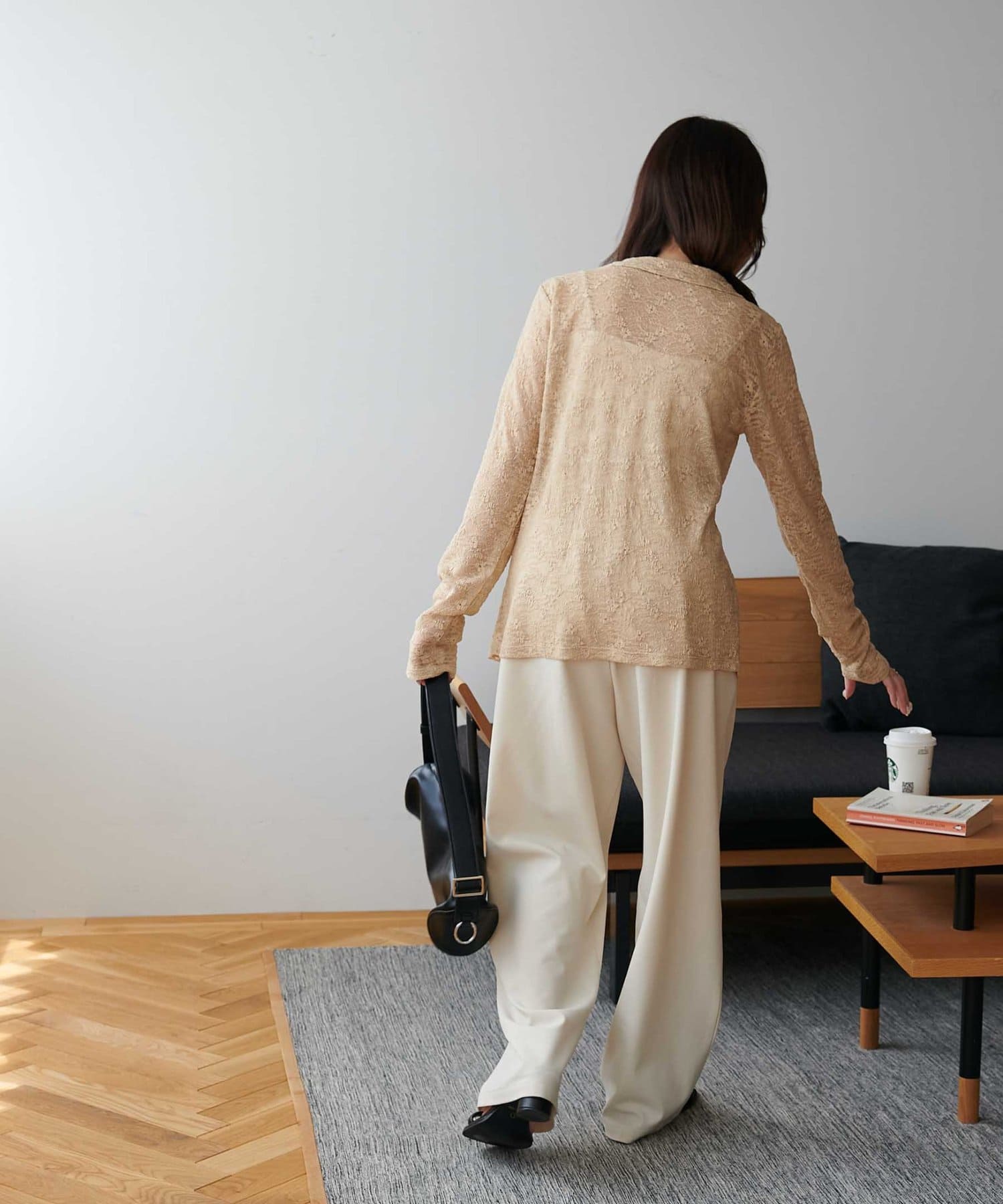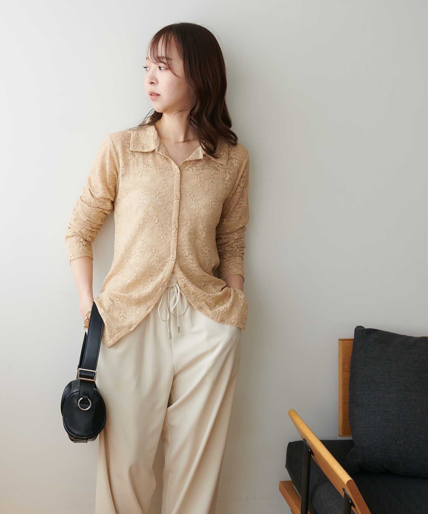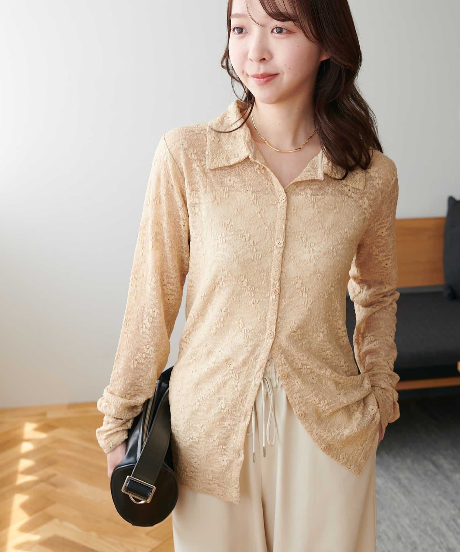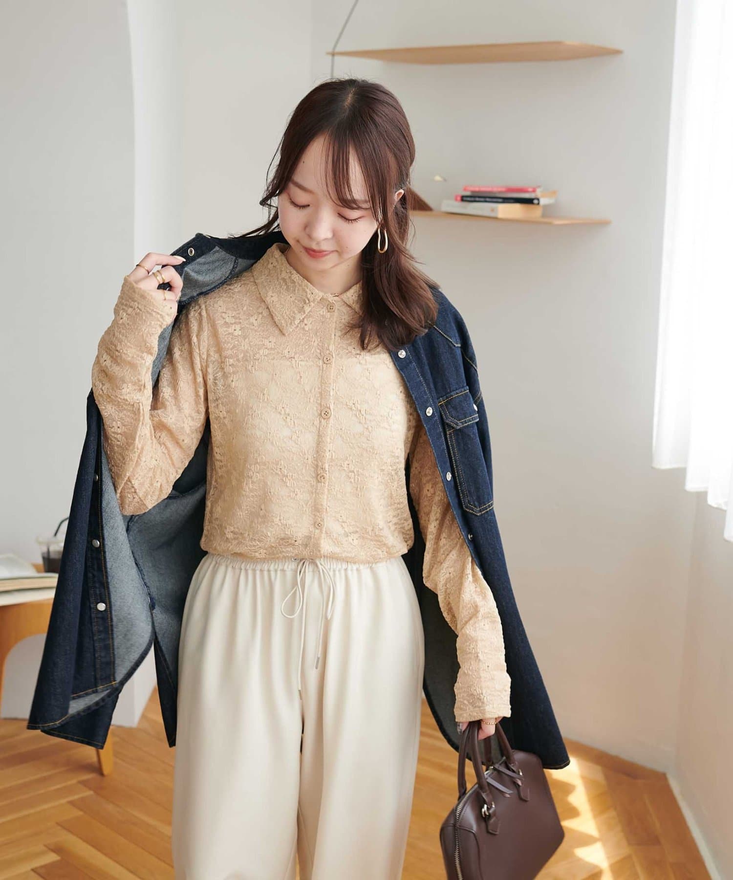 花柄モチーフのレースが女性らしいやわらかな雰囲気を演出し、一枚で華やかなスタイリングが完成します。