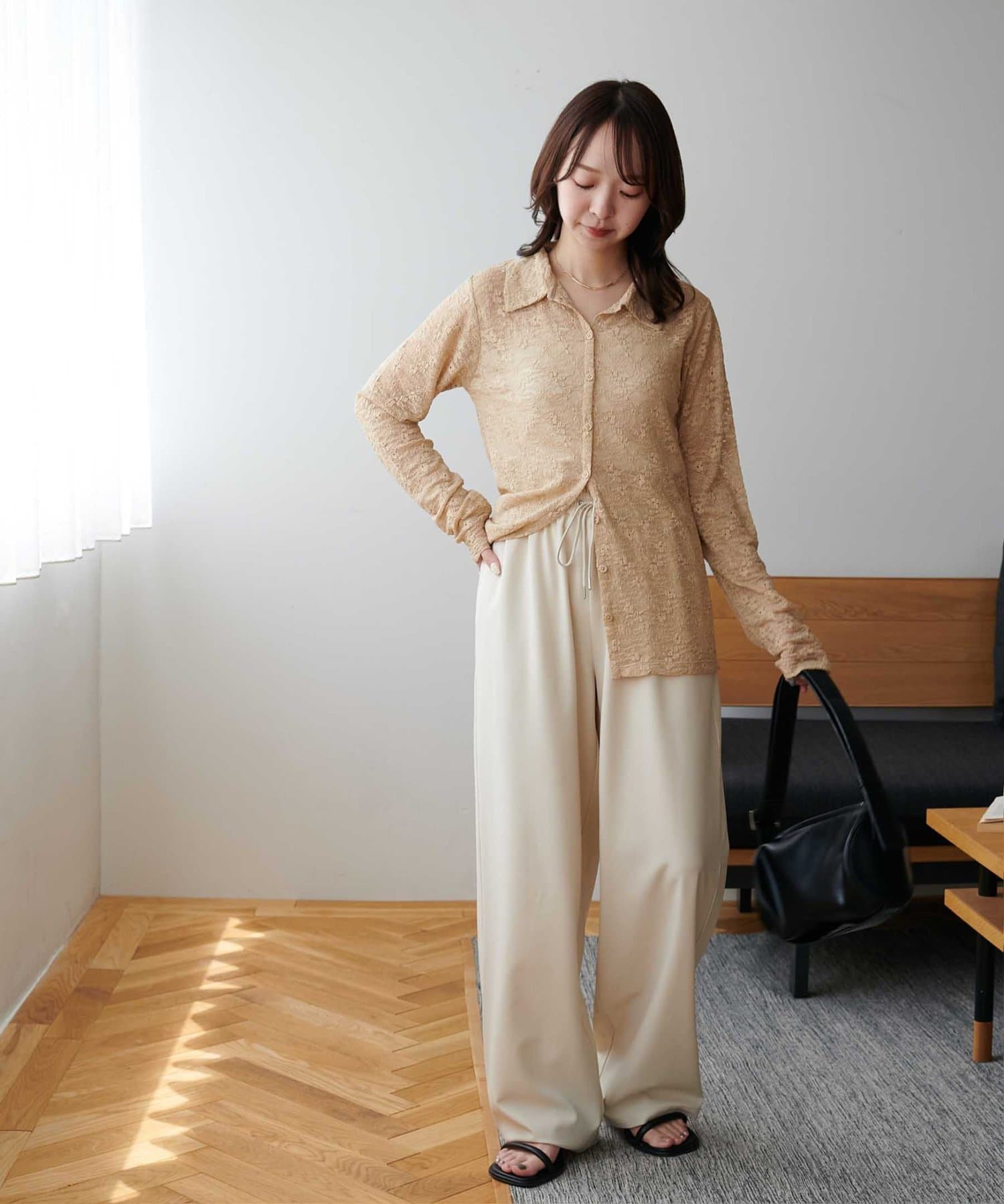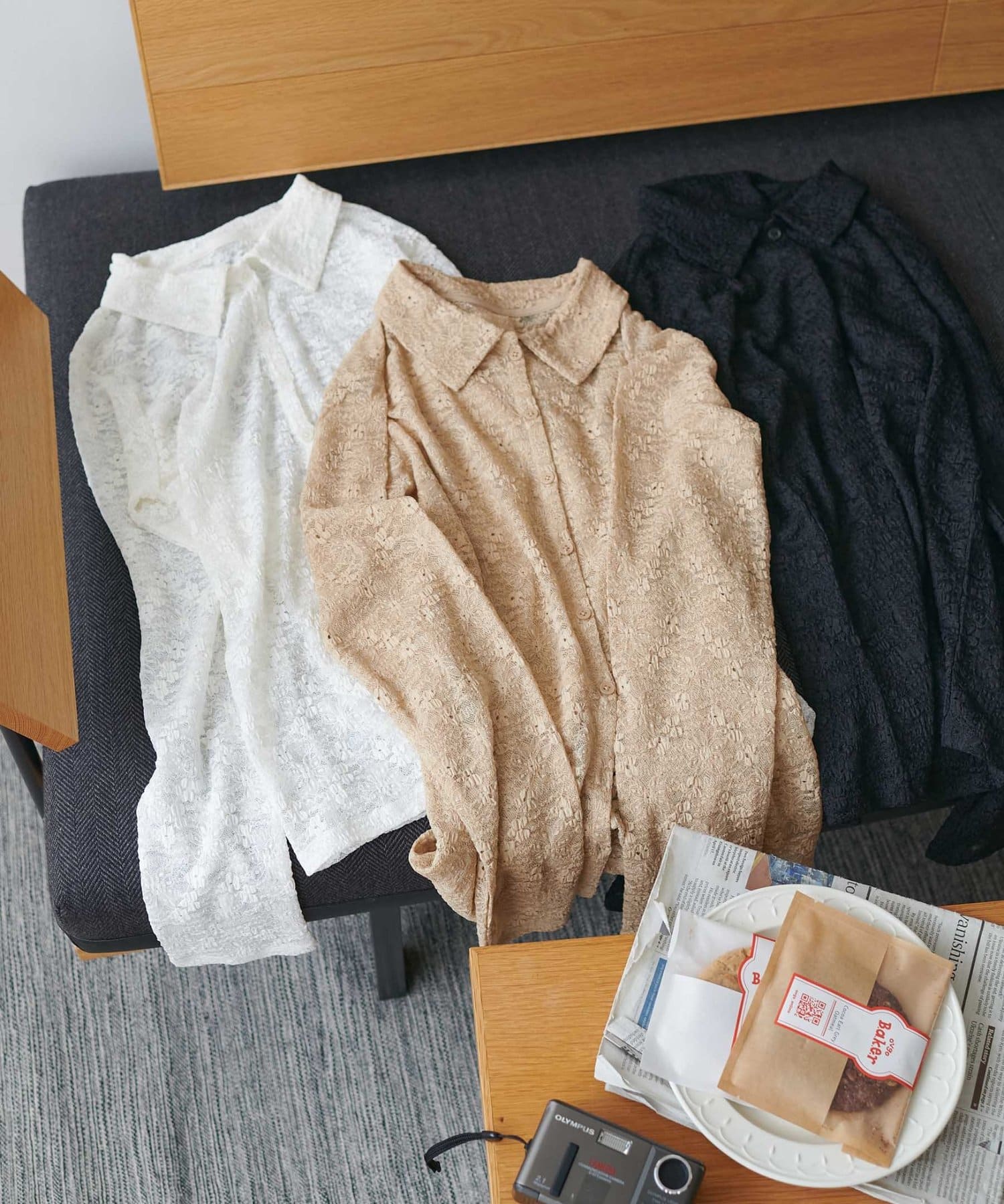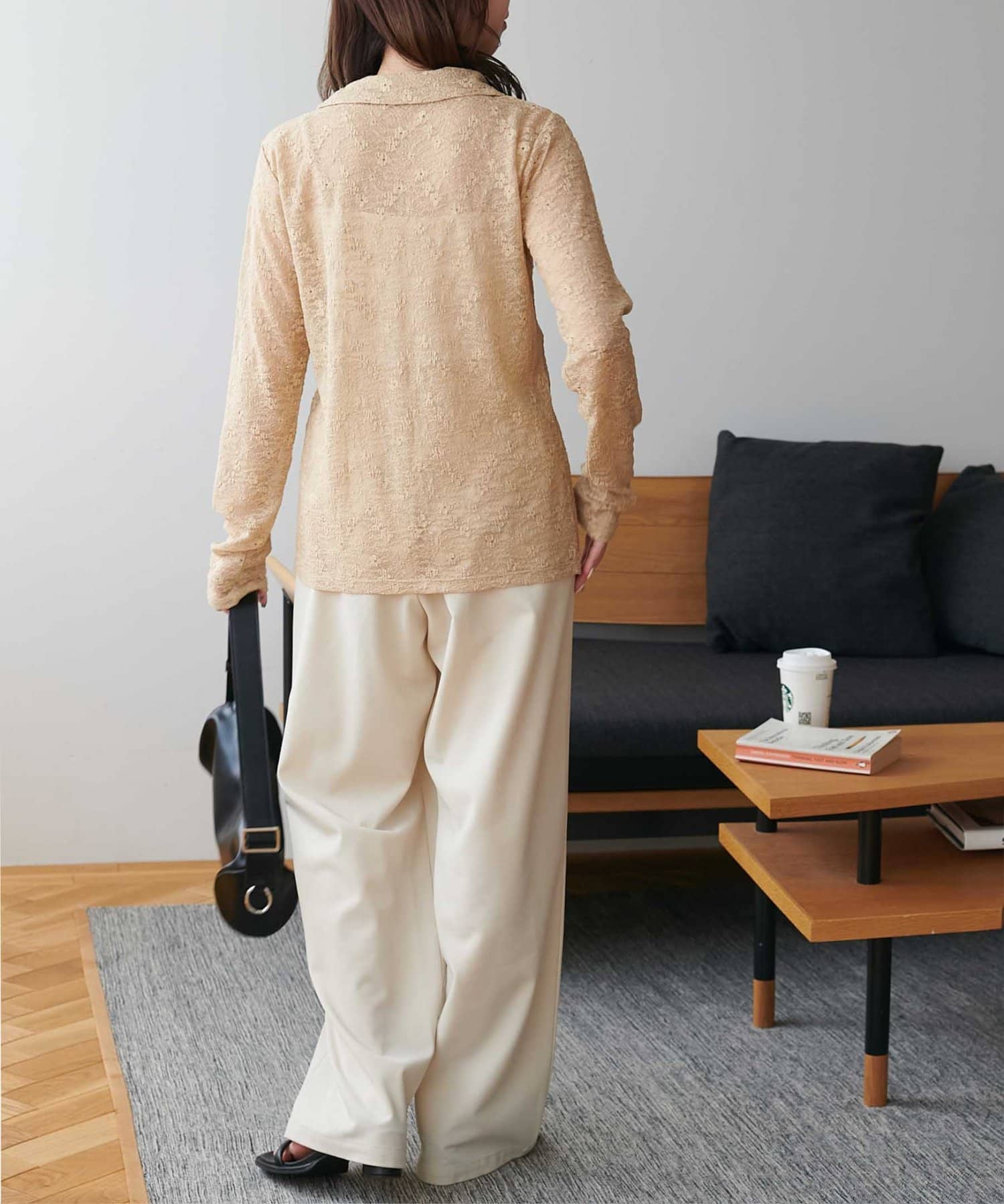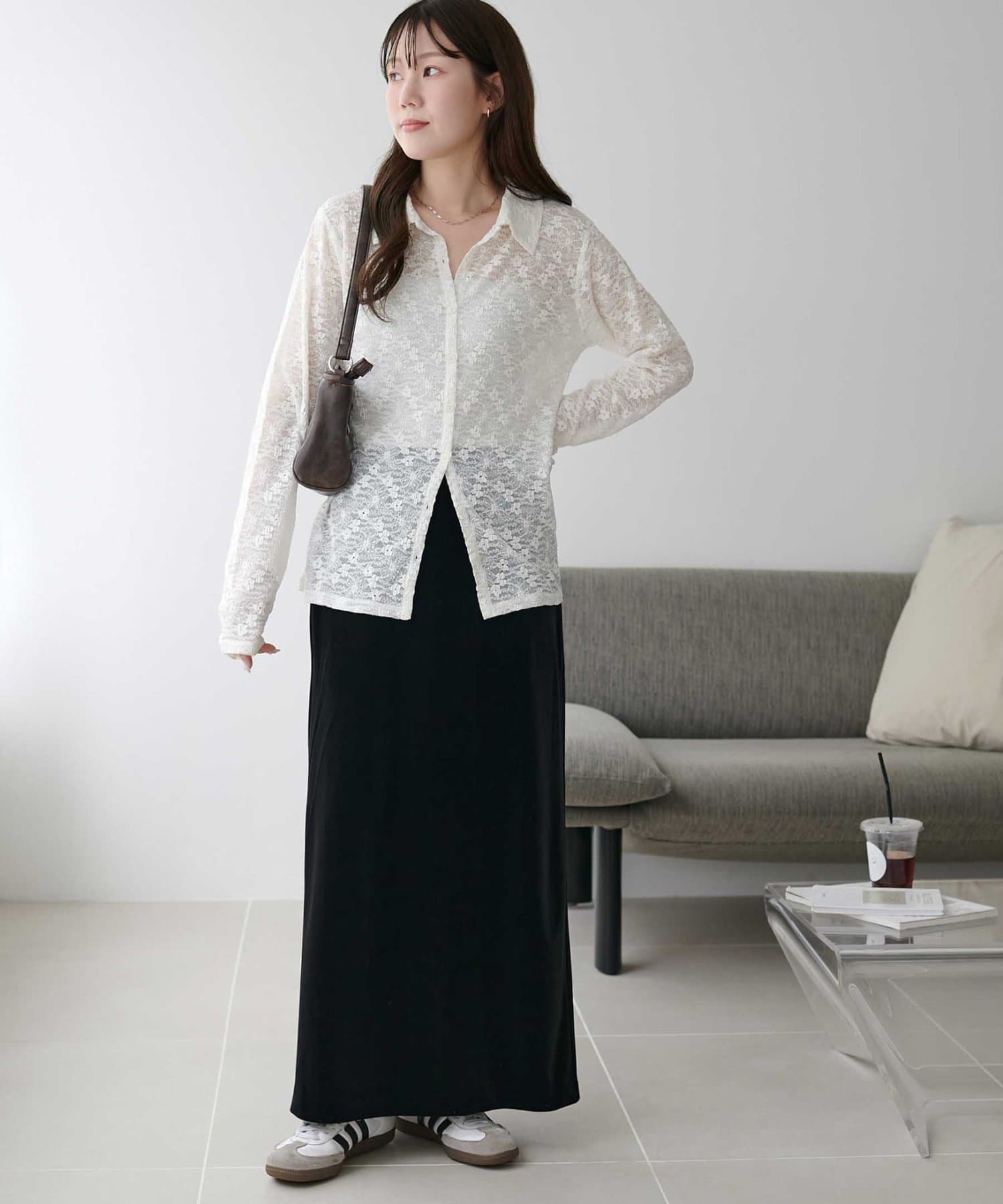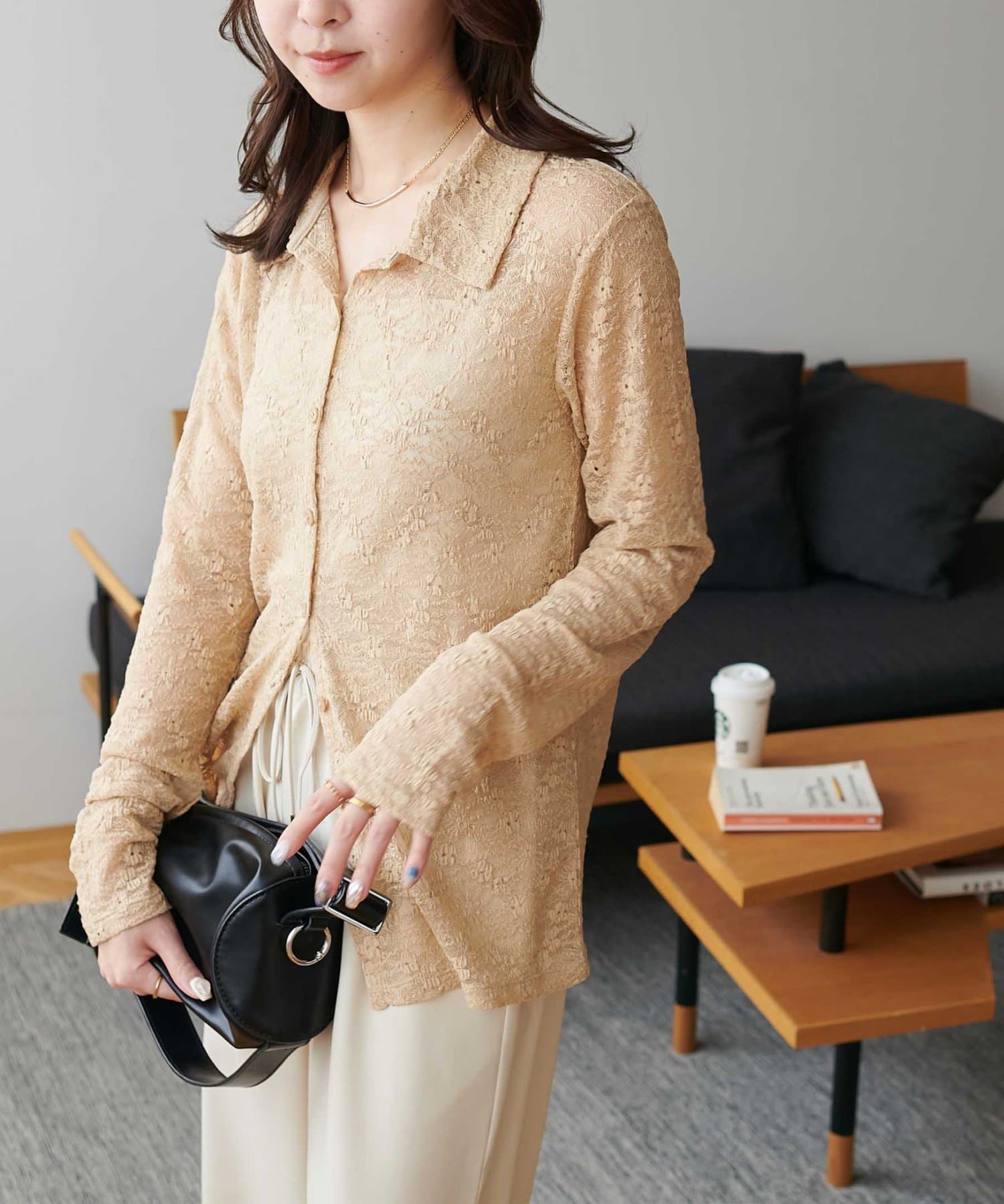 花柄モチーフのレースが女性らしいやわらかな雰囲気を演出し、一枚で華やかなスタイリングが完成します。