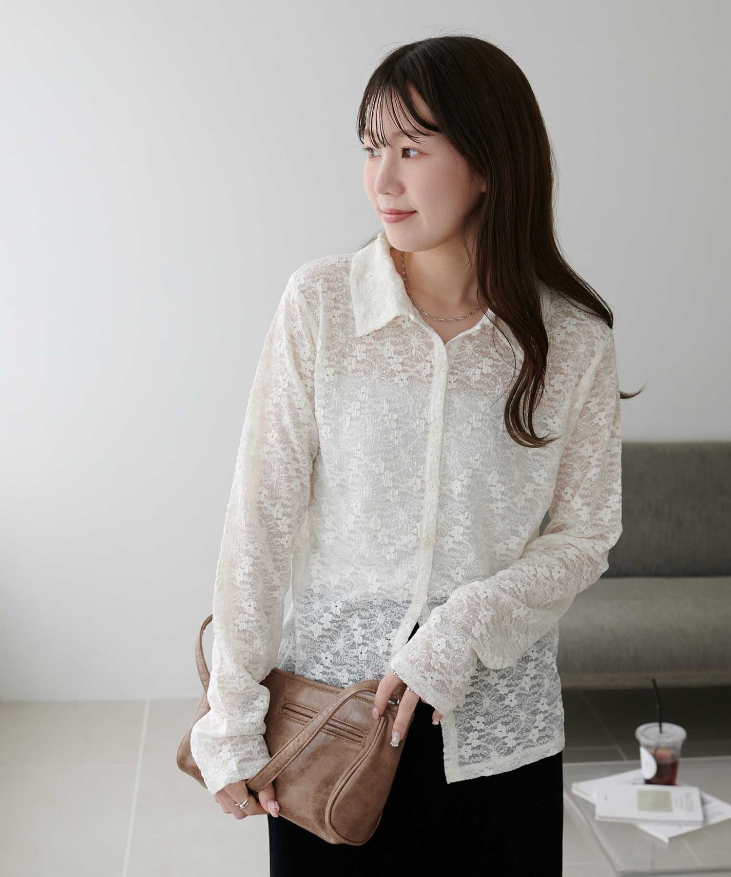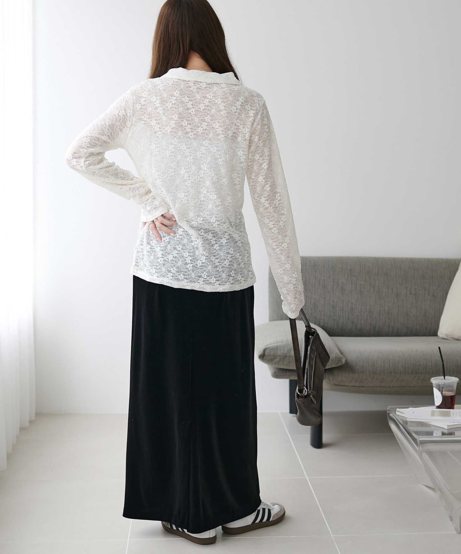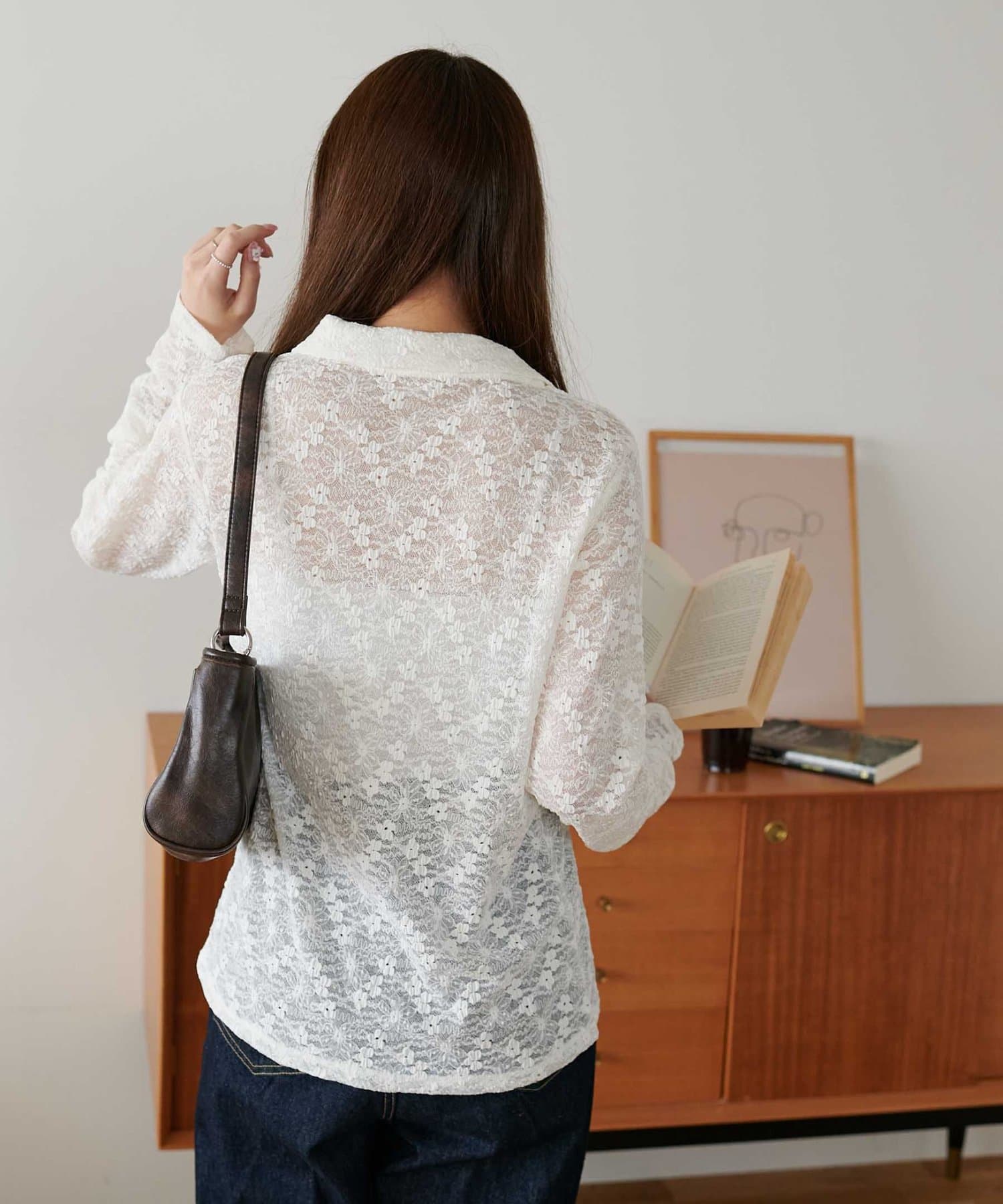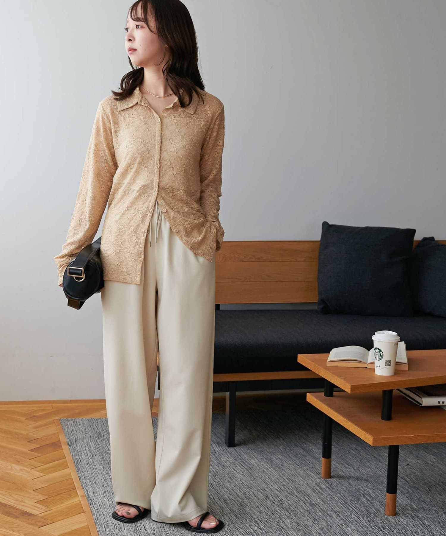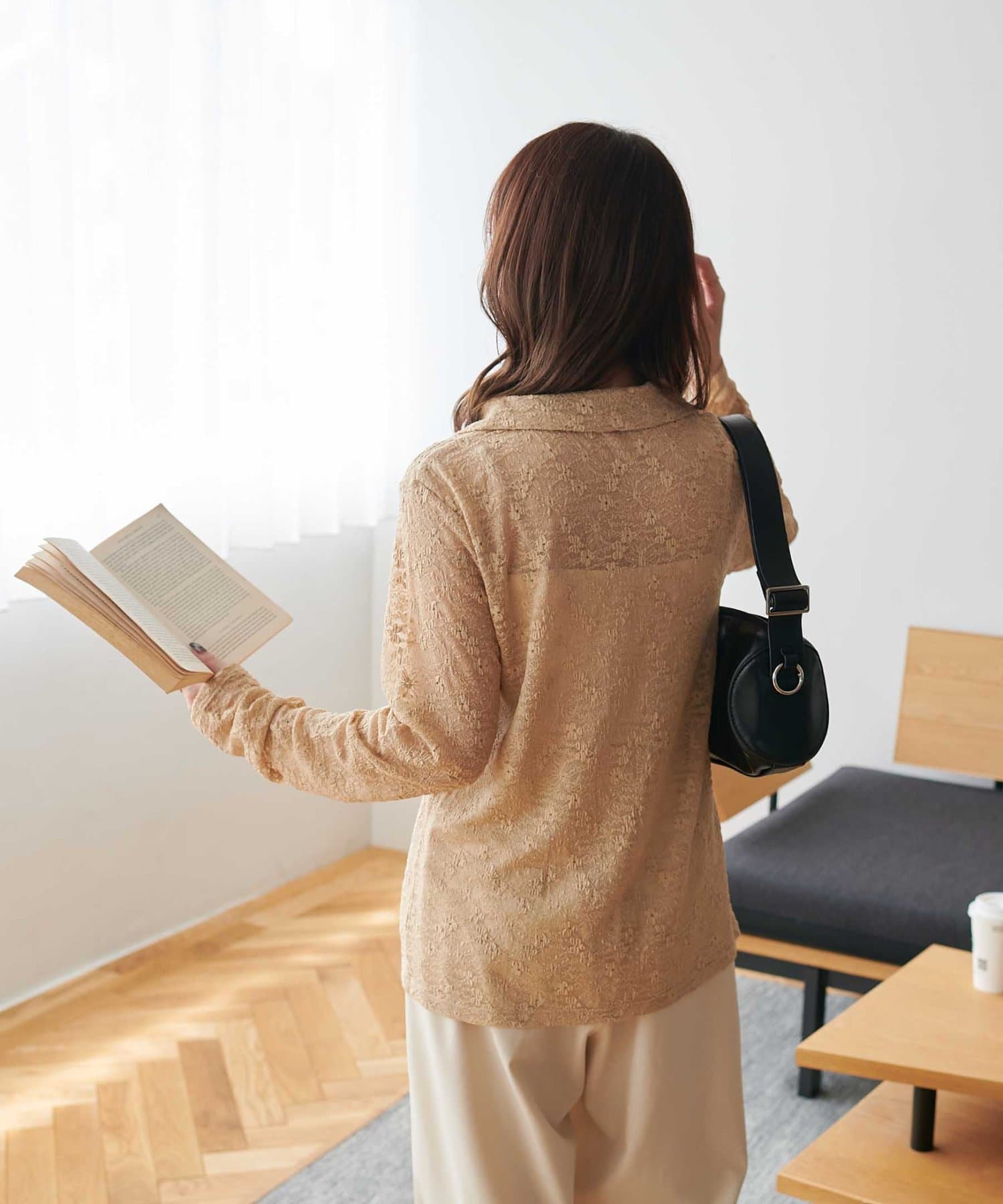 花柄モチーフのレースが女性らしいやわらかな雰囲気を演出し、一枚で華やかなスタイリングが完成します。