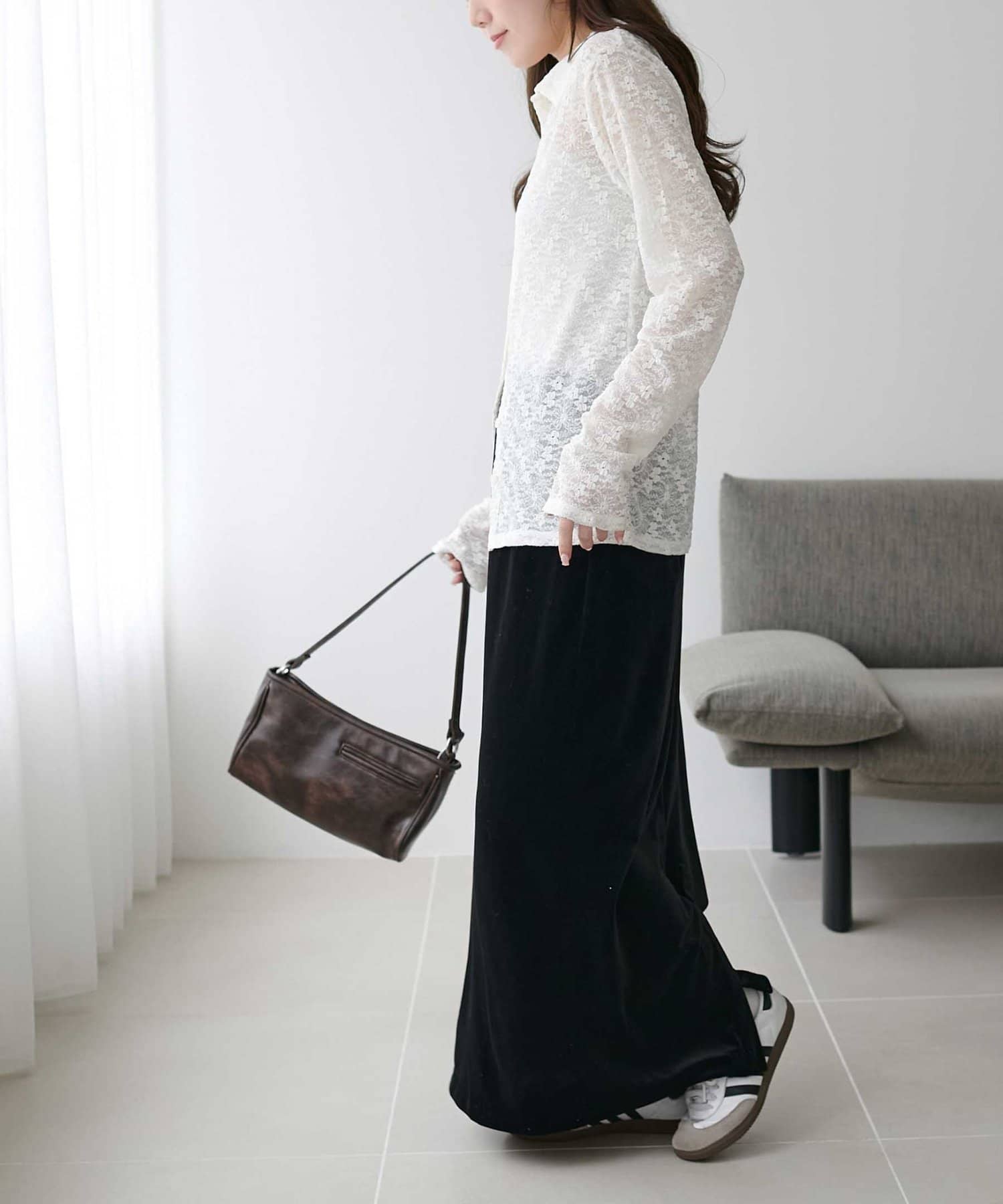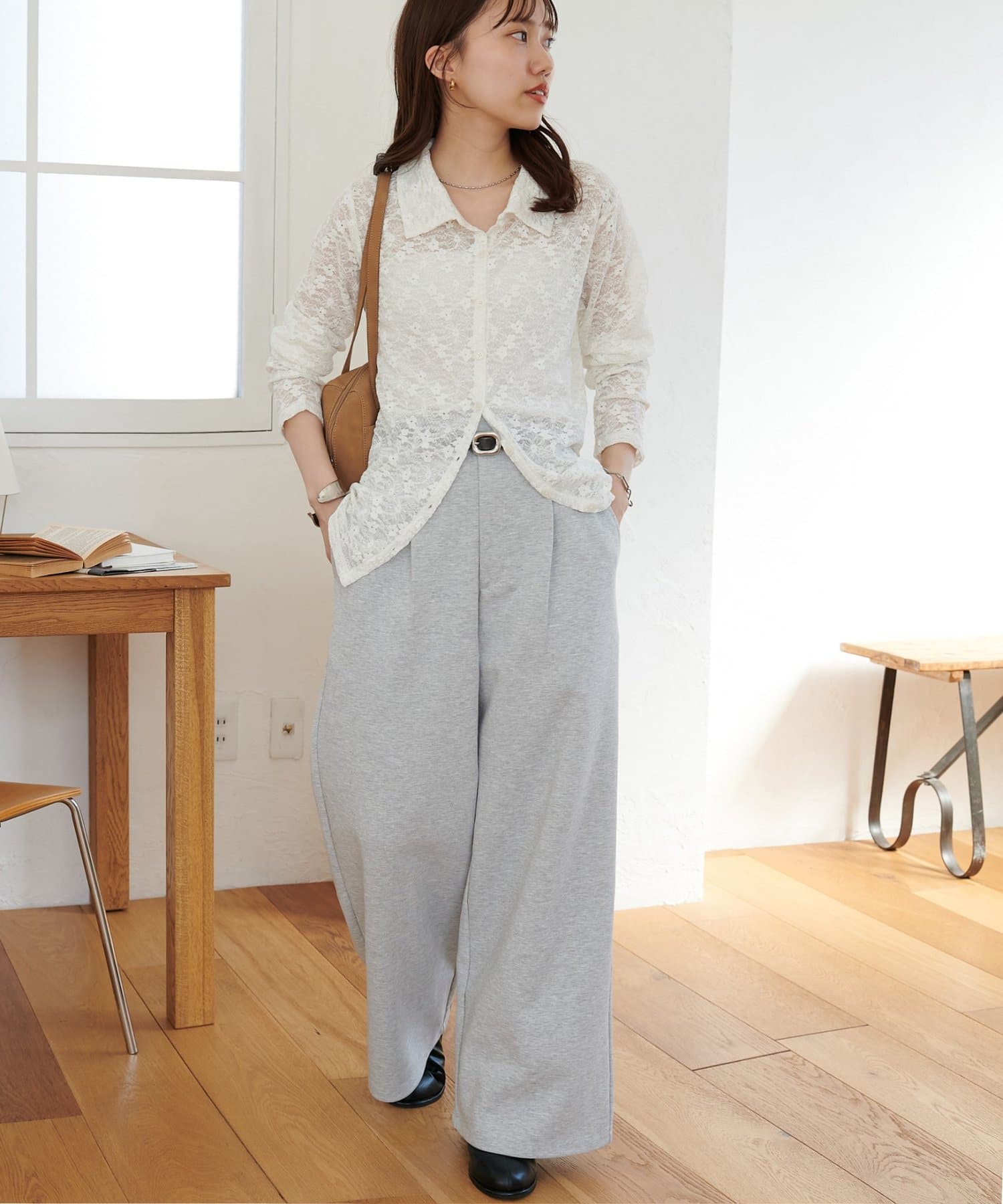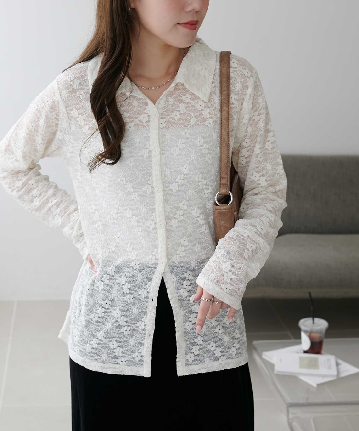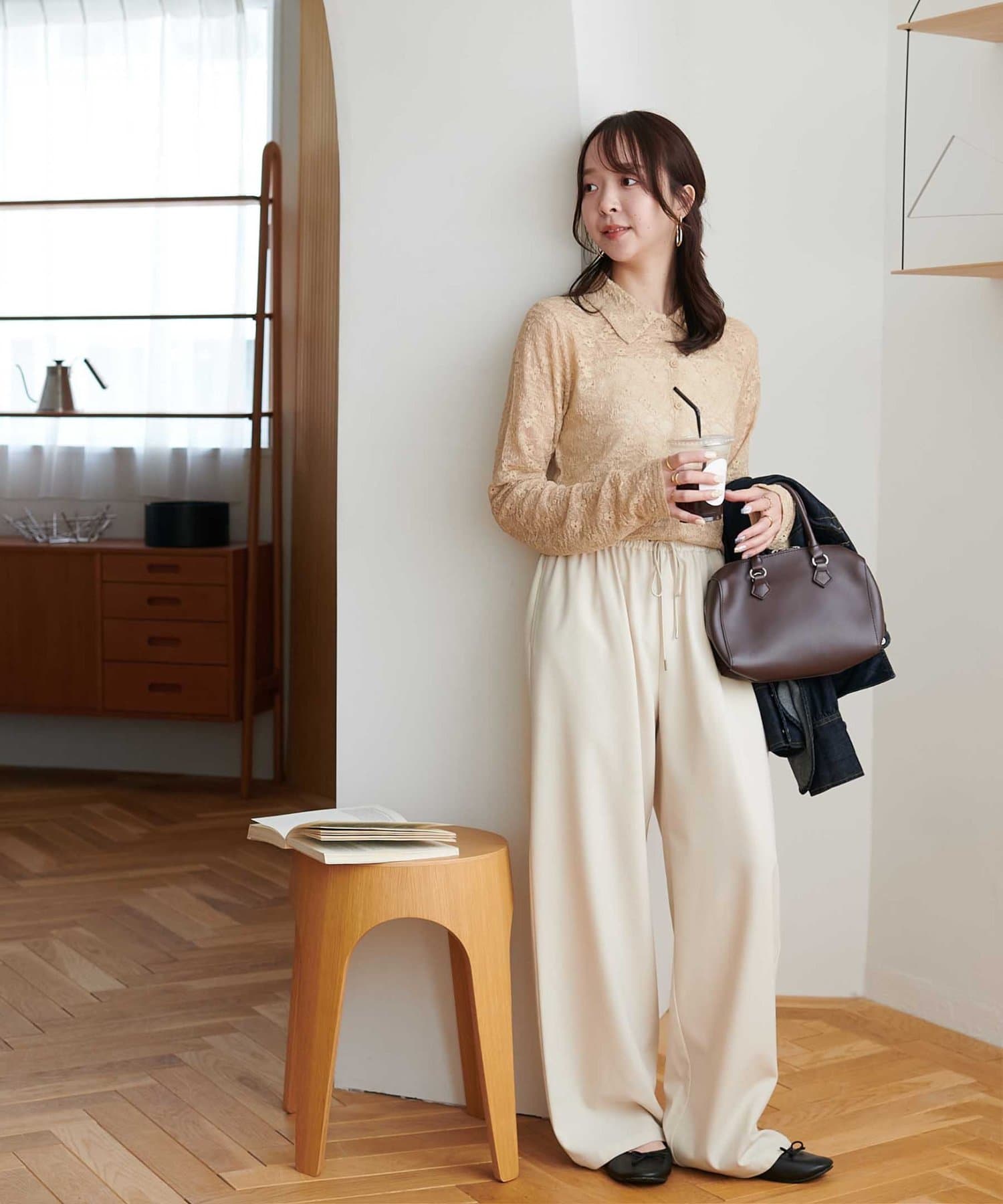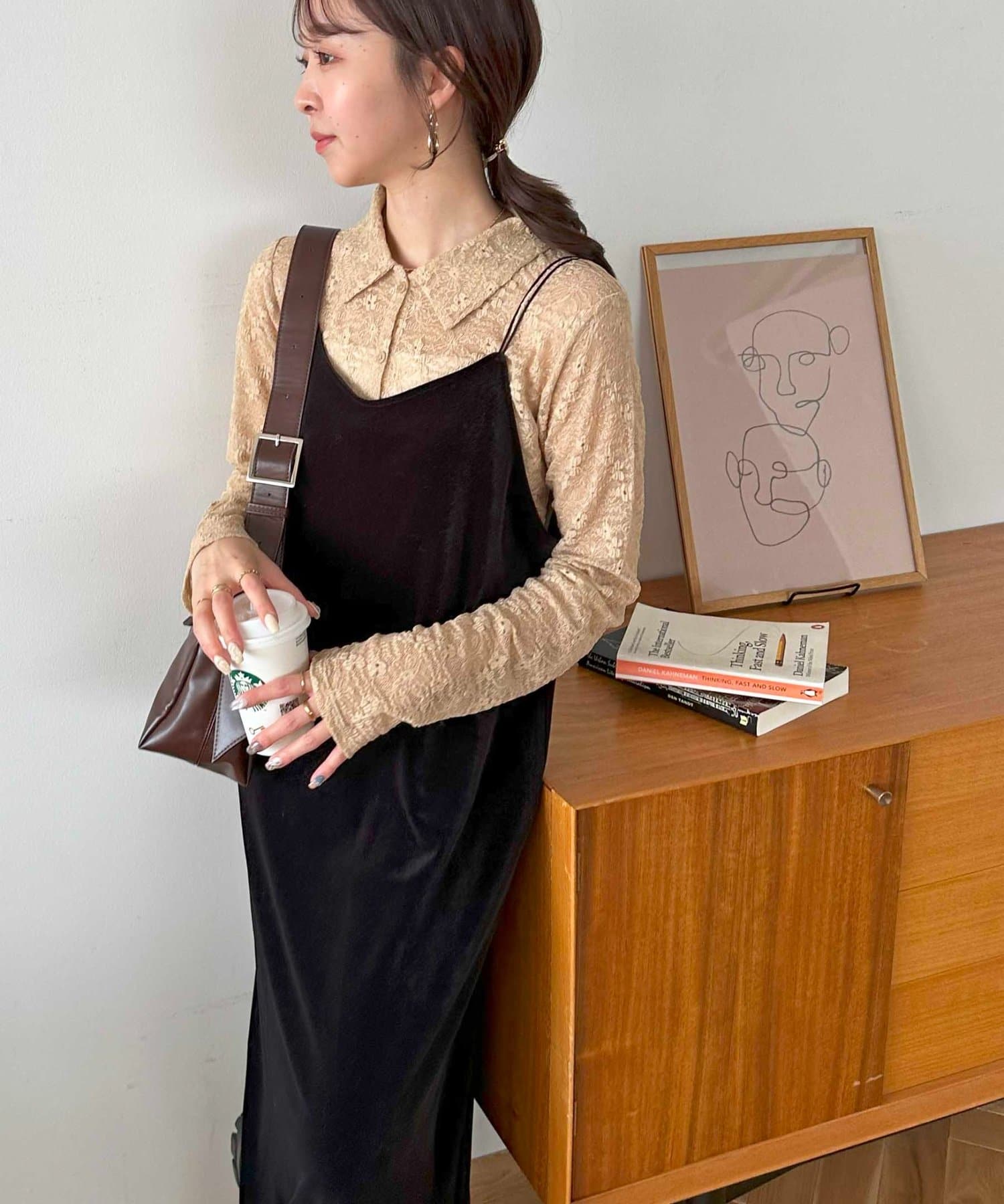 花柄モチーフのレースが女性らしいやわらかな雰囲気を演出し、一枚で華やかなスタイリングが完成します。
