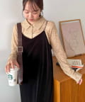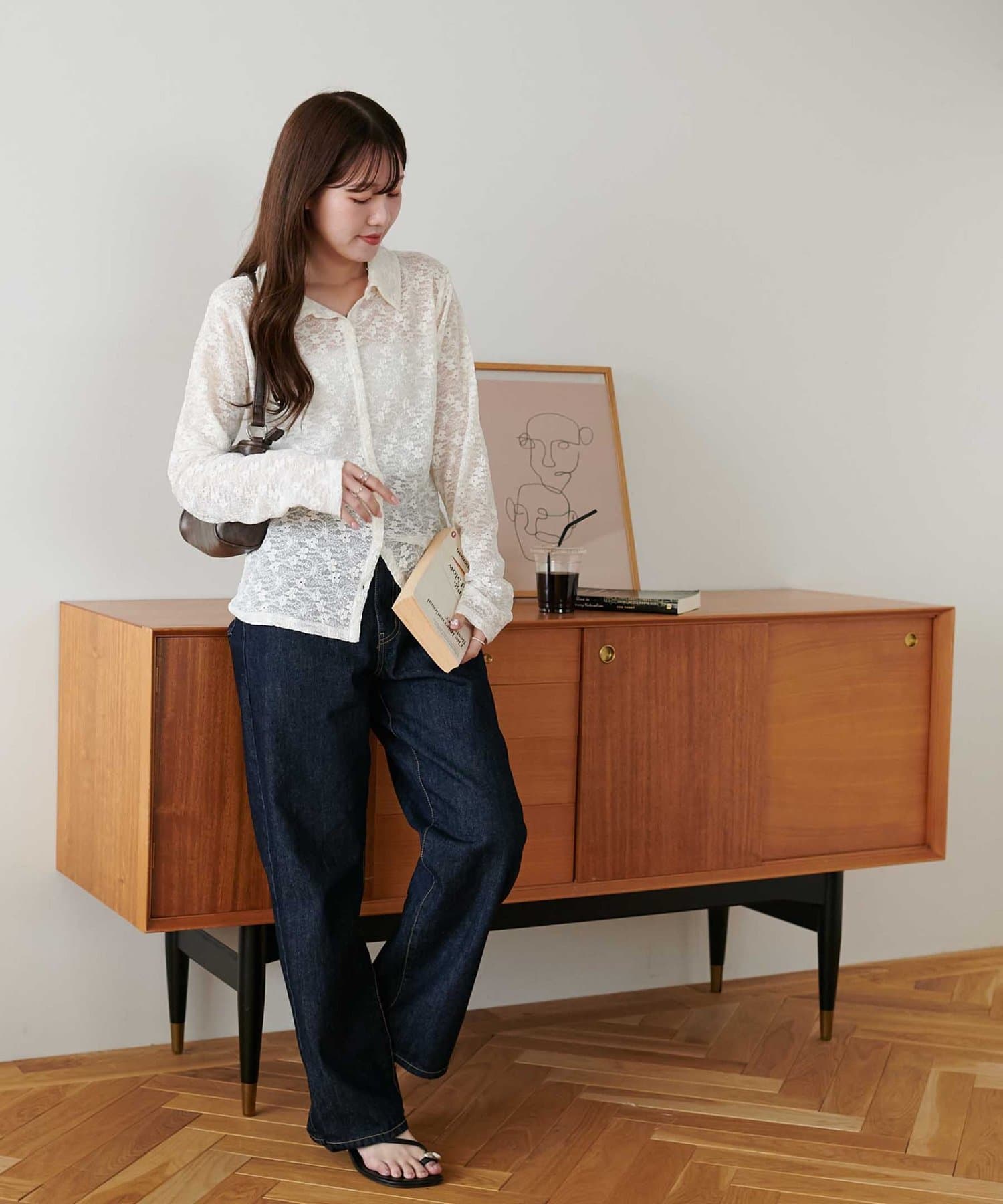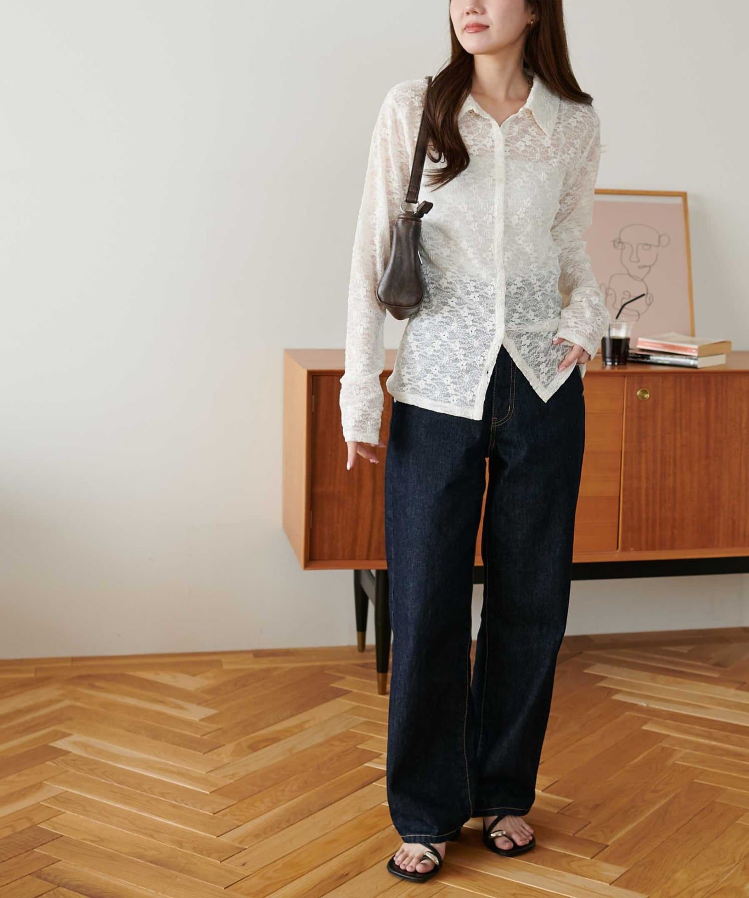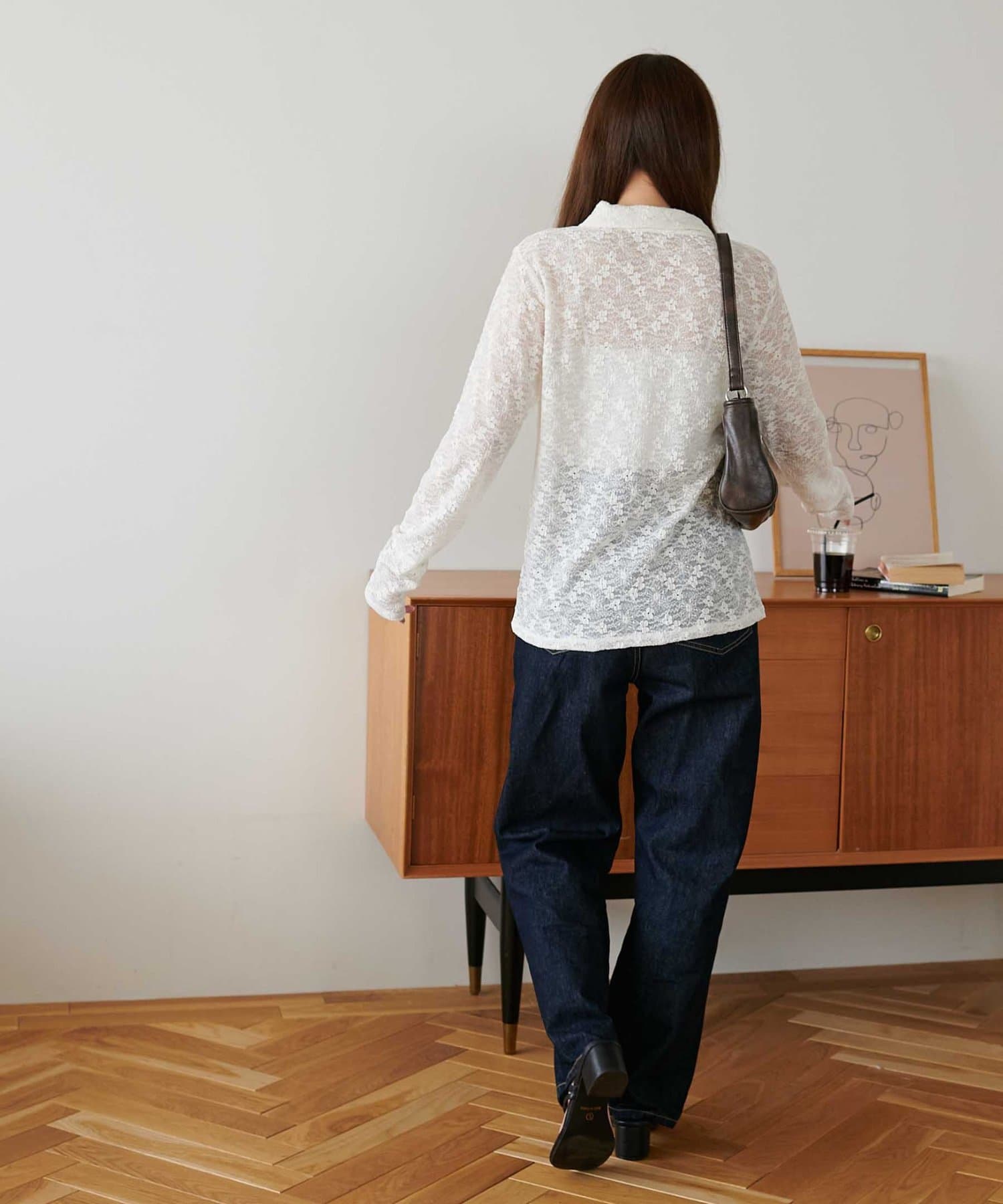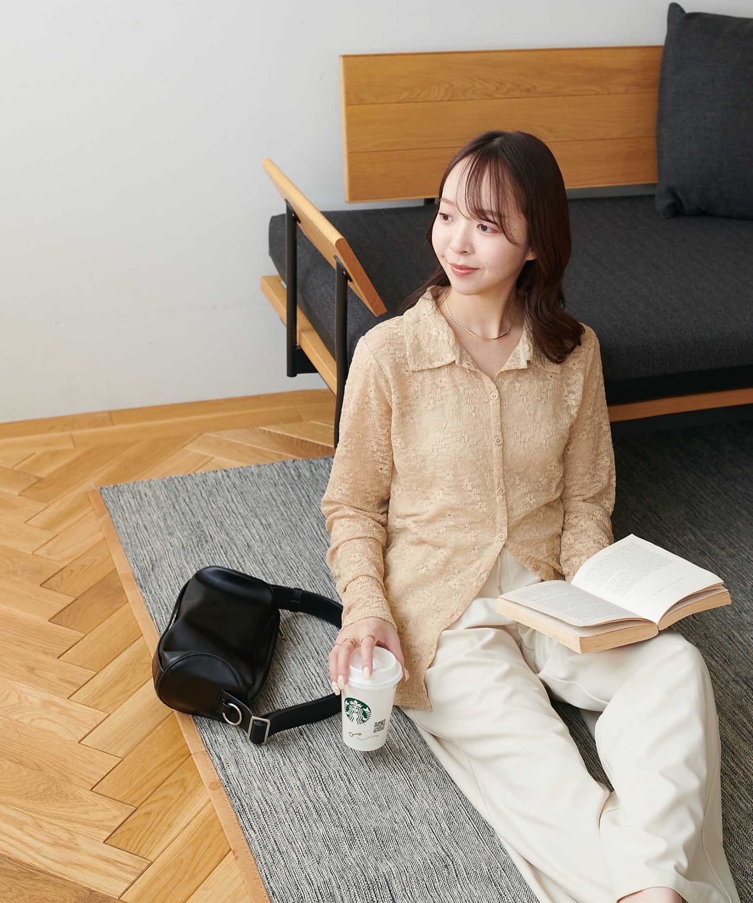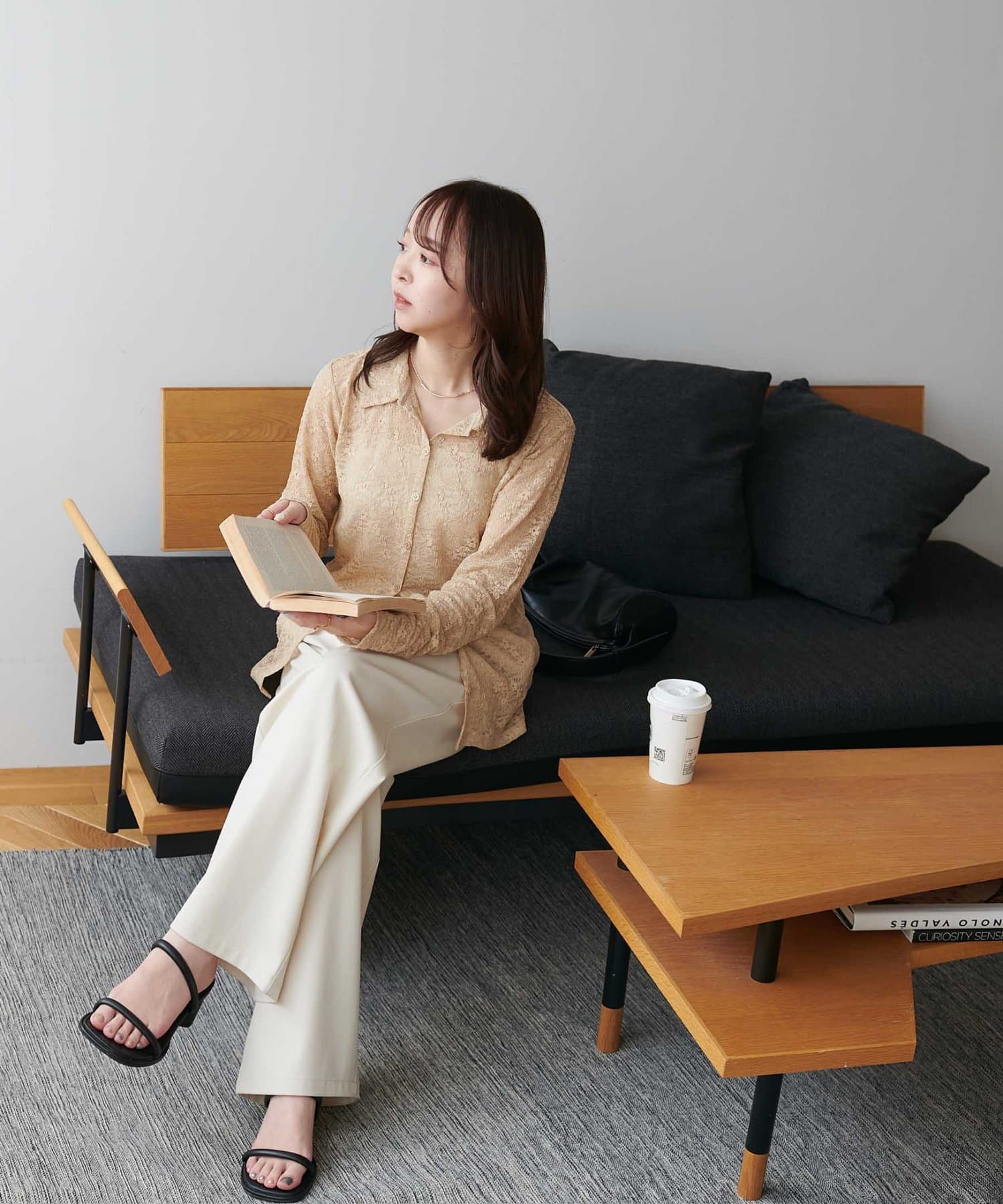 花柄モチーフのレースが女性らしいやわらかな雰囲気を演出し、一枚で華やかなスタイリングが完成します。