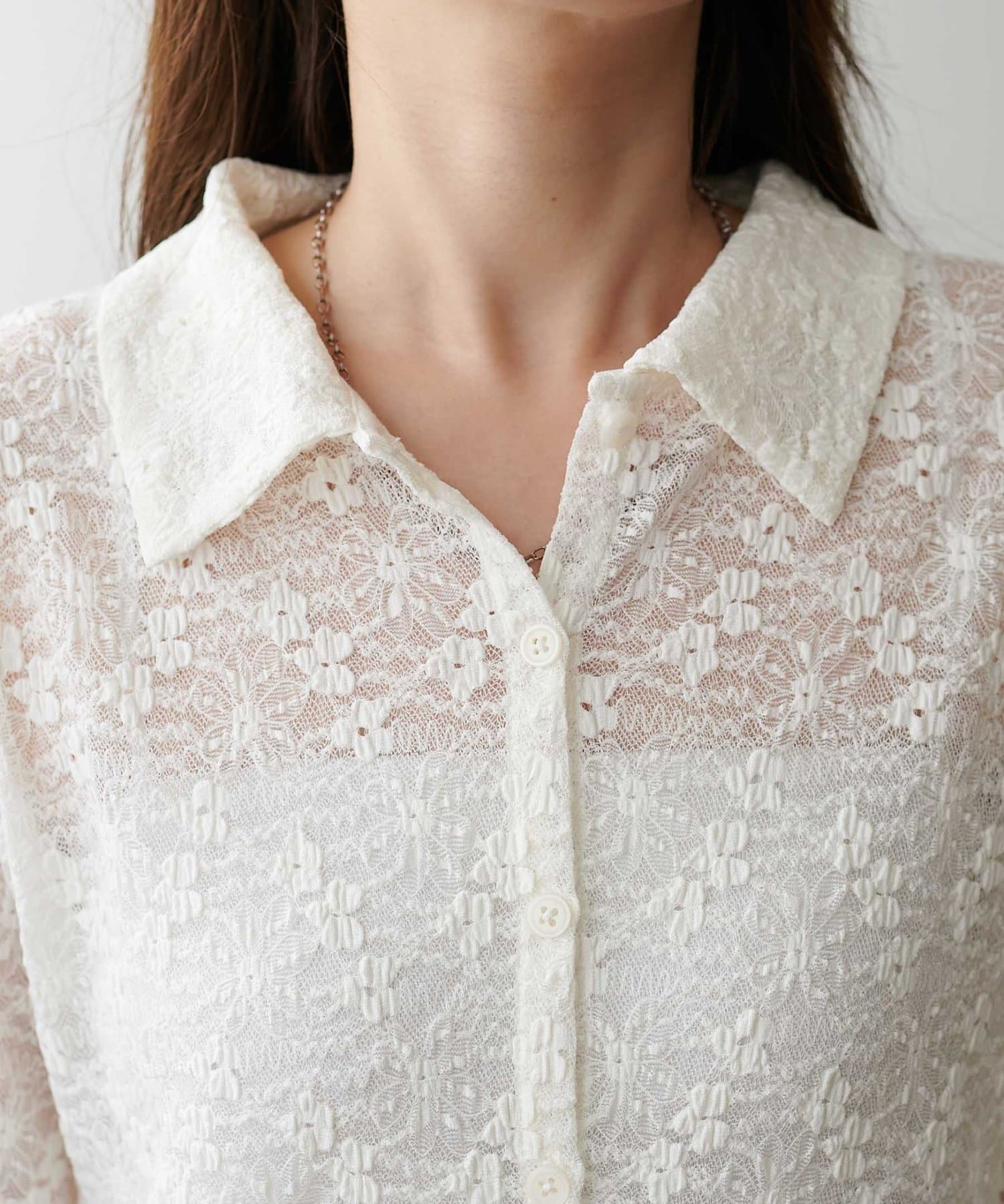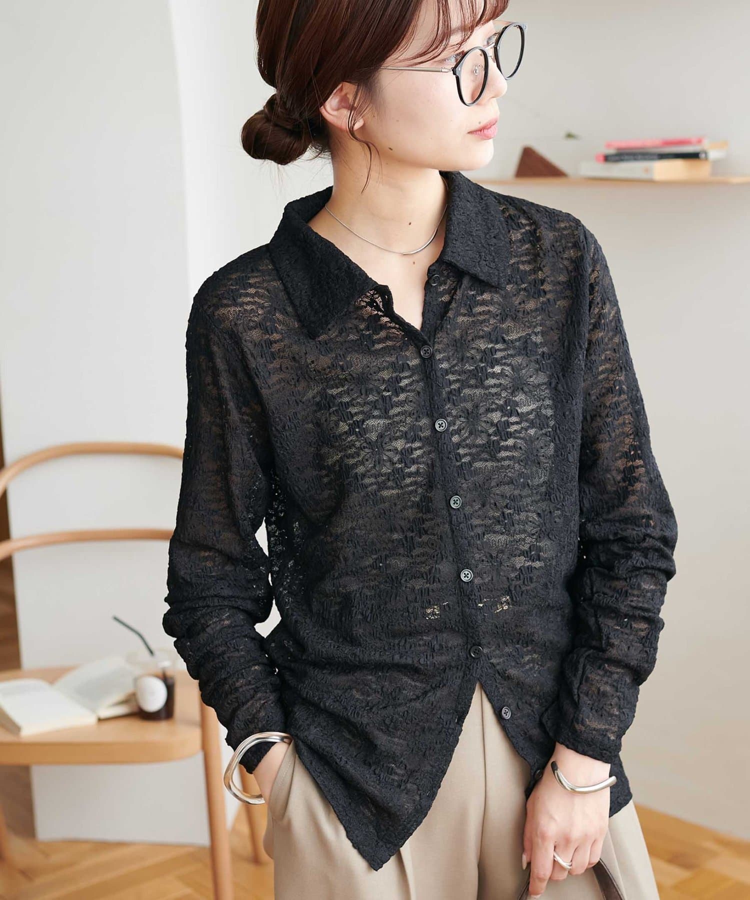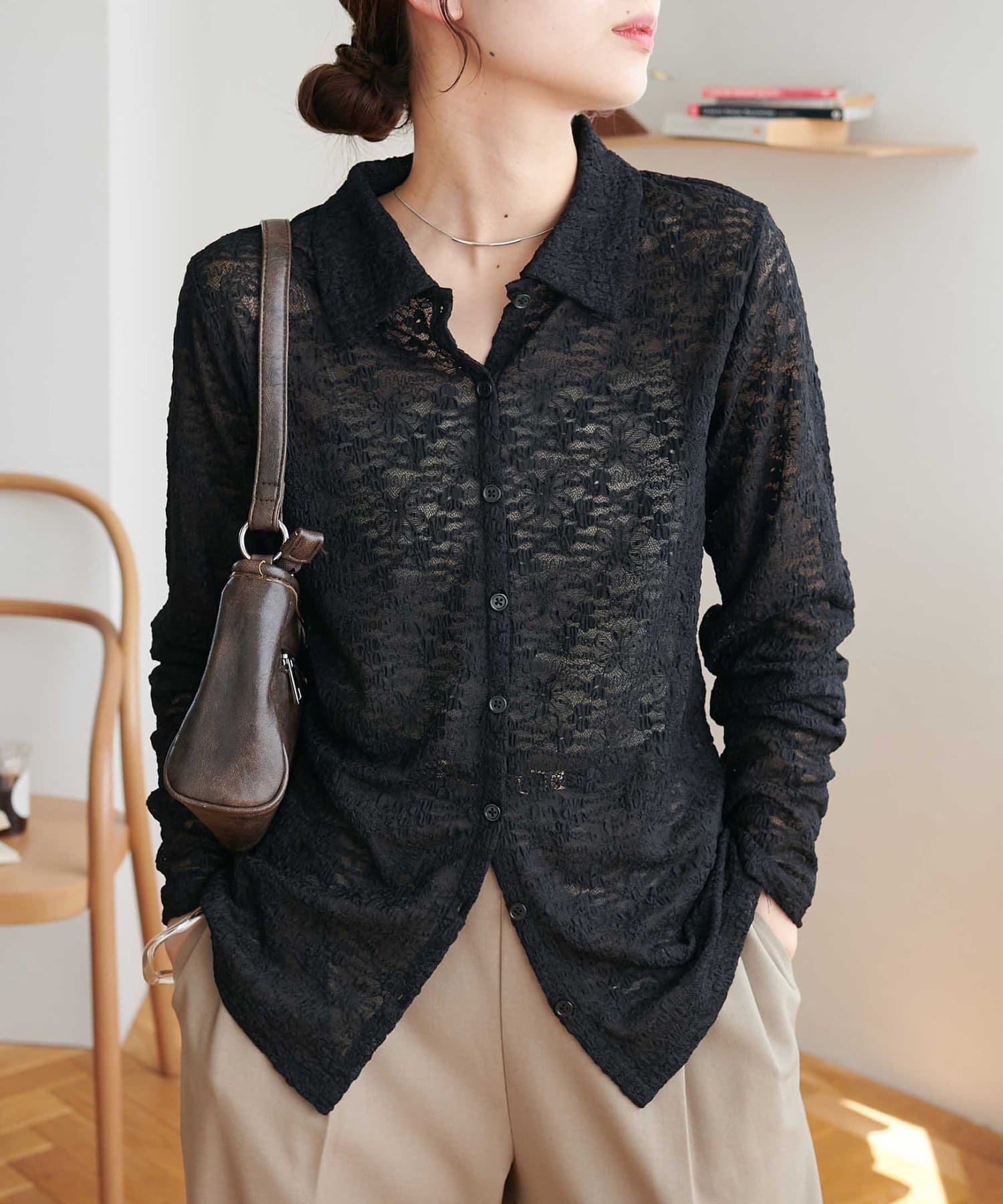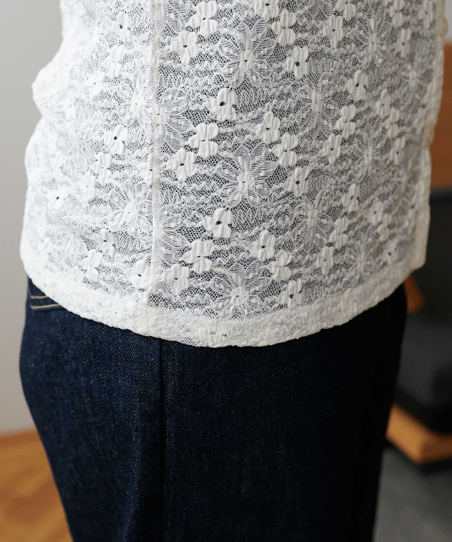 花柄モチーフのレースが女性らしいやわらかな雰囲気を演出し、一枚で華やかなスタイリングが完成します。