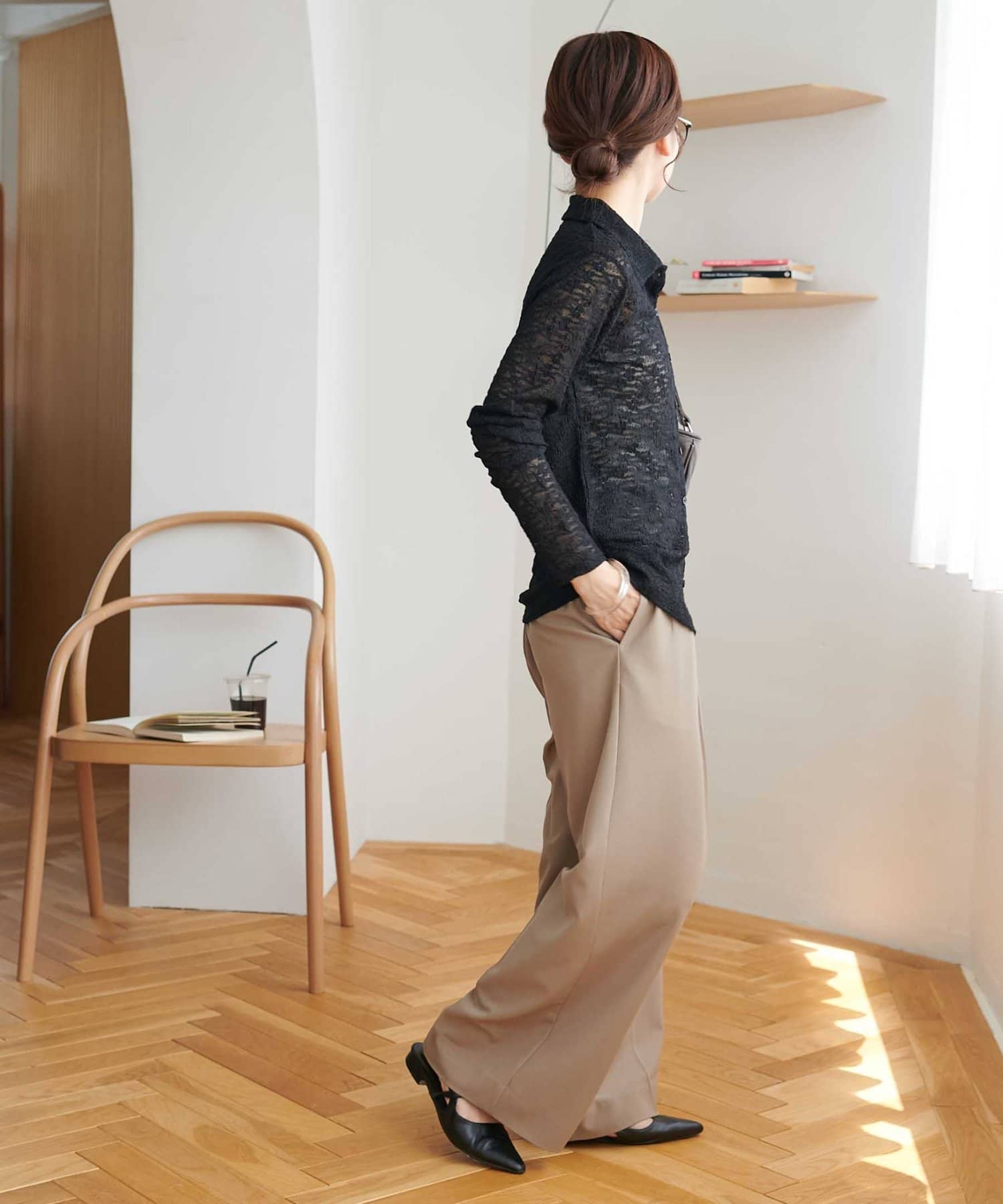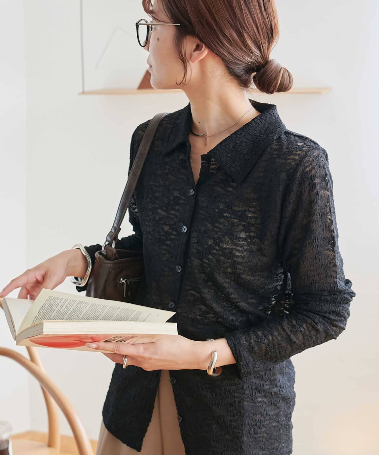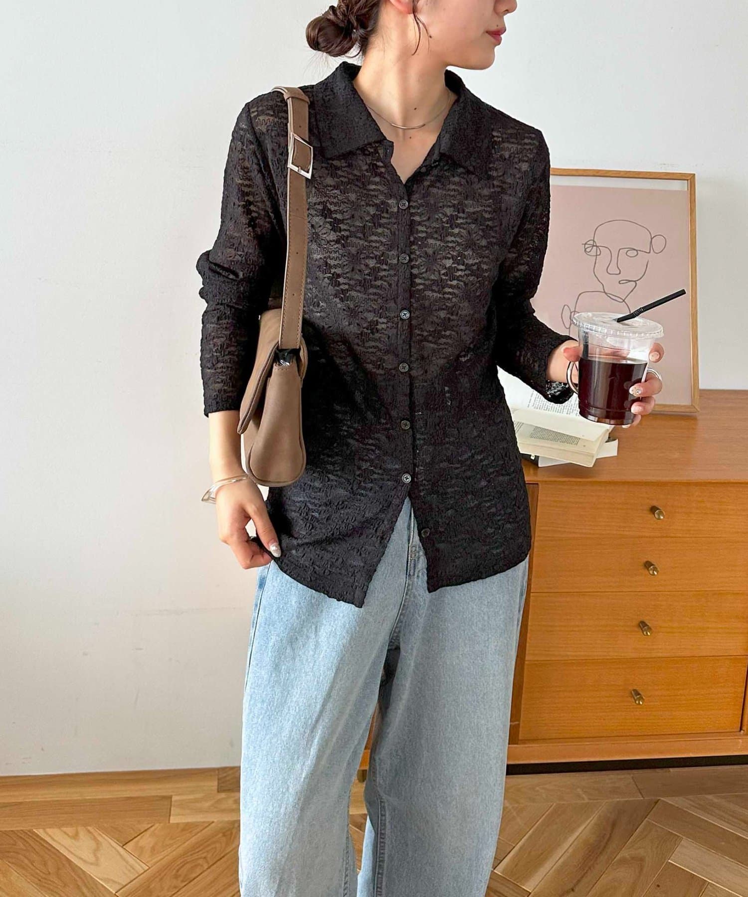 花柄モチーフのレースが女性らしいやわらかな雰囲気を演出し、一枚で華やかなスタイリングが完成します。
