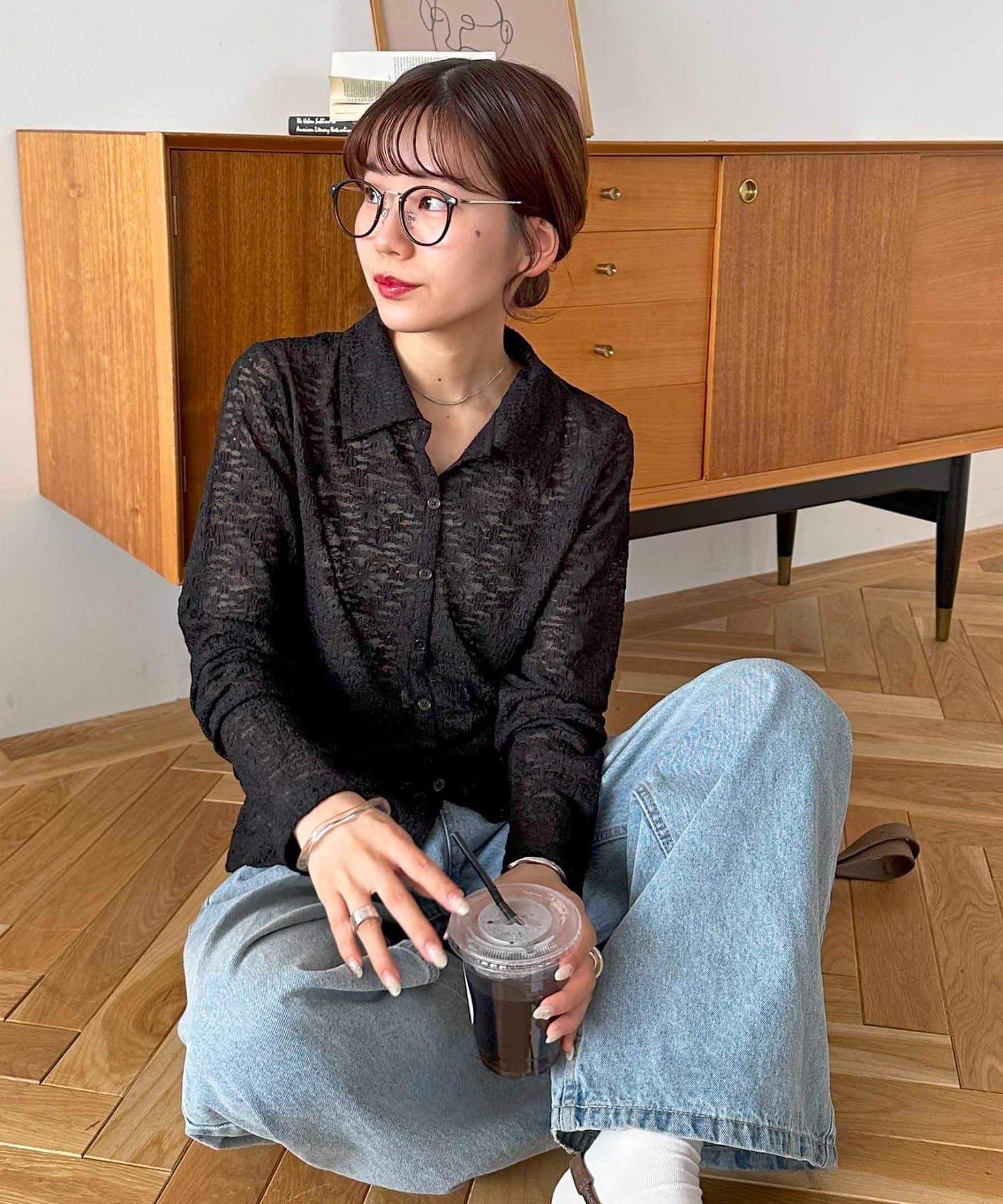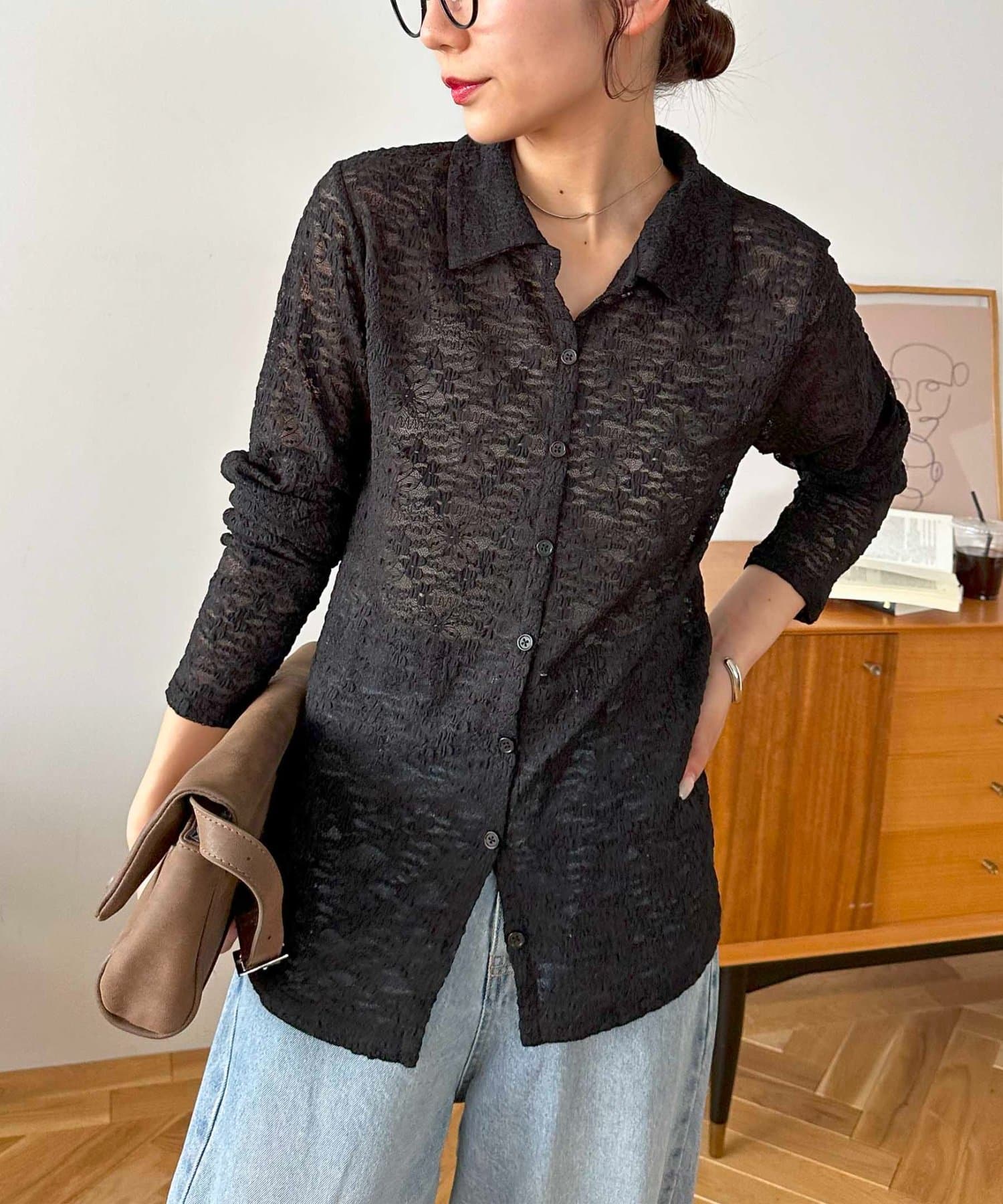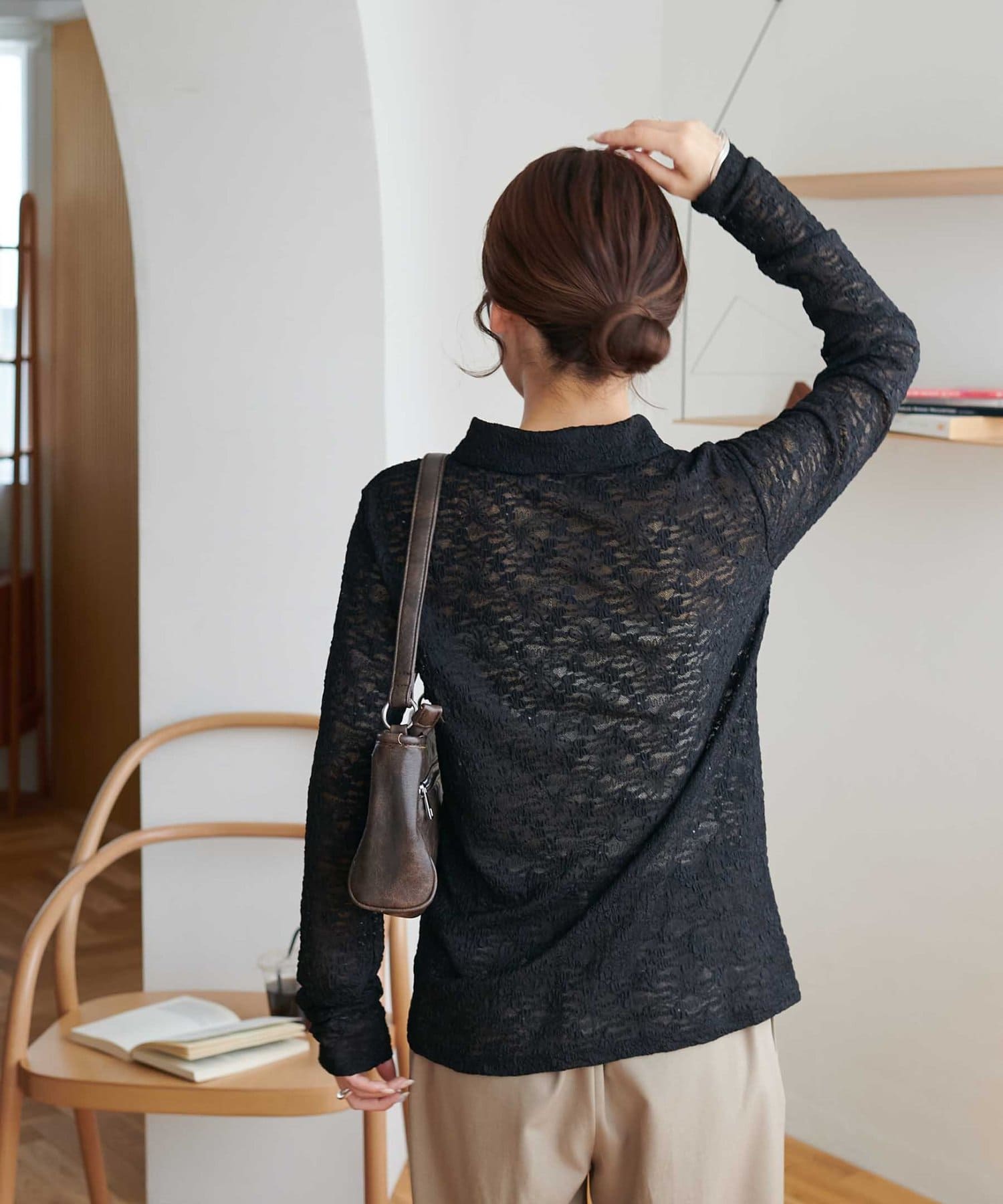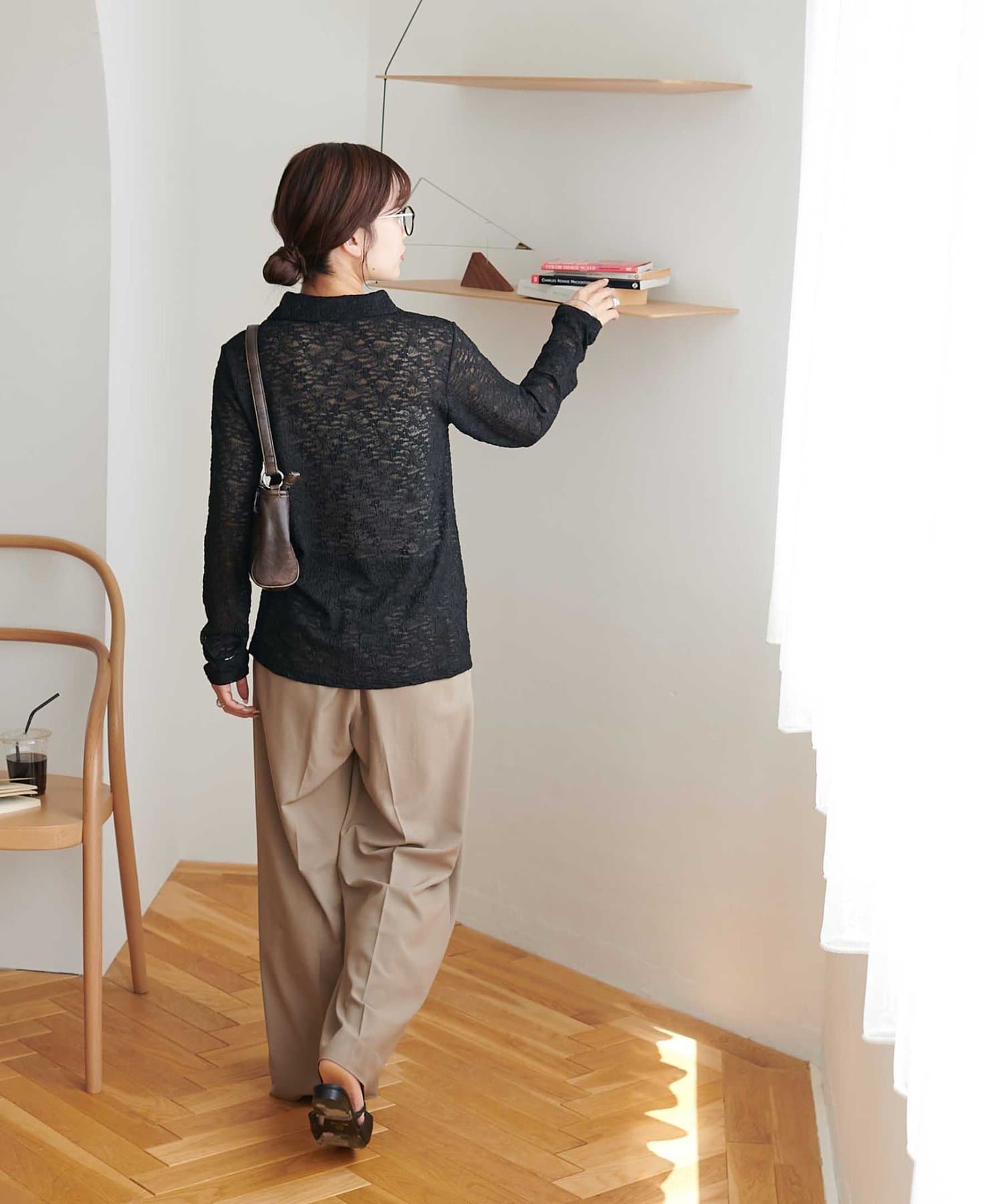 花柄モチーフのレースが女性らしいやわらかな雰囲気を演出し、一枚で華やかなスタイリングが完成します。