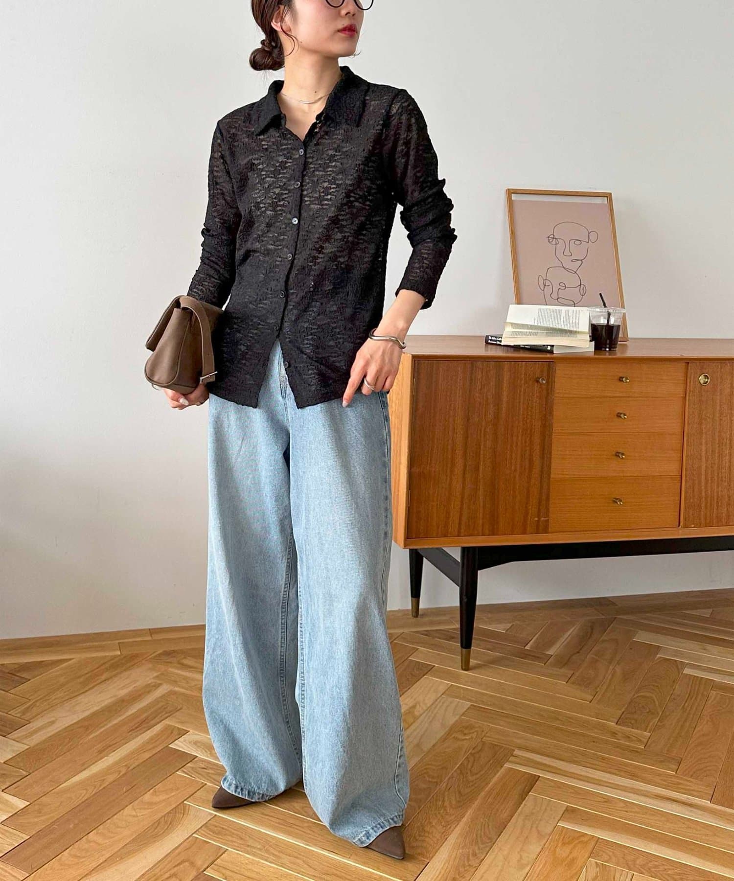 デニムやワイドパンツに合わせてカジュアルダウンすれば、こなれ感ある大人カジュアルスタイルに。