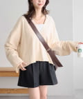 Vネックデザインなので、顔回りがスッキリとした印象になり、アクセサリー合わせも映えます〇