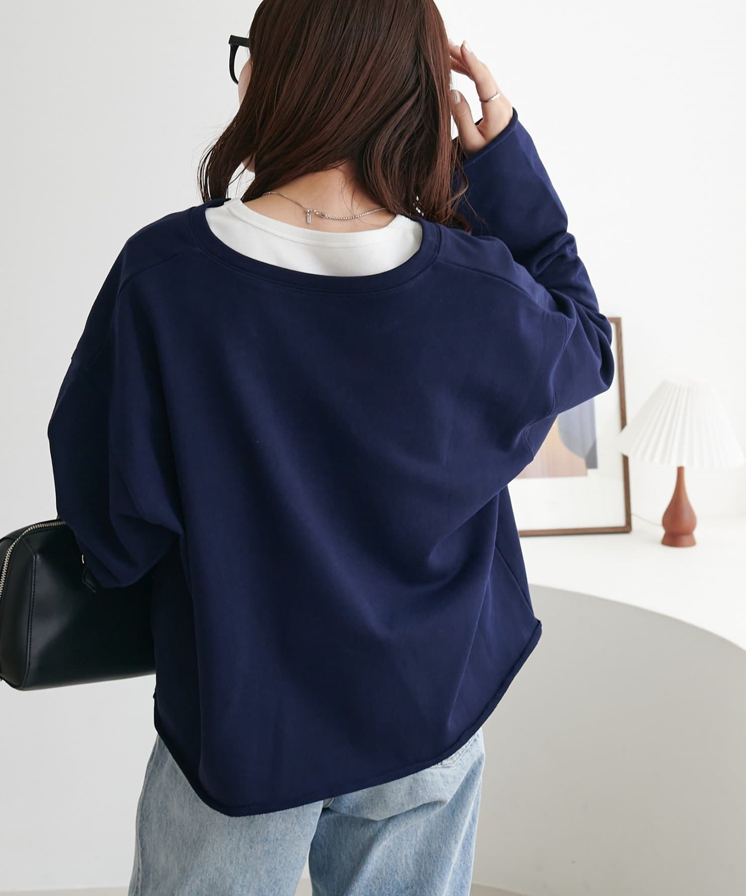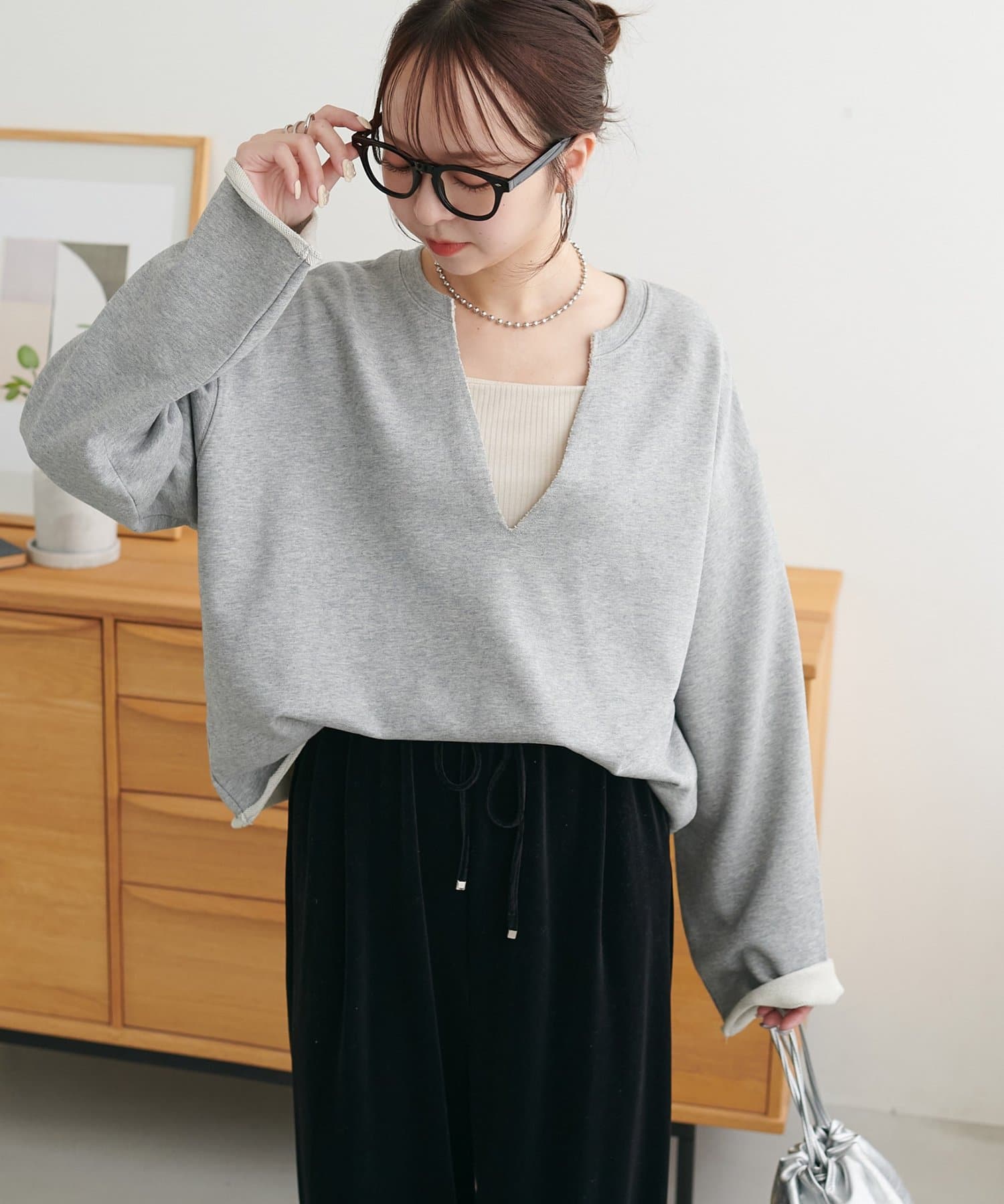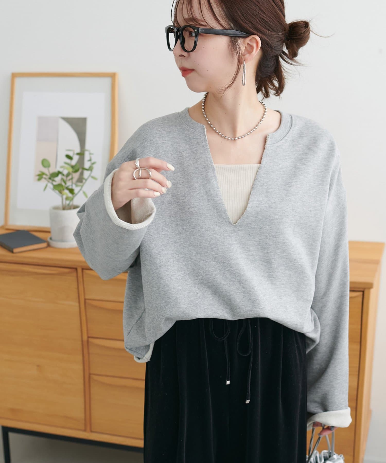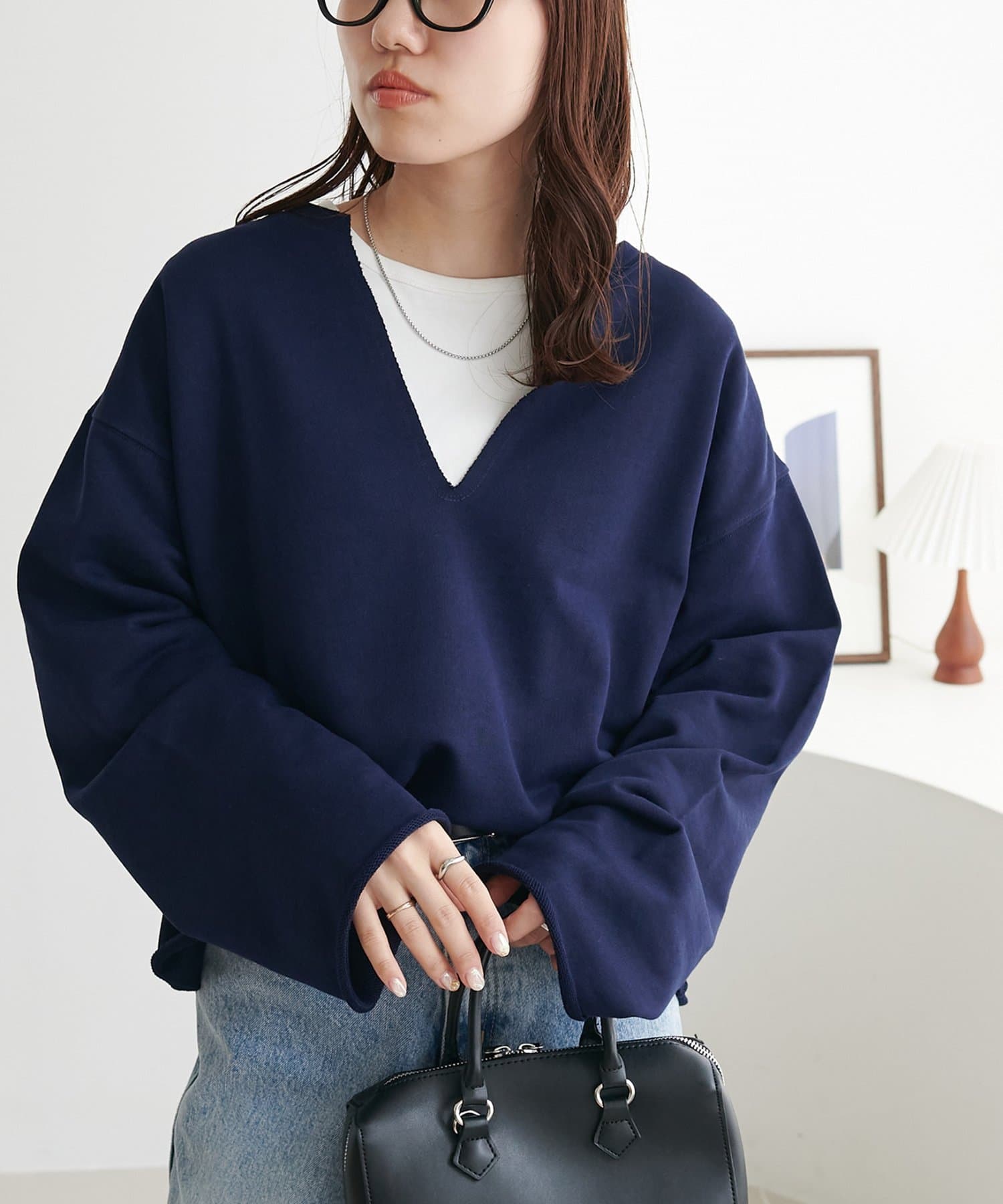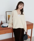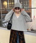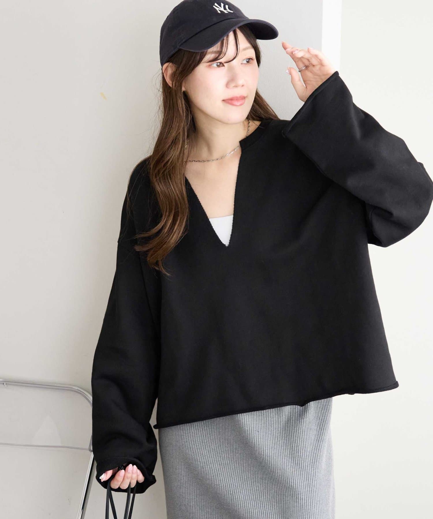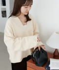 Vネックデザインなので、顔回りがスッキリとした印象になり、アクセサリー合わせも映えます〇