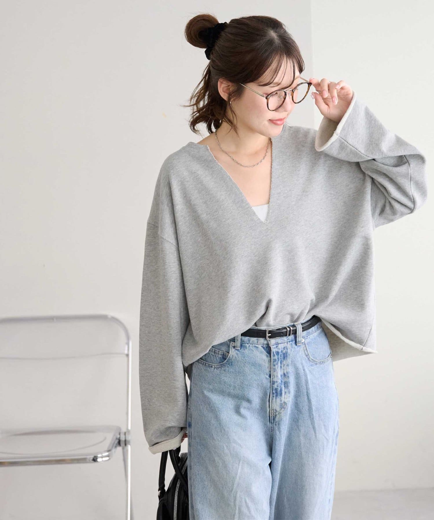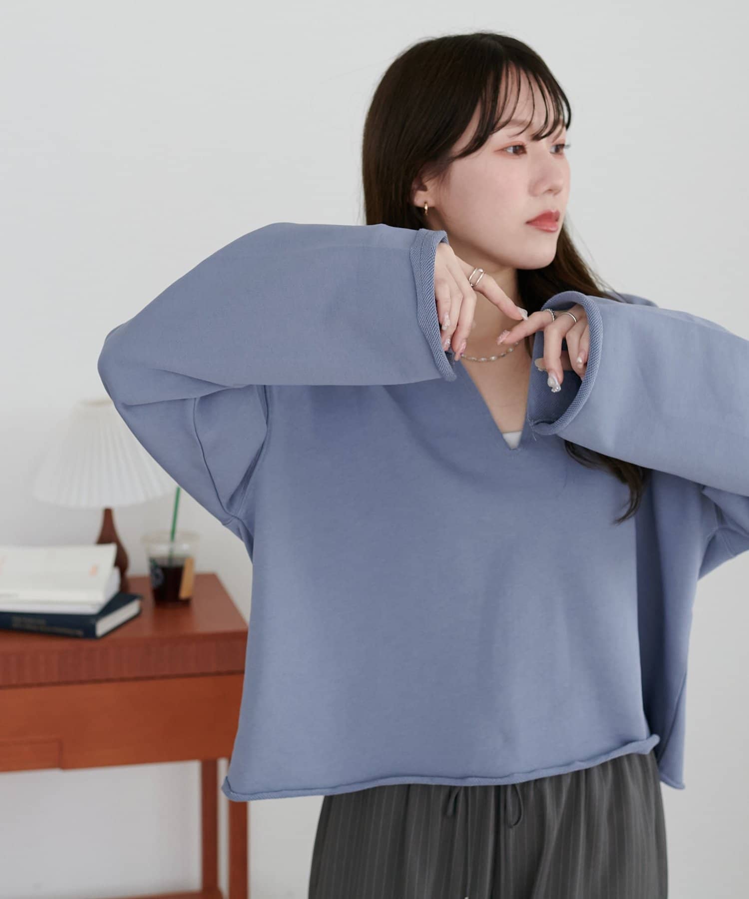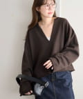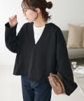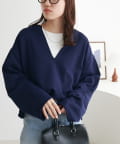 【顔回りすっきり!】裏毛深Vネックプルオーバー