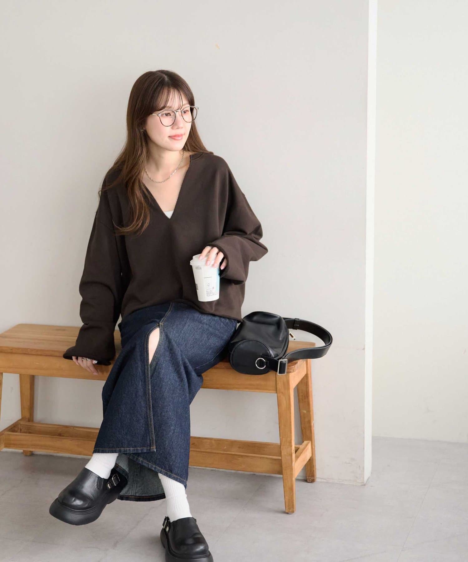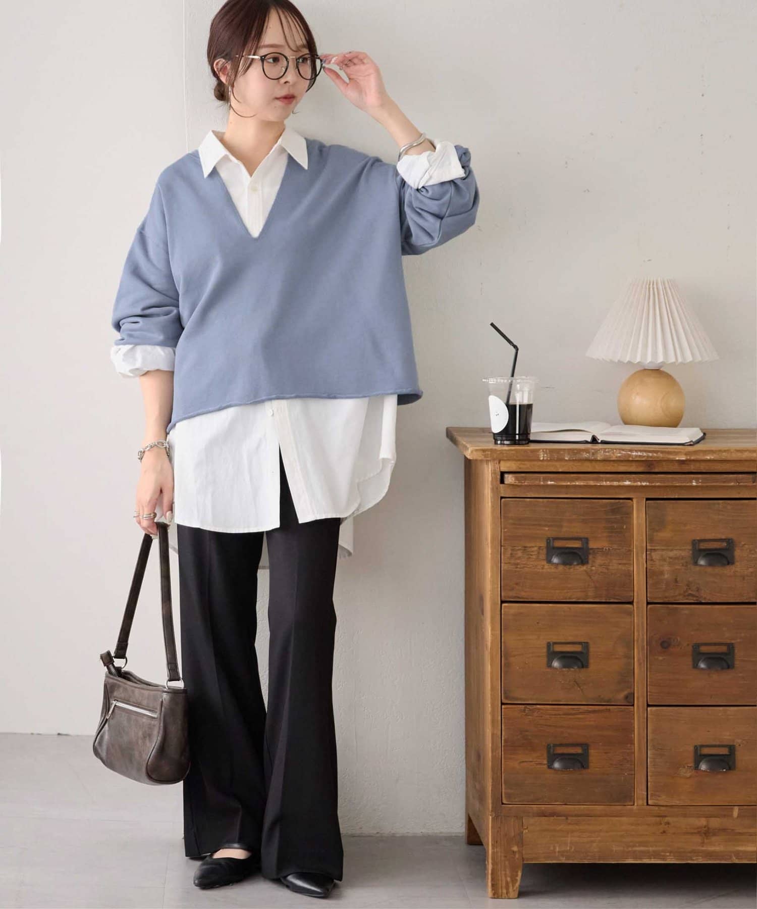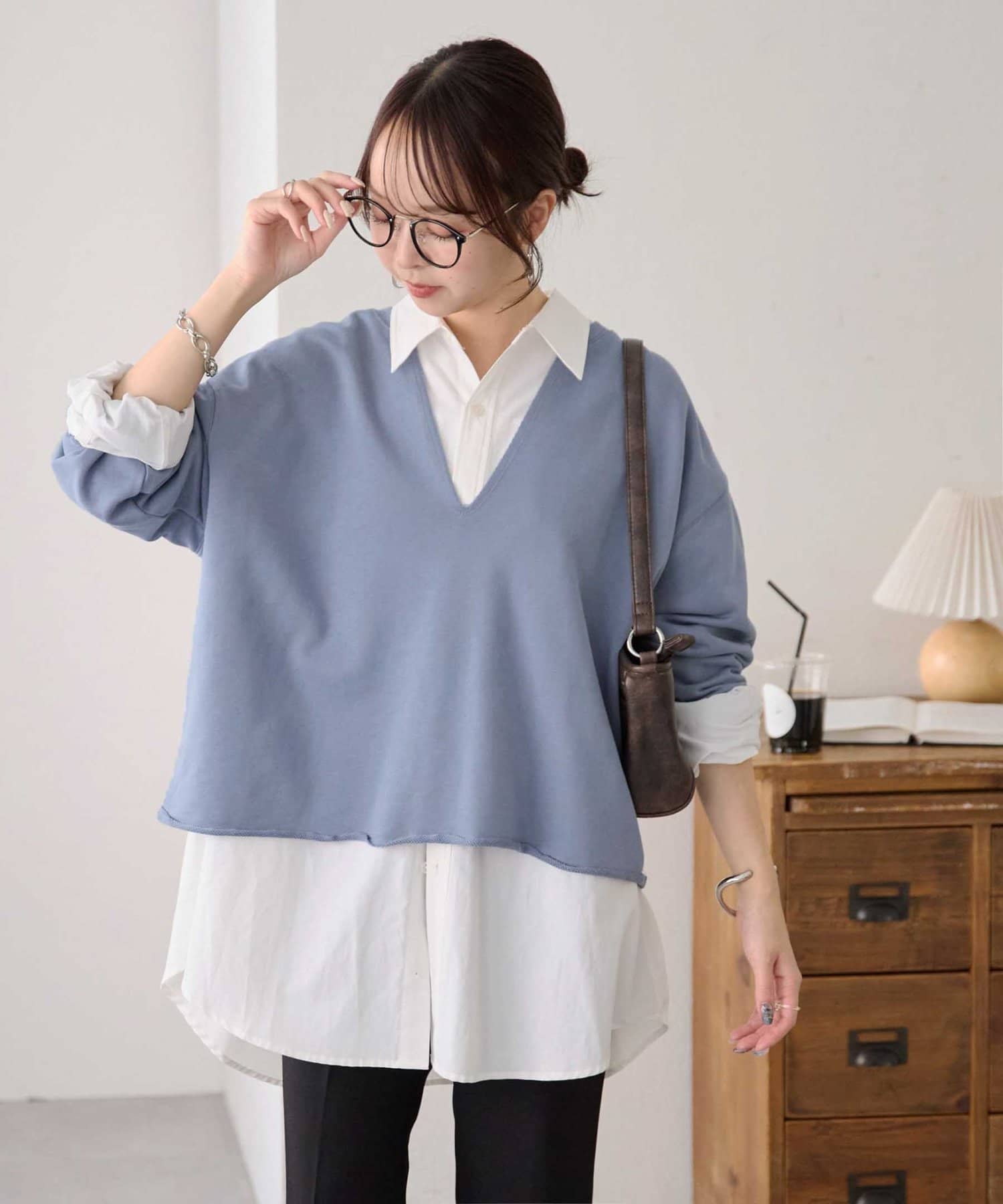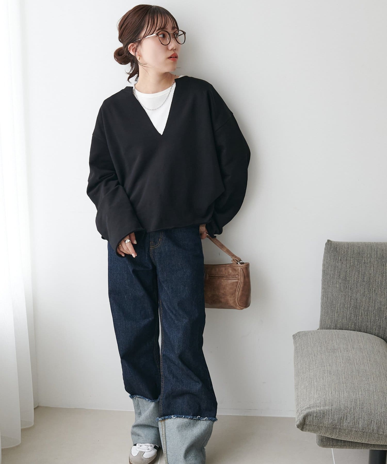160cmスタッフ:Vネックが深めなので、Tシャツやシャツ、タートルトップスなどを中に着て、レイヤードスタイルも楽しめます♪