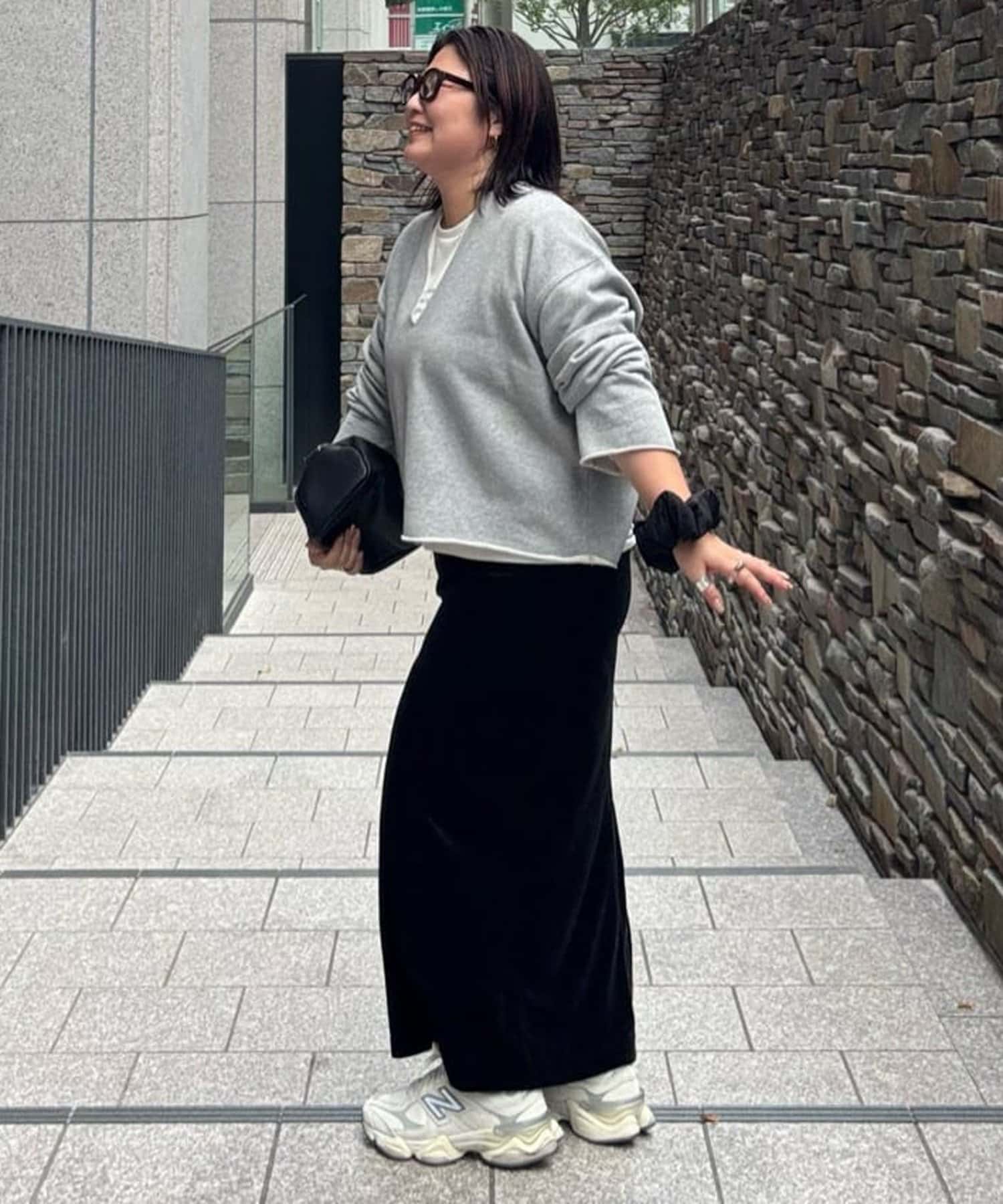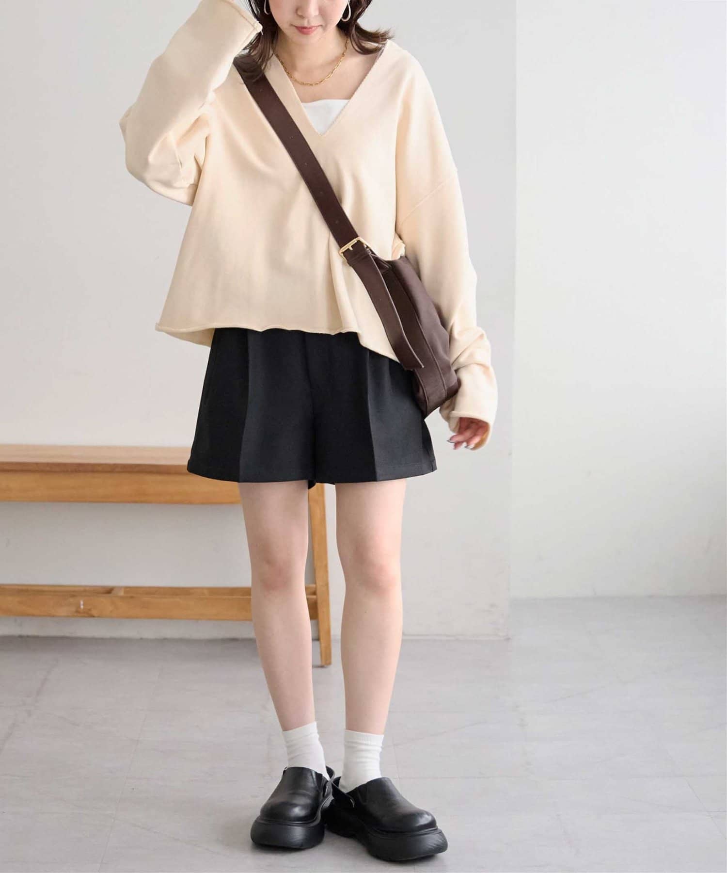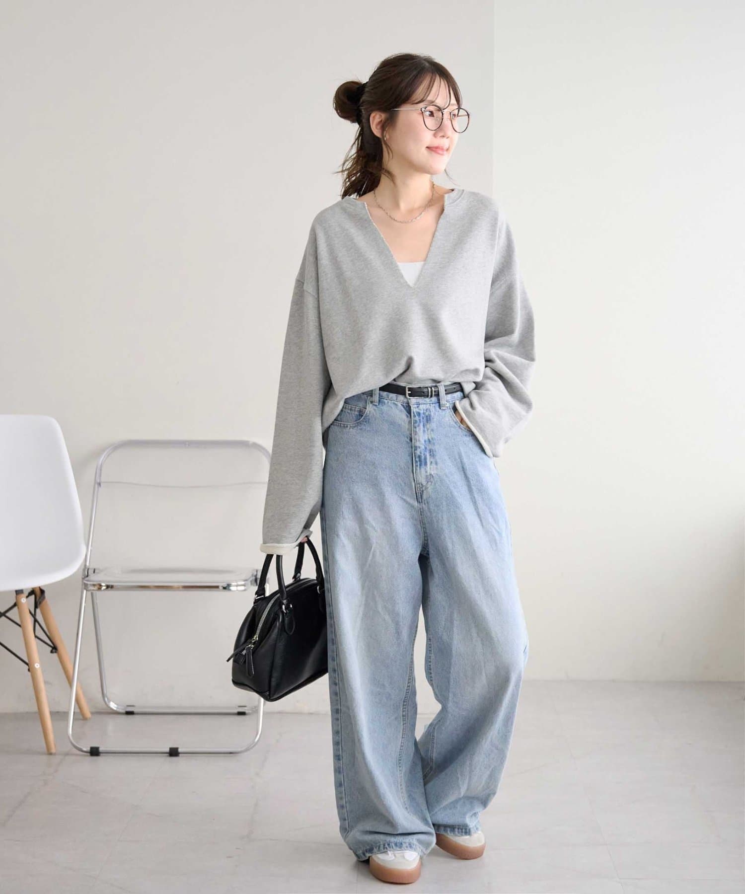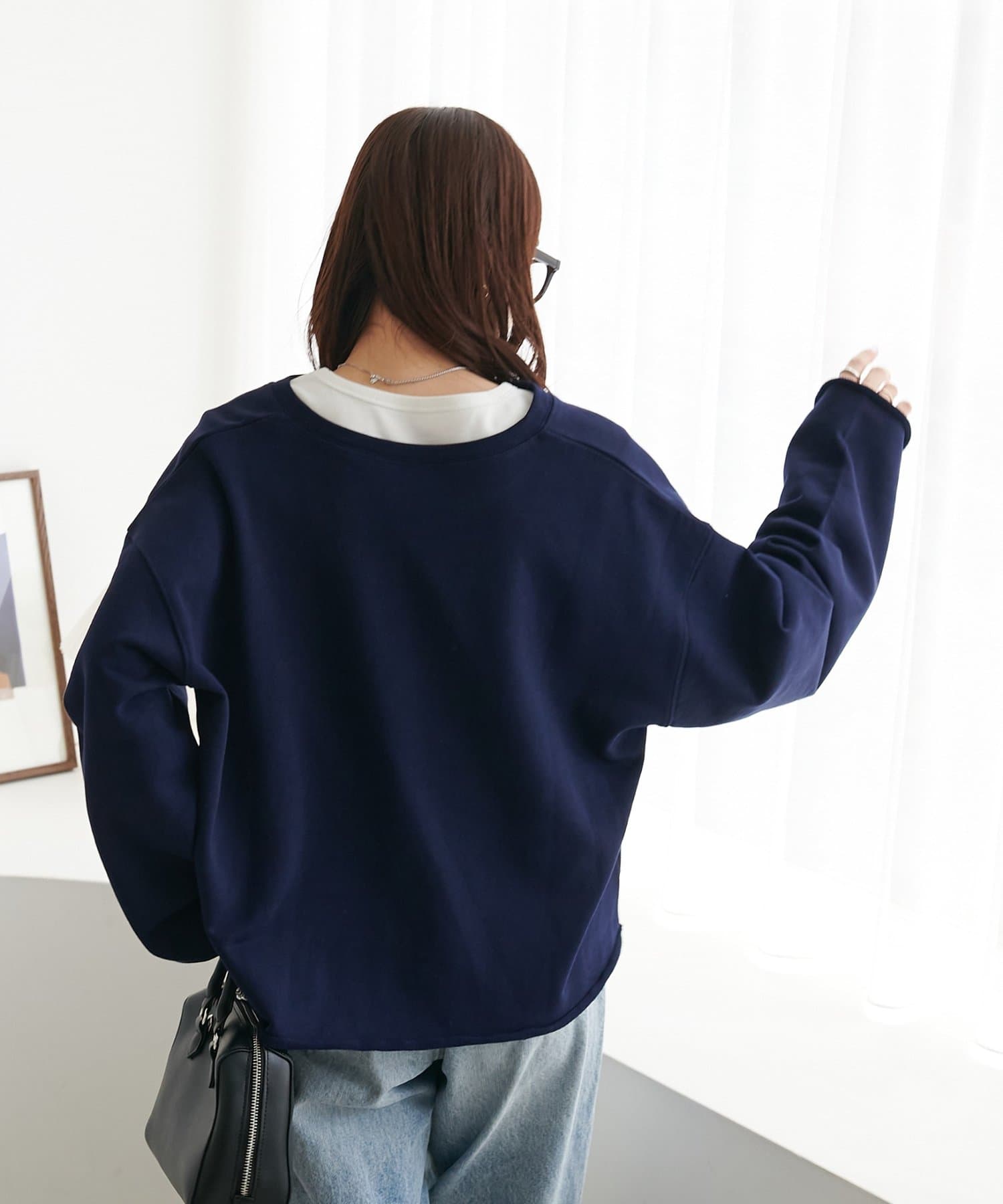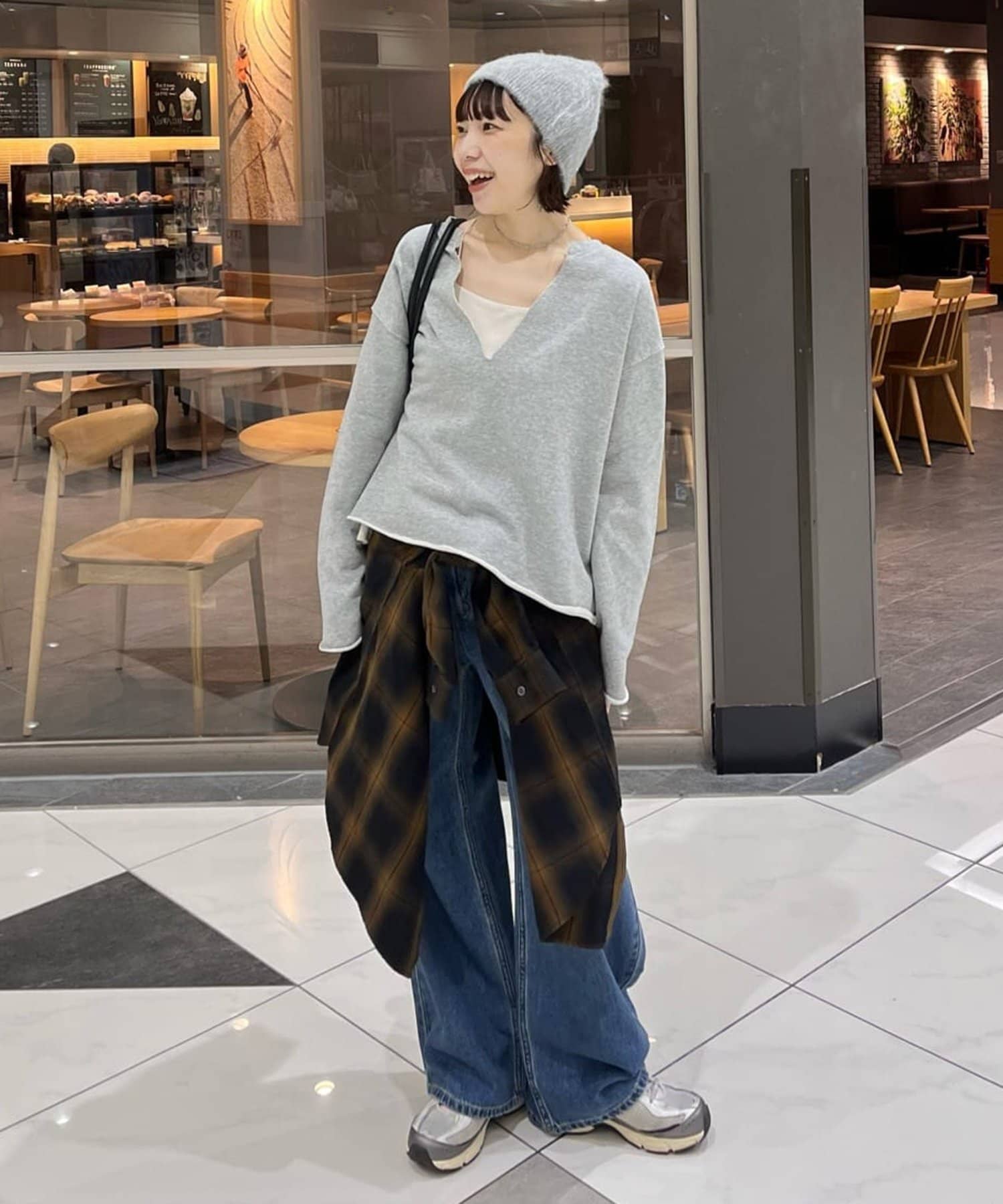 157cmスタッフ:ゆったりとした身幅ですが、着丈はコンパクトなので、バランスが取りやすいです!