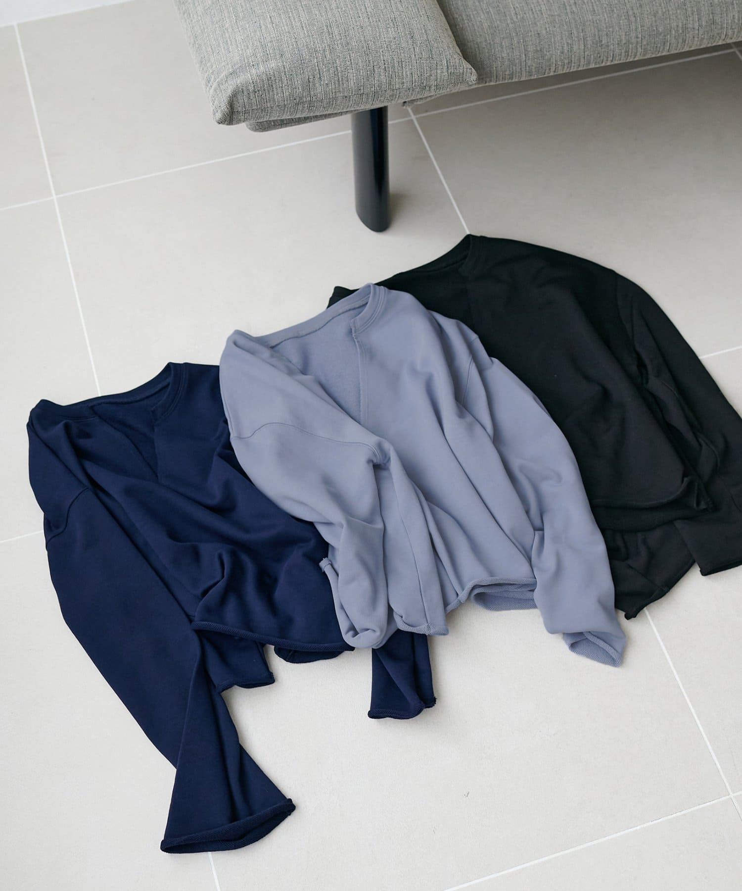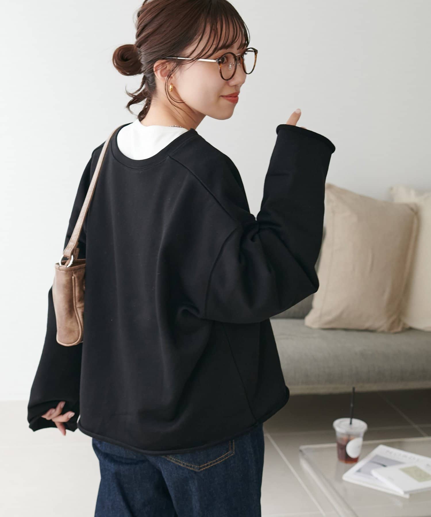 袖口と裾の切りっぱなしのデザインが、こなれ感をプラスします◎