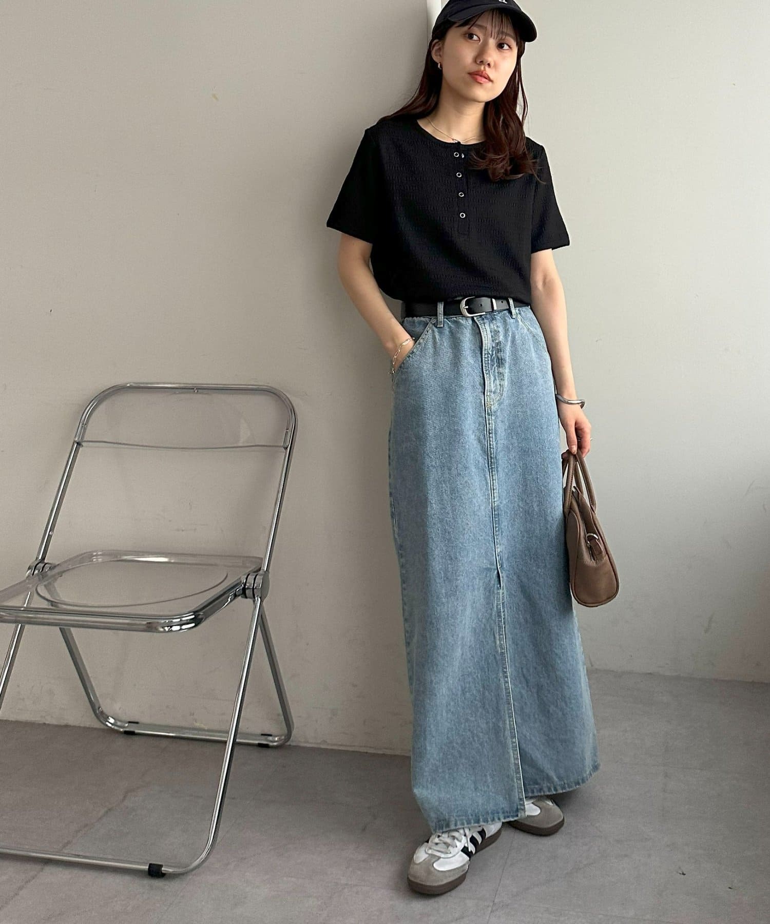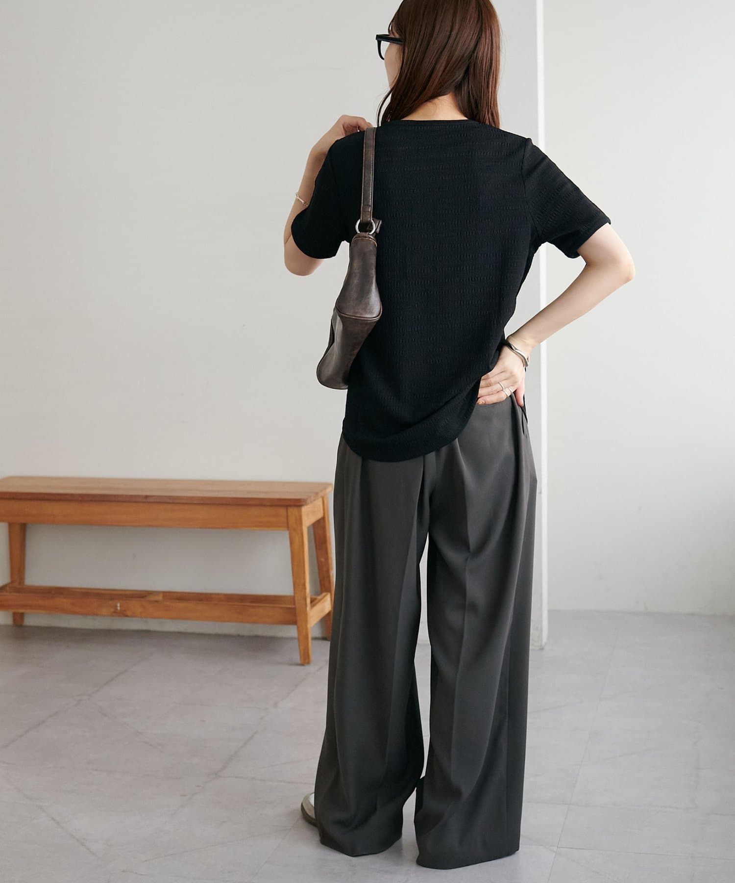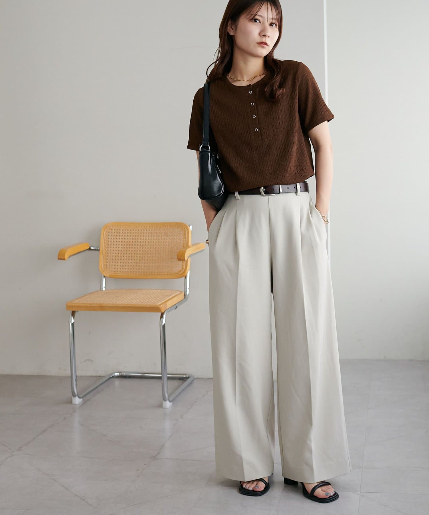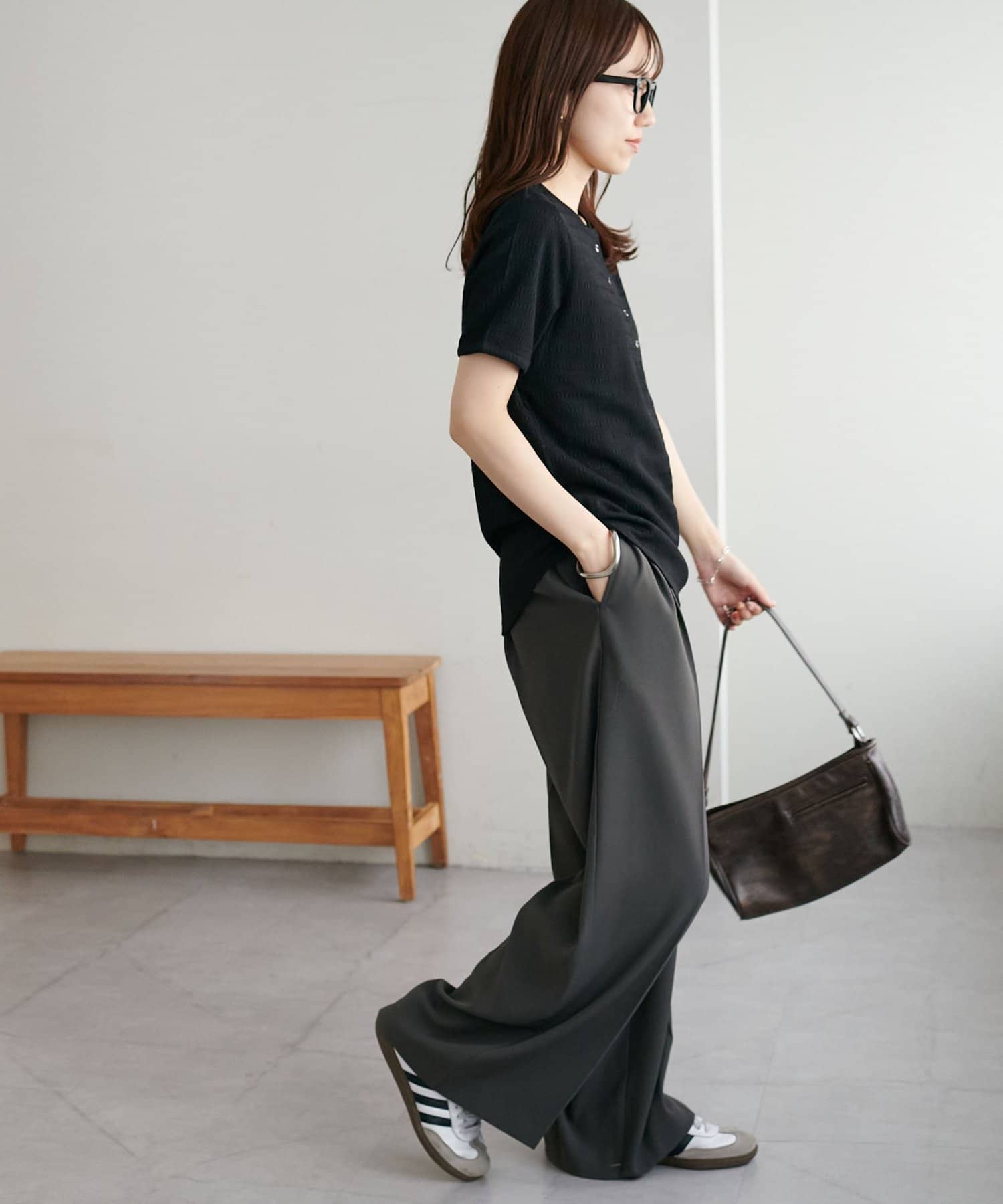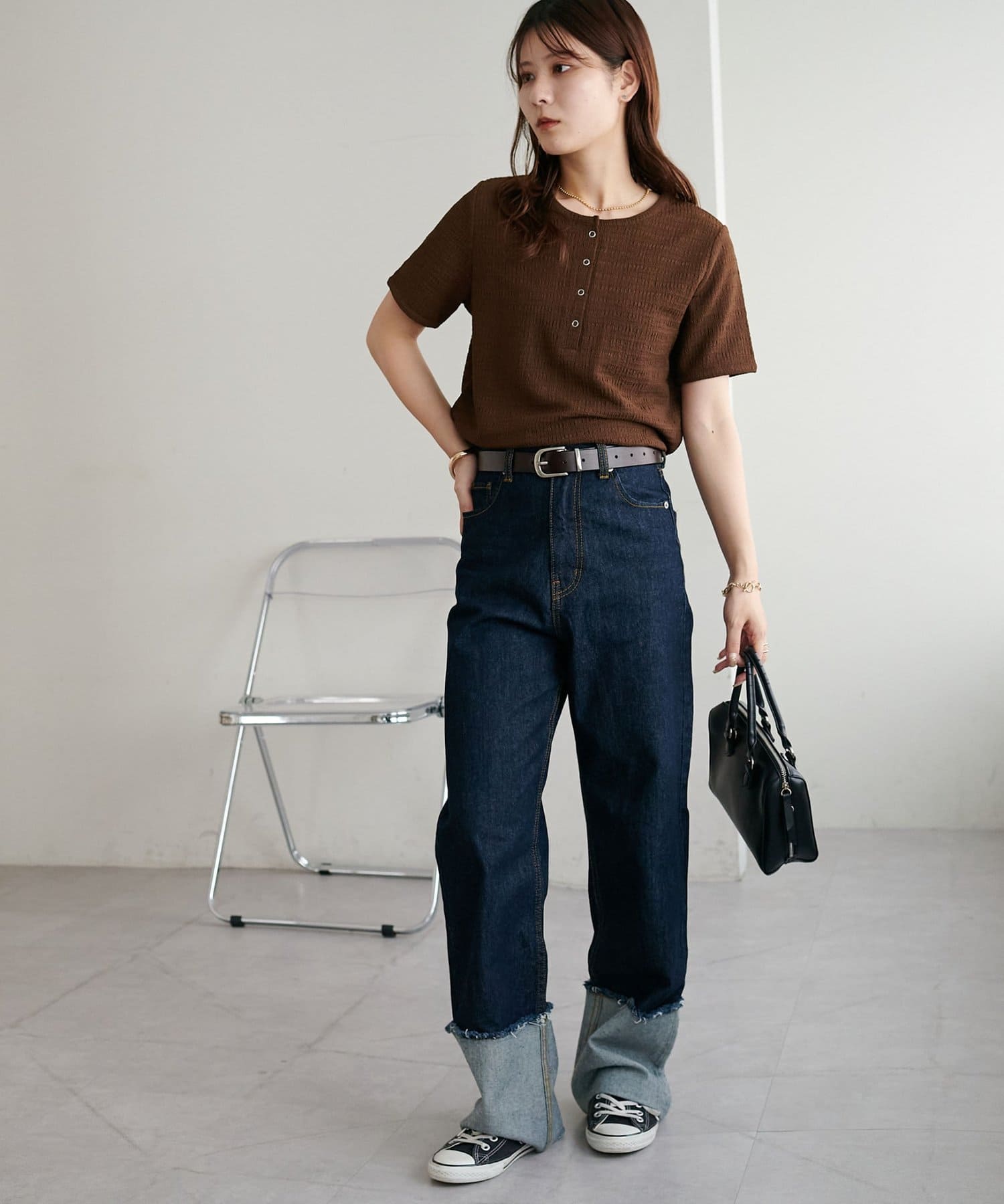 ・デニムやワイドパンツ、タックパンツなどボトムを選ばず着回し力◎