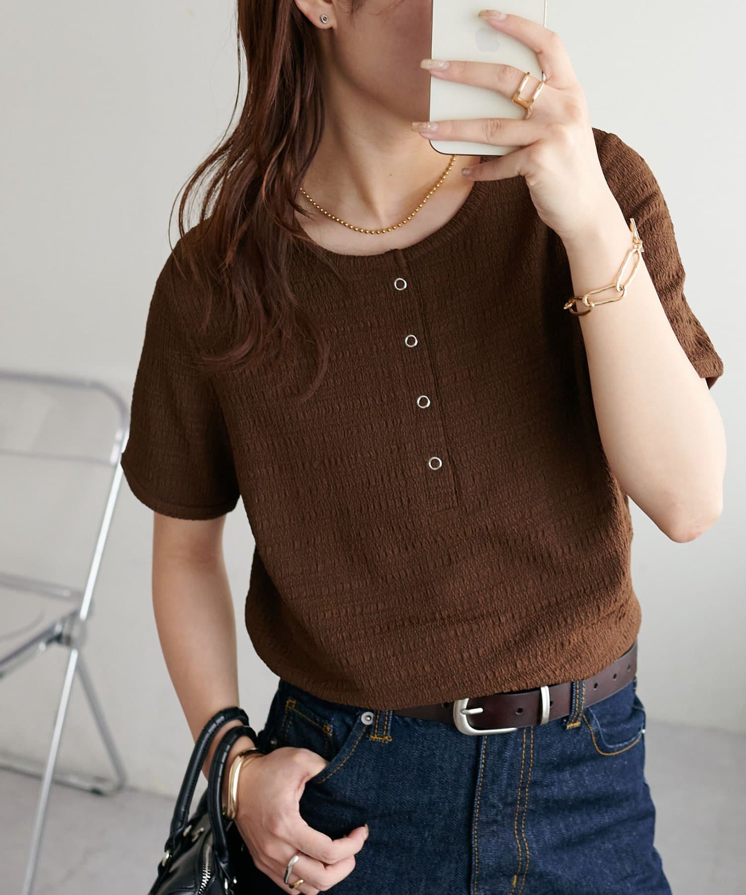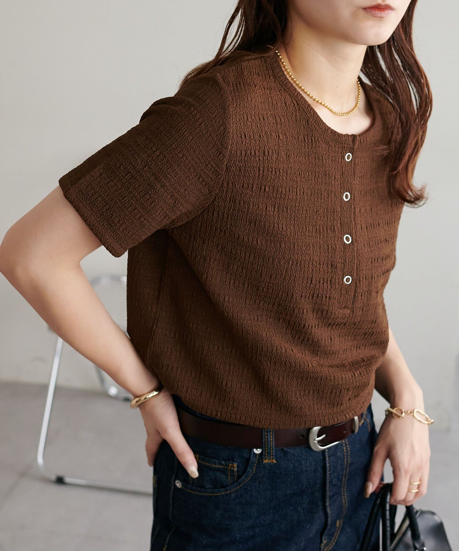 ・凹凸感のあるカットジャガード素材でナチュラルな雰囲気