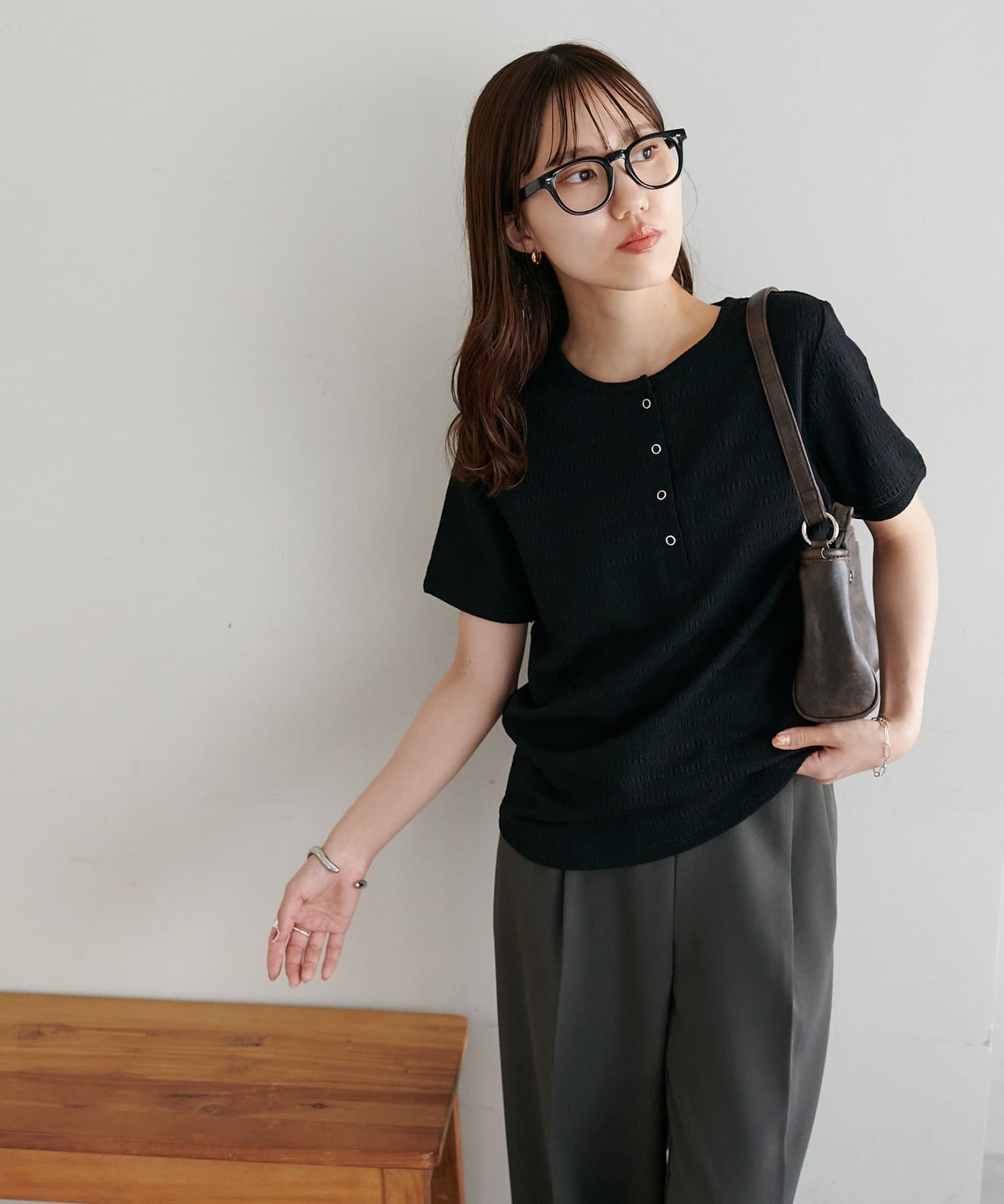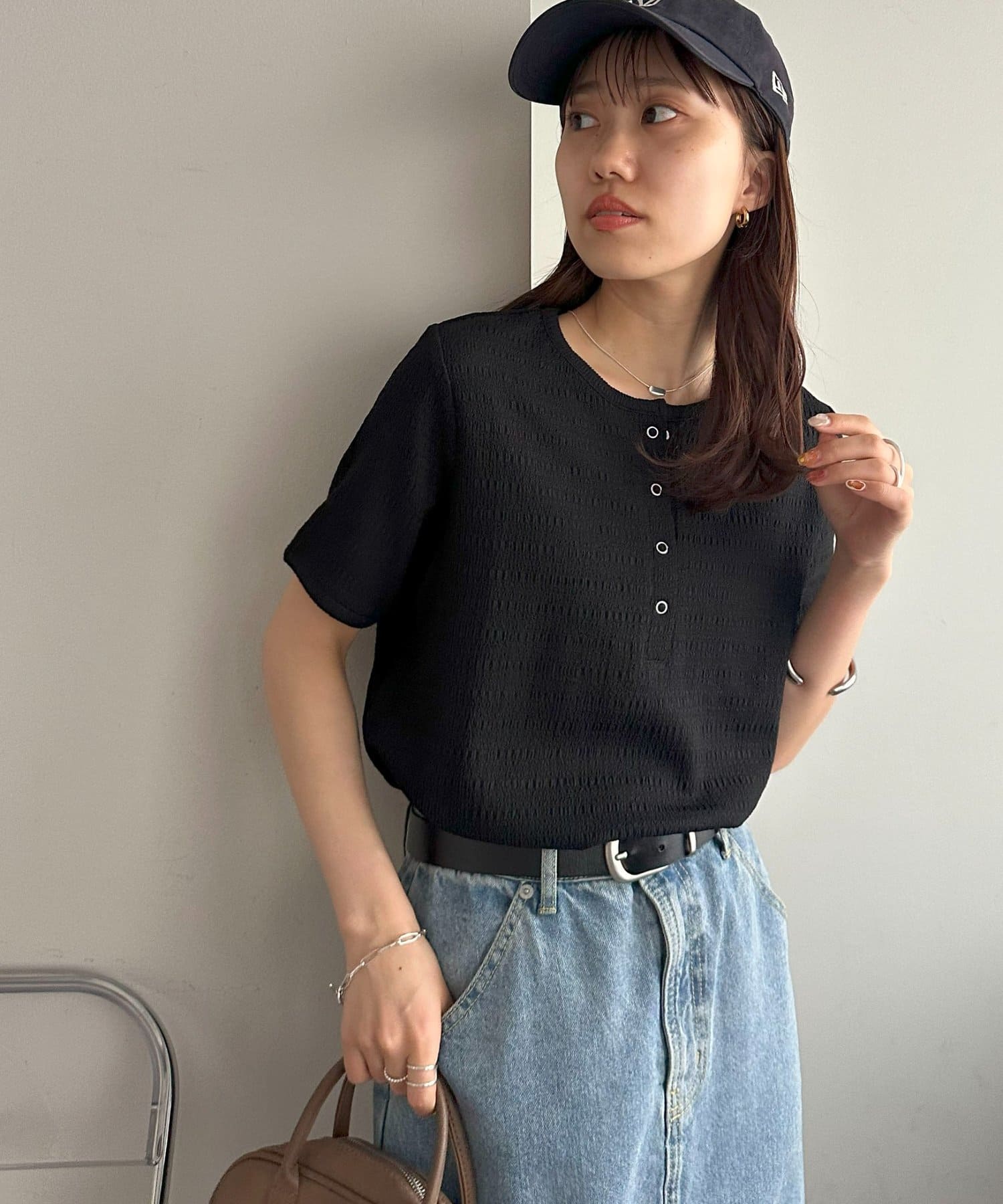 162cmスタッフ:ボタンを少し開けて抜け感を出したり、重ね着のインナーとして使うのもおすすめです。落ち着いたカラー展開なので、オンオフ問わず活躍してくれそうです。