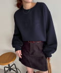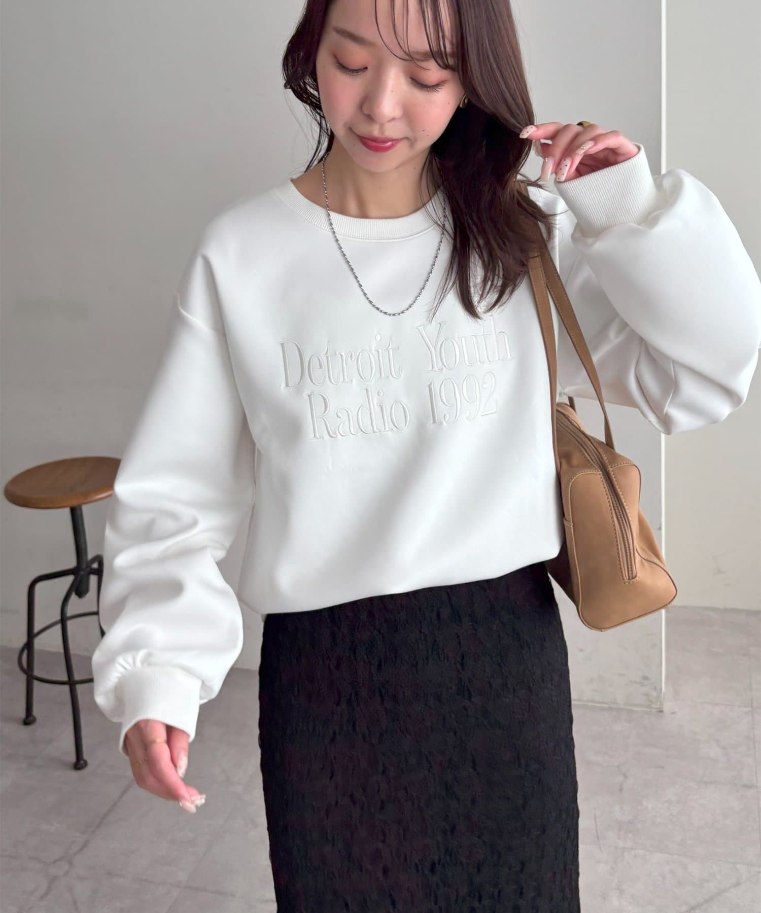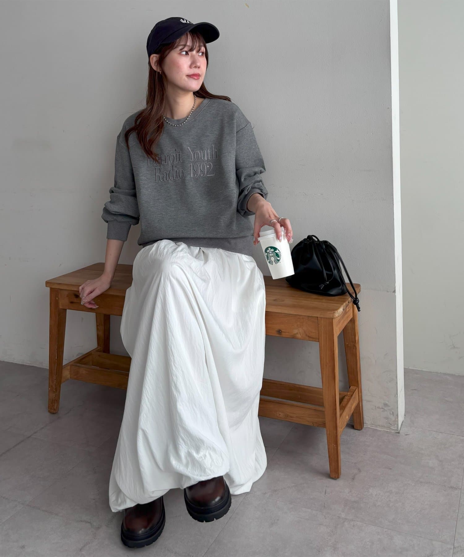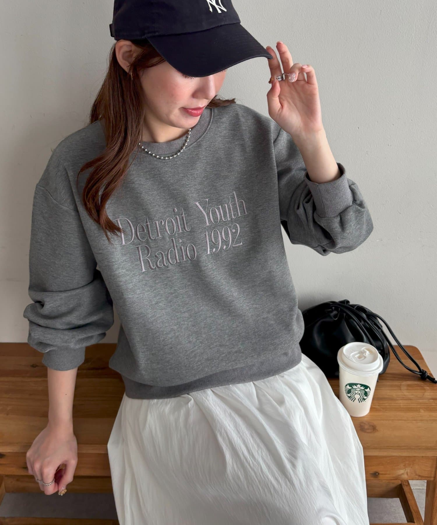 体のラインを拾いすぎない、体型カバーが叶うロゴプルオーバー