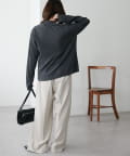 リラックス感のあるストレートシルエットで、体のラインを拾いにくく、自然な落ち感が女性らしい印象を与えます。