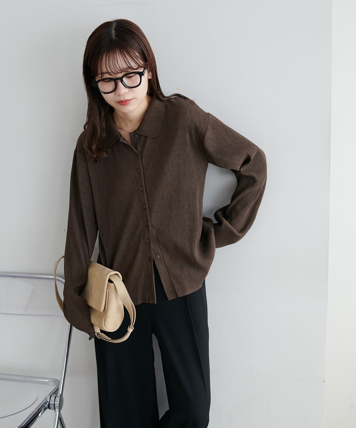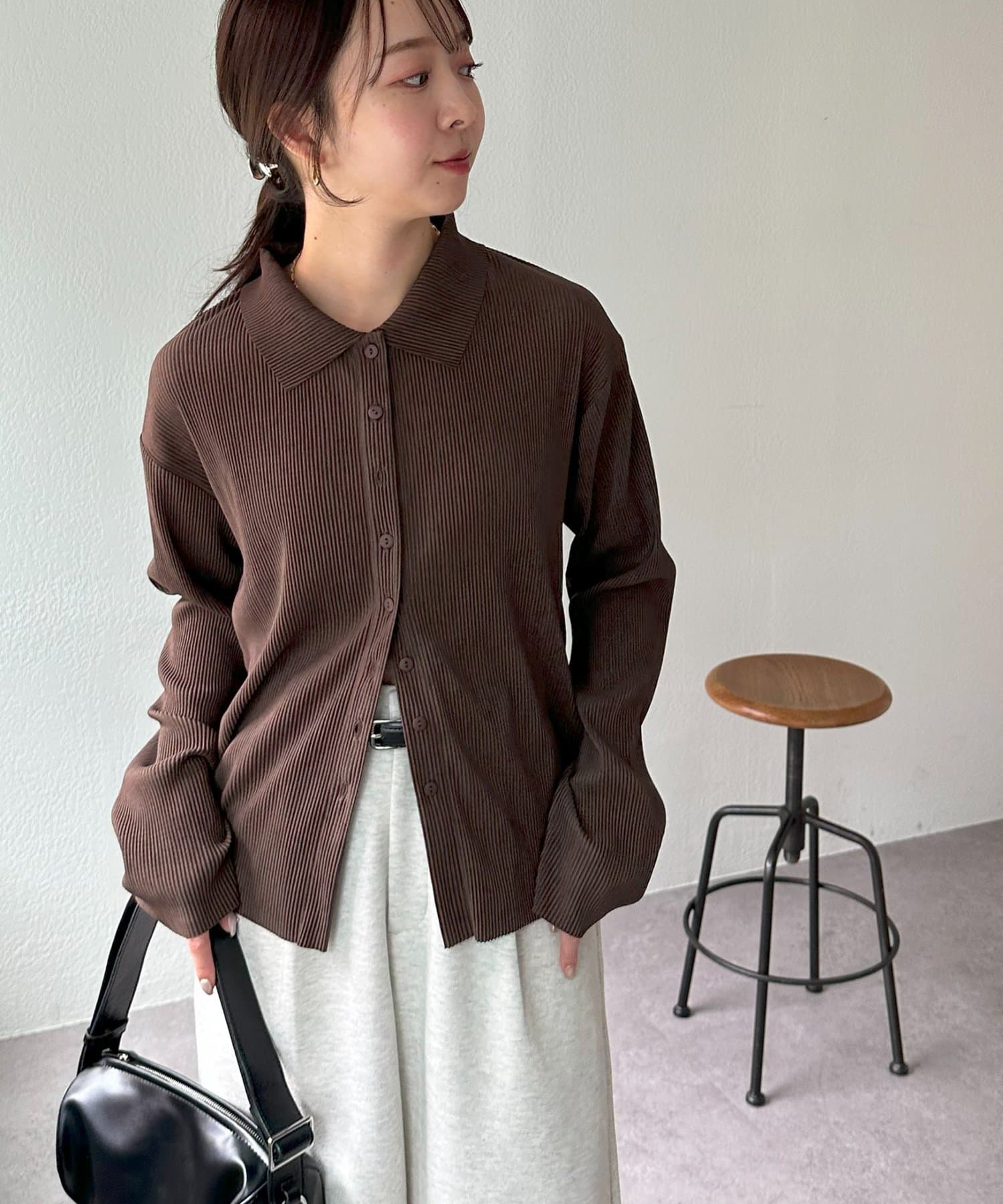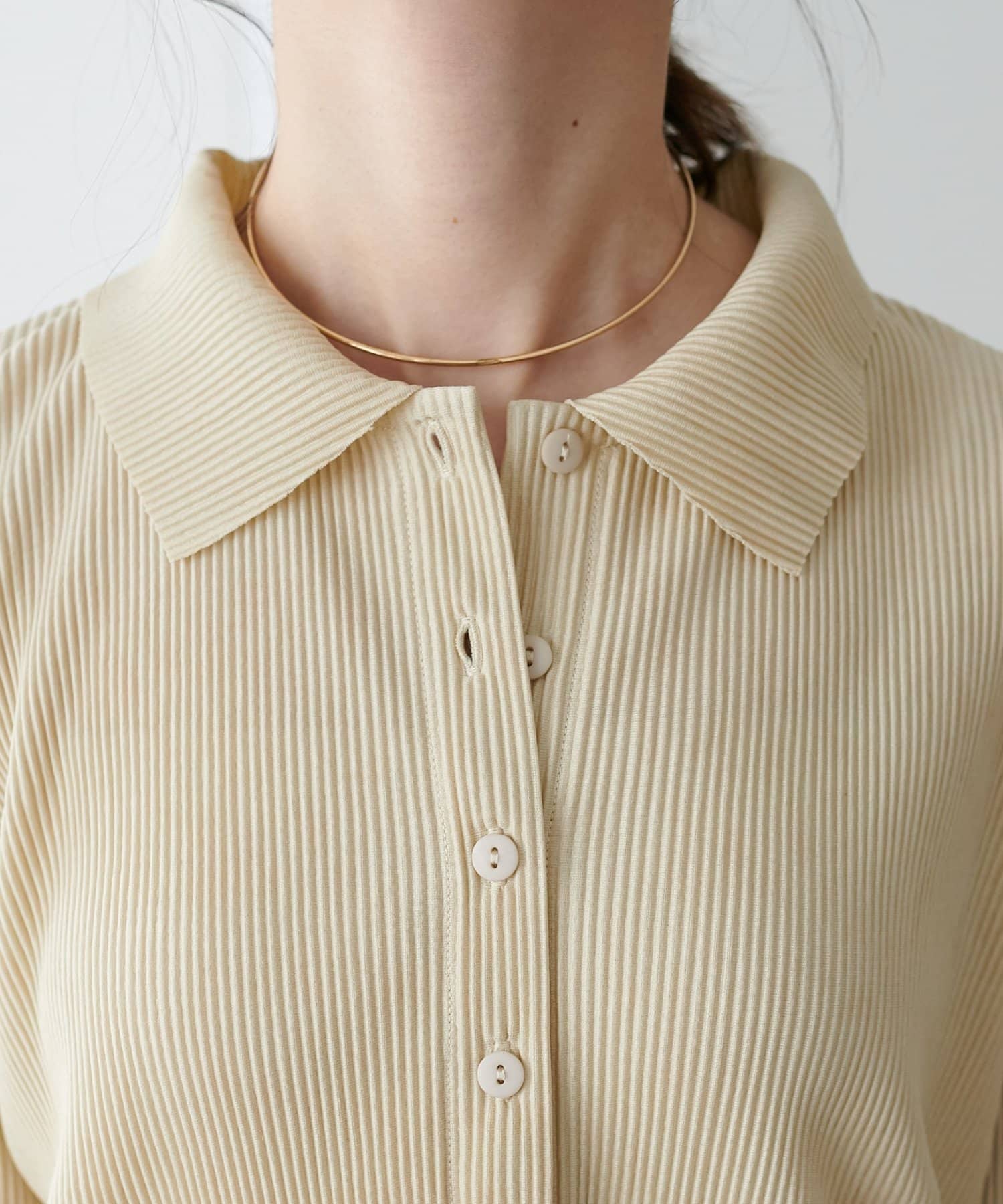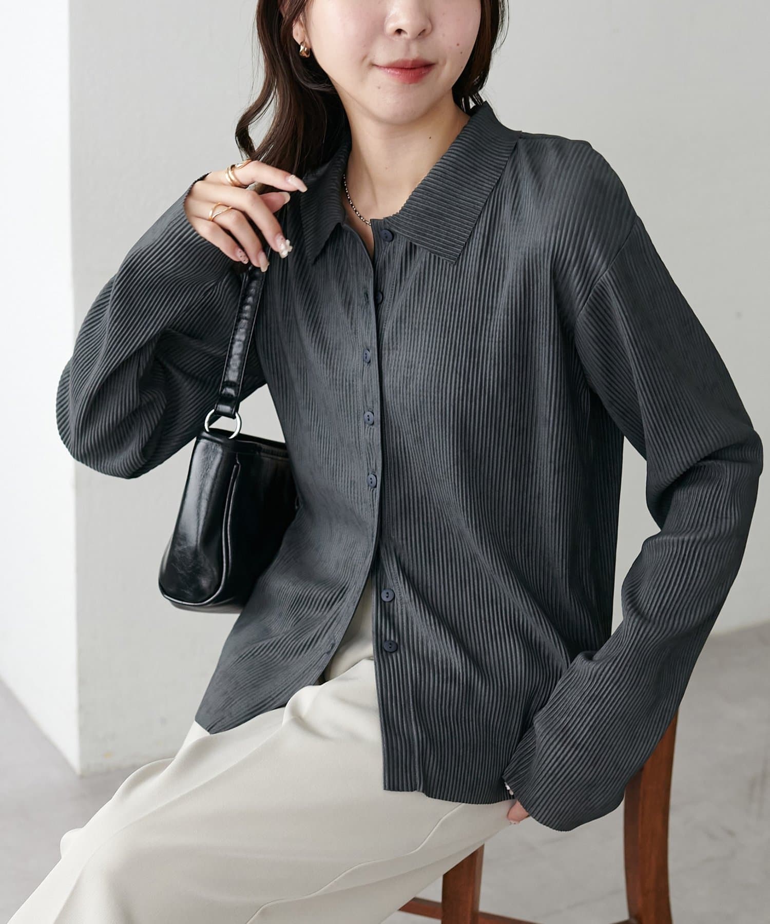 全体に細かいプリーツ加工を施すことで、立体感と表情を加え、シンプルながら奥行きのあるデザイン。