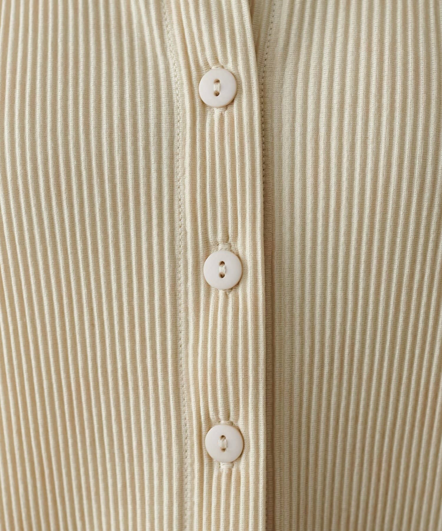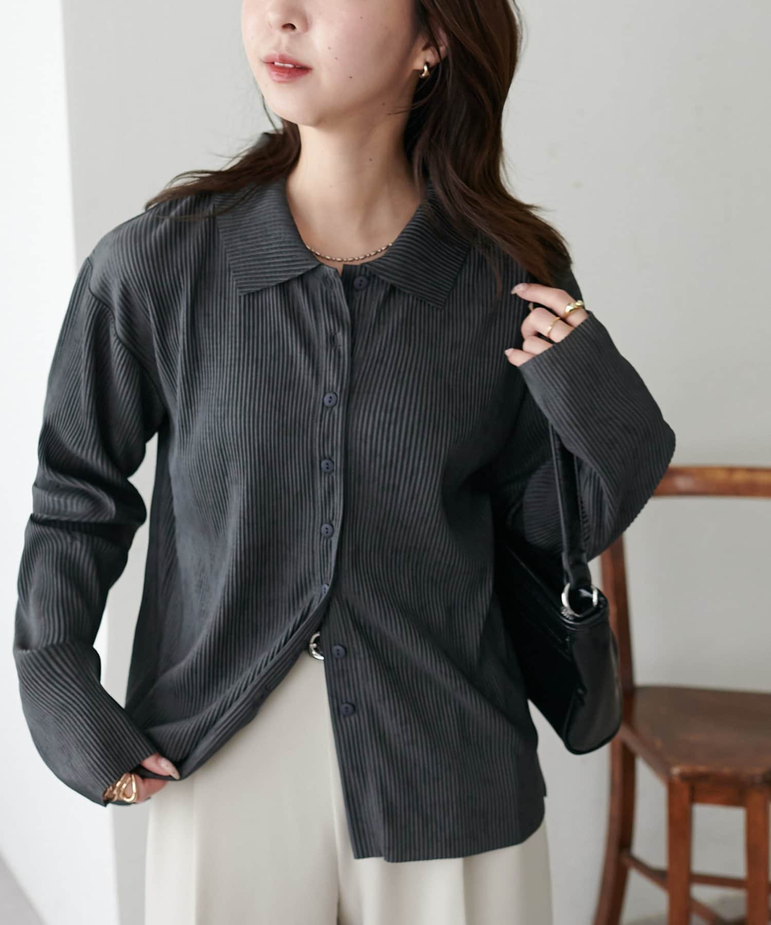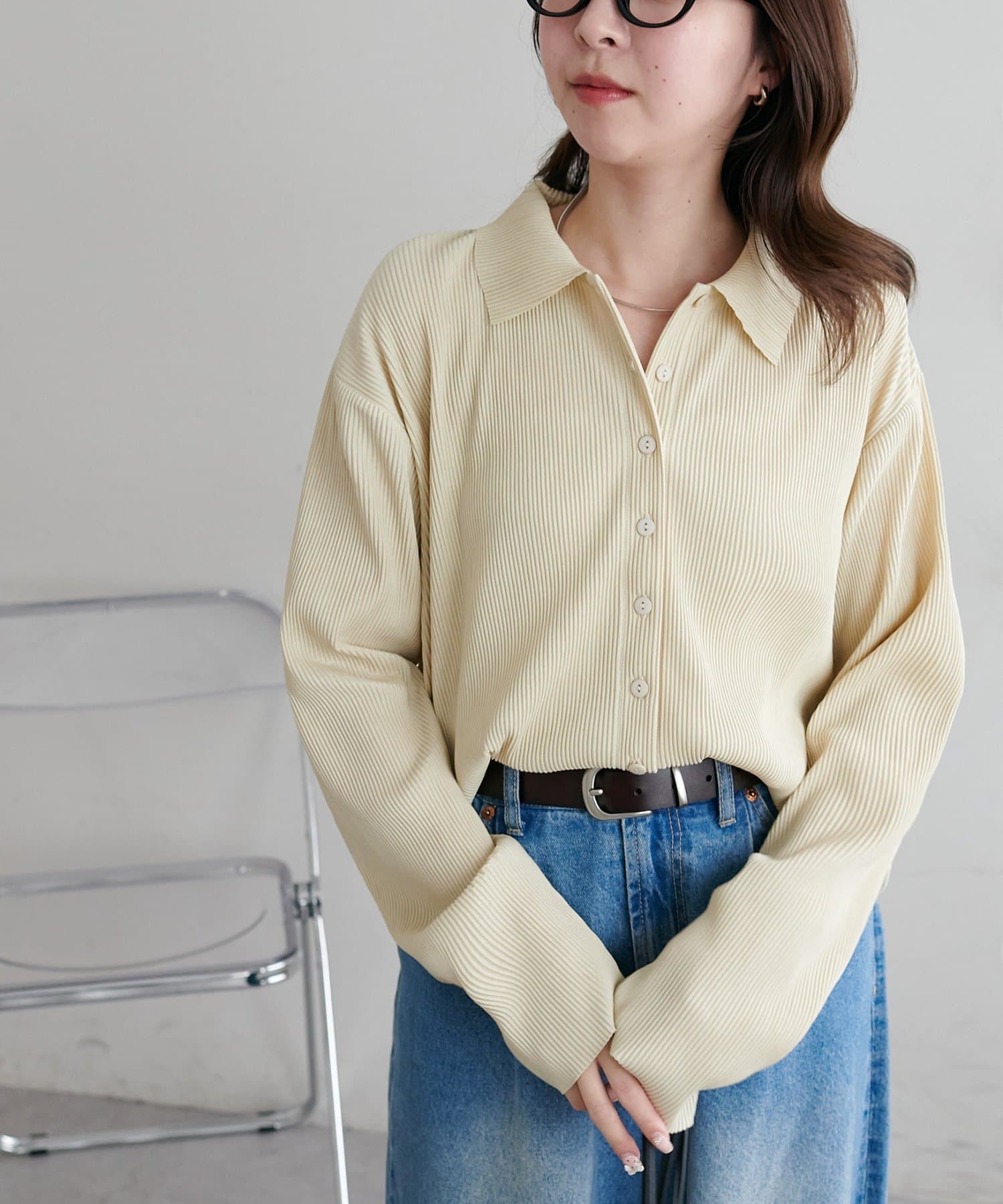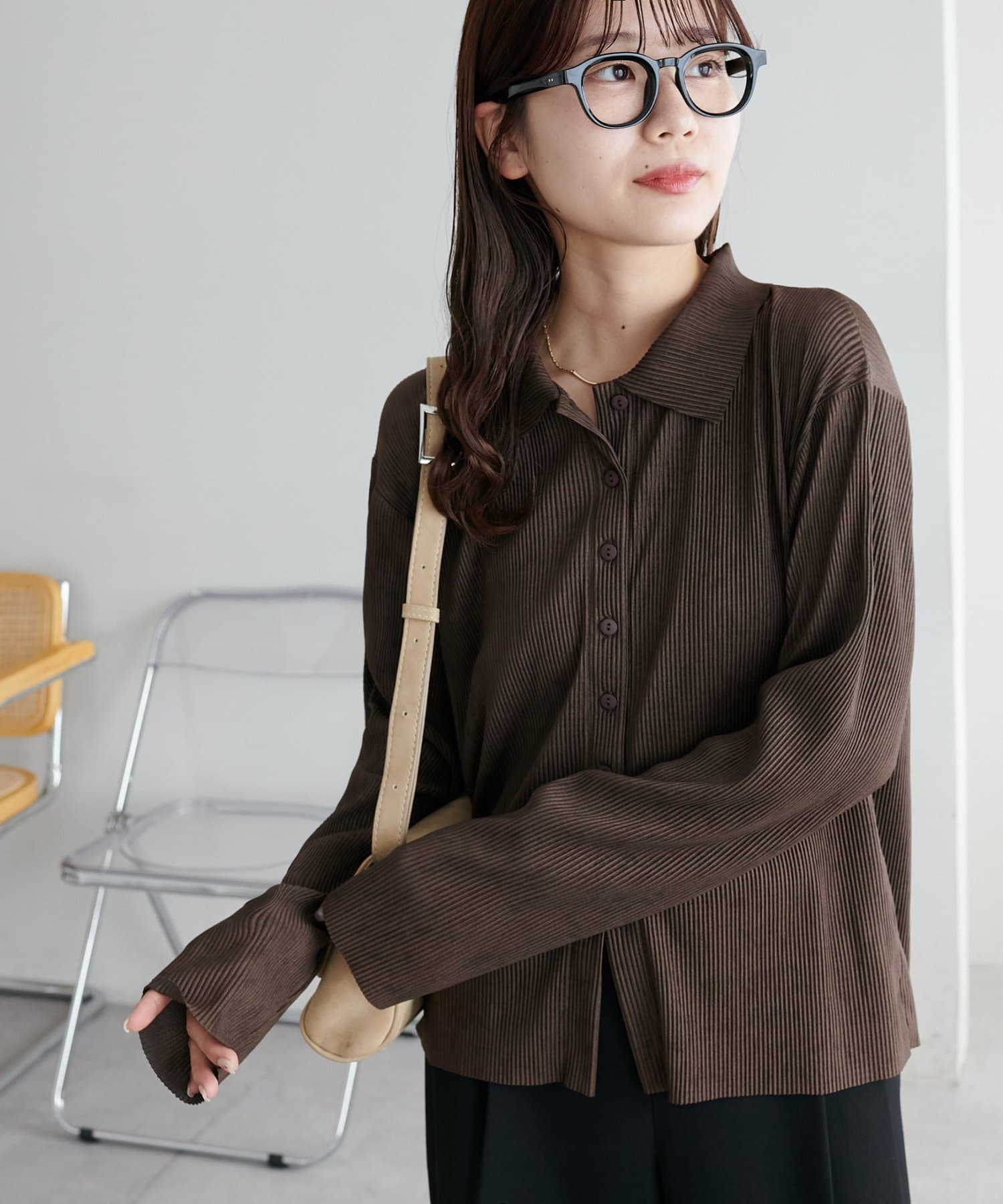 全体に細かいプリーツ加工を施すことで、立体感と表情を加え、シンプルながら奥行きのあるデザイン。