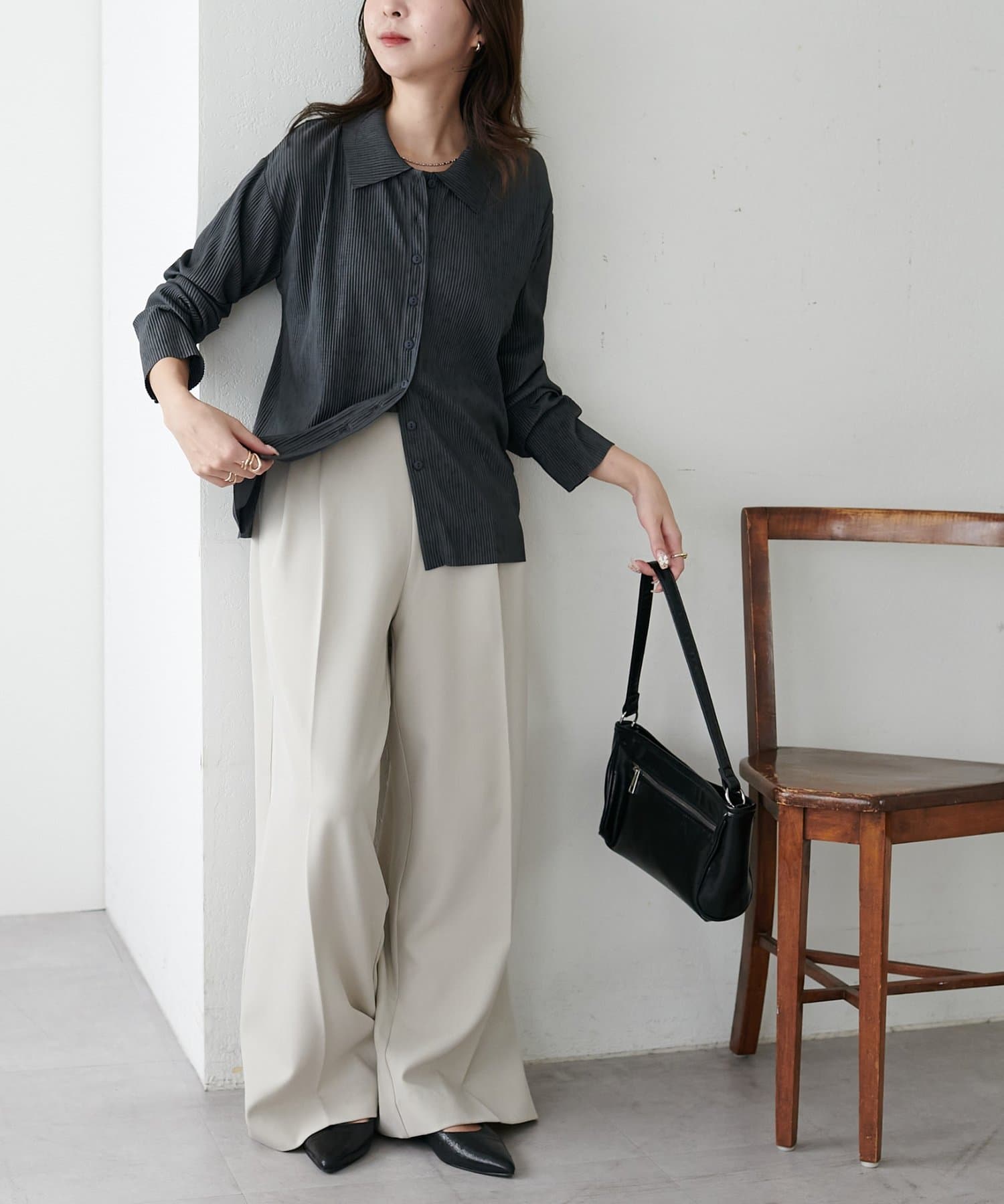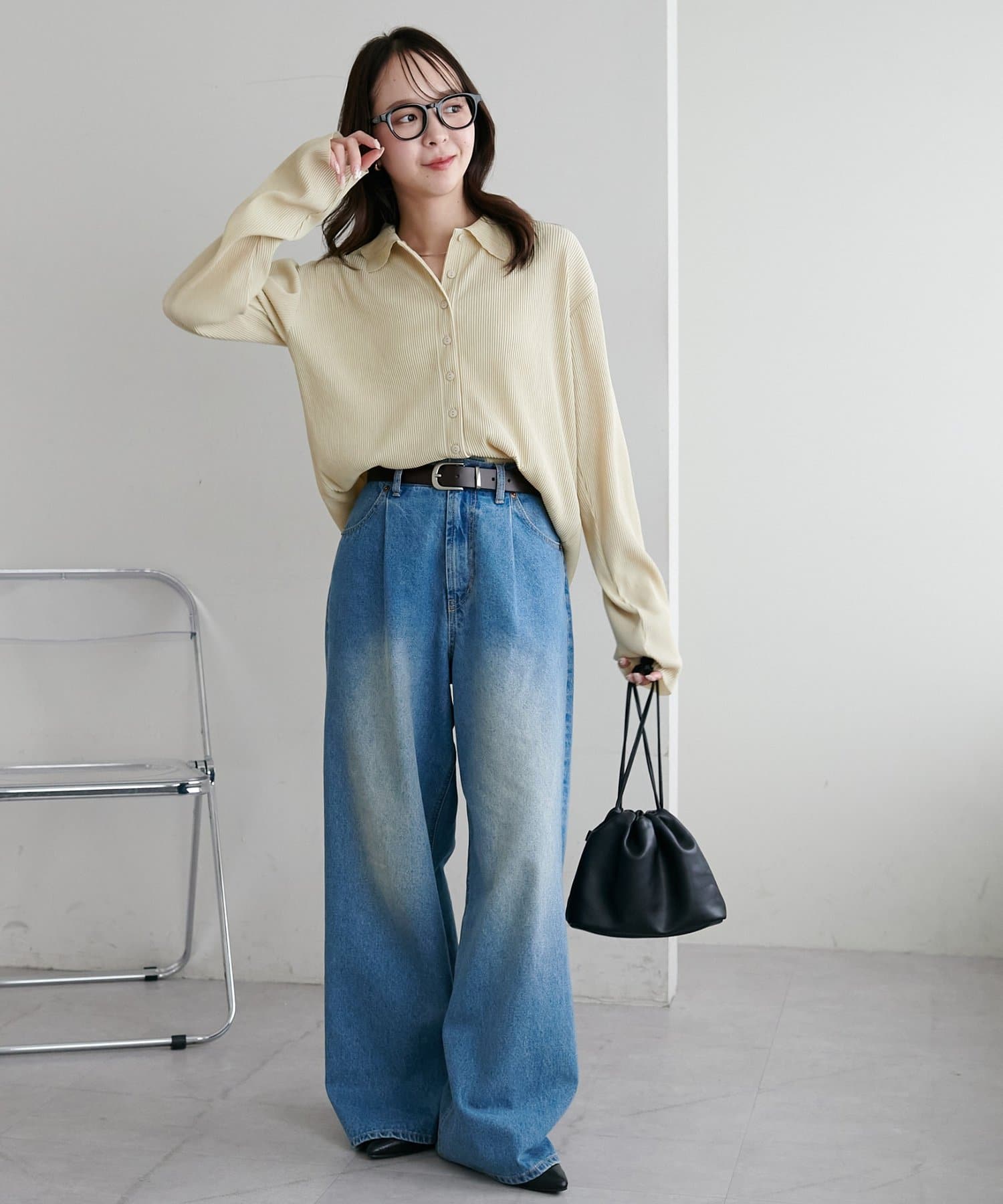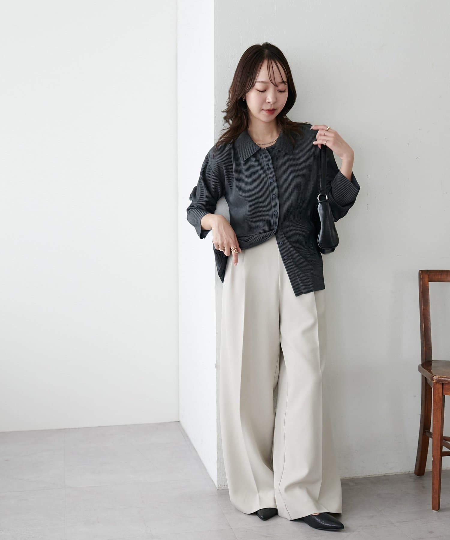 ワイドパンツやデニムパンツと合わせると、抜け感のあるリラックススタイルに。スラックスと合わせて、きちんと感のあるスタイルにも。合わせるボトム次第でオンオフ問わず幅広いシーンに対応可能です◎