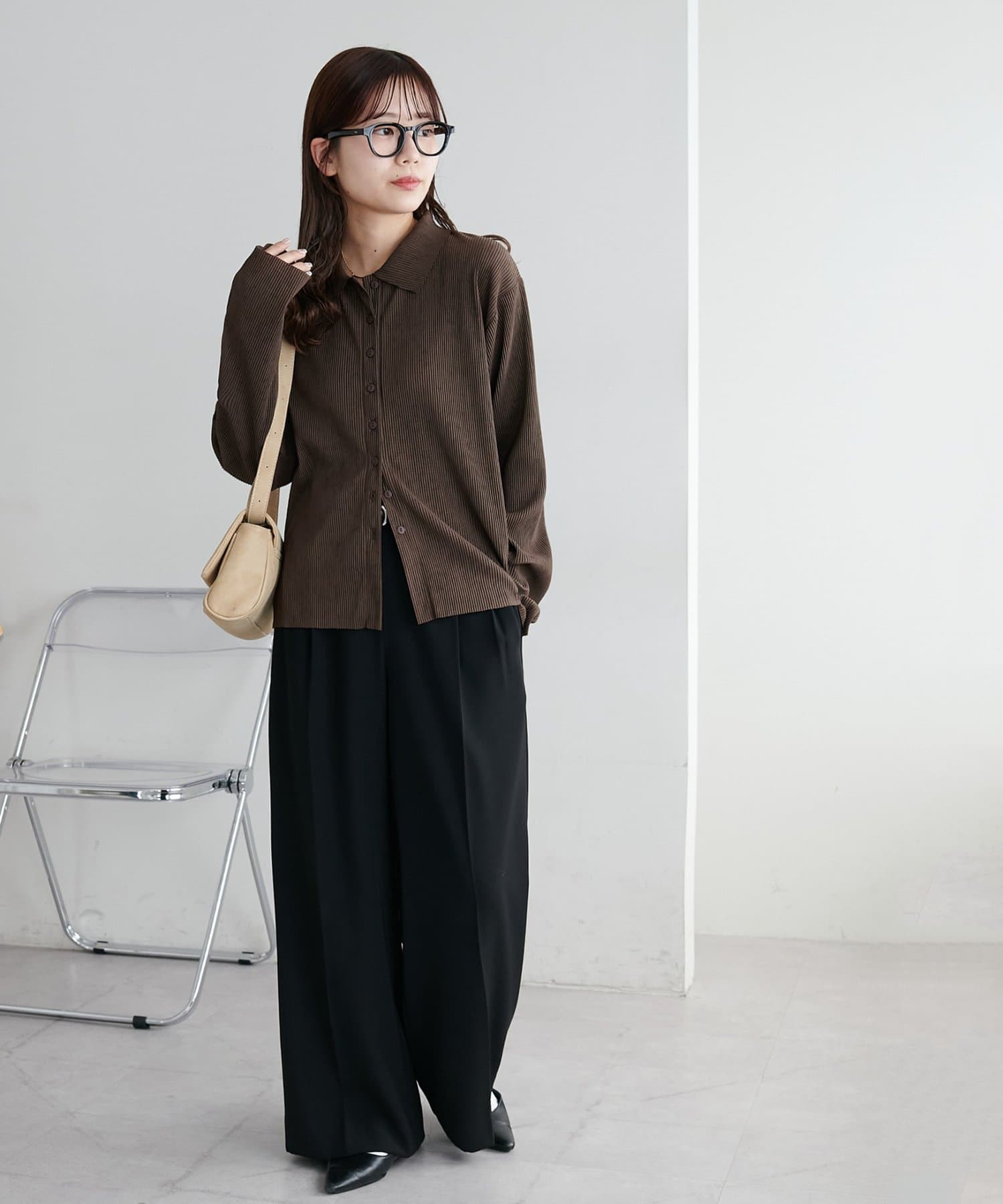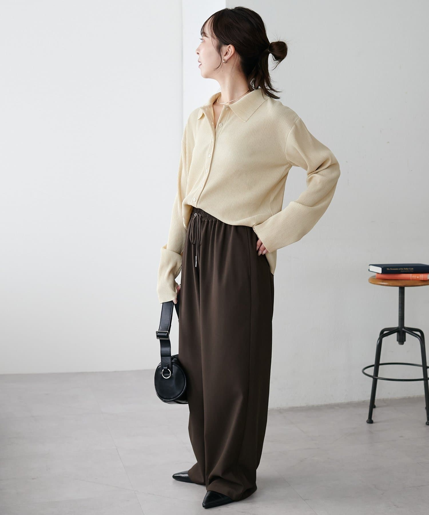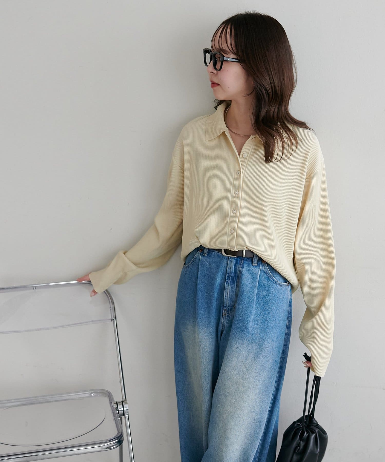 ワイドパンツやデニムパンツと合わせると、抜け感のあるリラックススタイルに。スラックスと合わせて、きちんと感のあるスタイルにも。合わせるボトム次第でオンオフ問わず幅広いシーンに対応可能です◎