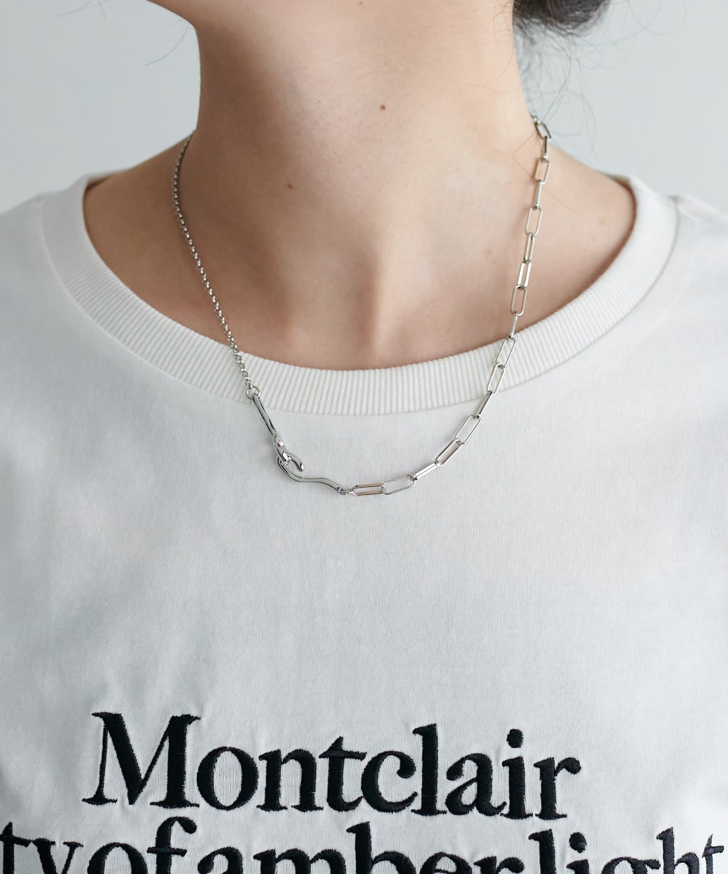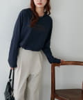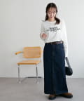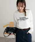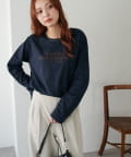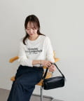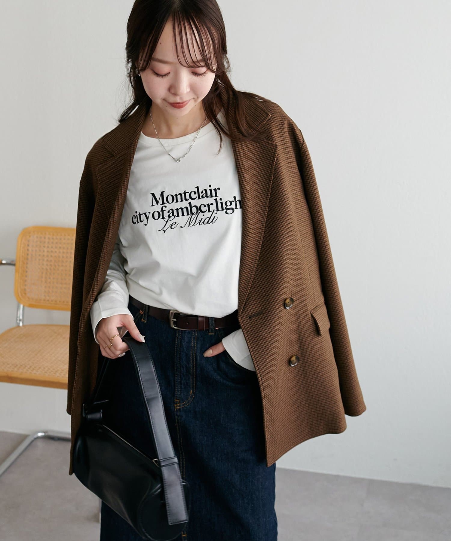 158cmスタッフ:胸元にロゴがあるので、ジャケットやカーディガンのインナーにしてもチラッと見え、程よいアクセントになります。